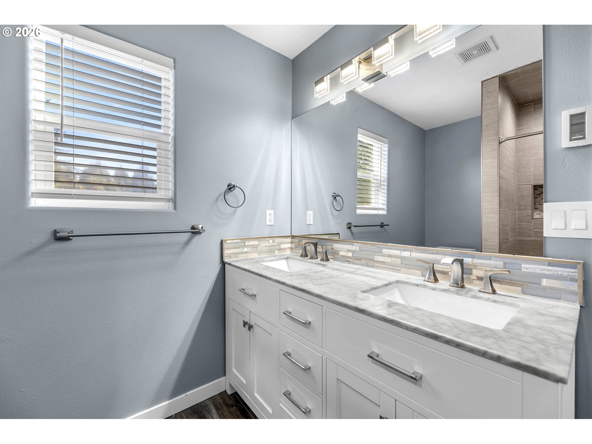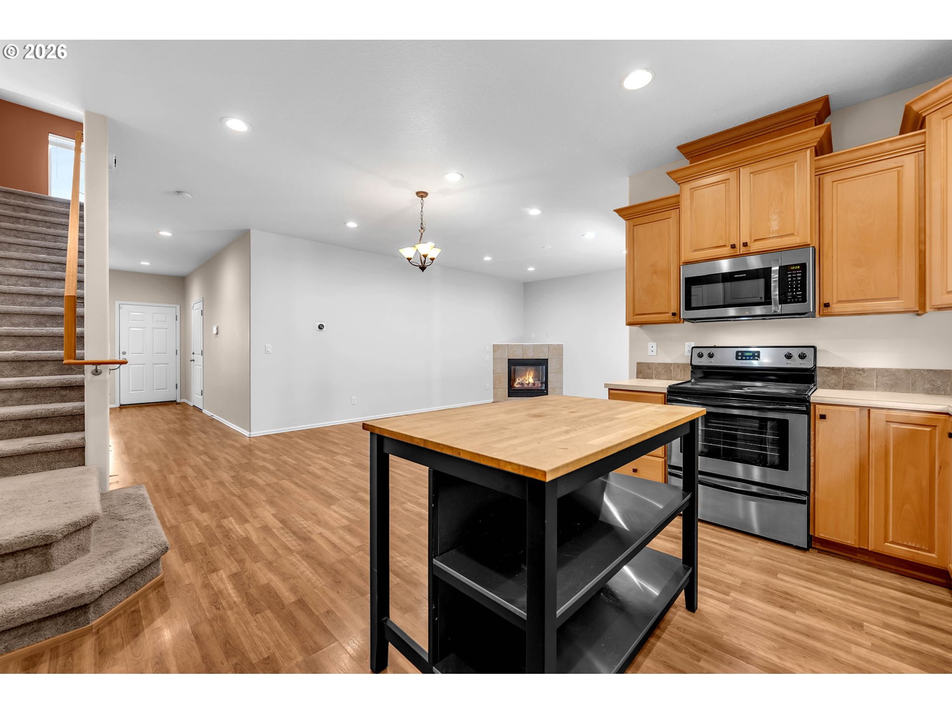 - Welcome to this private and wonderfully updated centrally located home featuring a luxurious primary suite retreat with vaulted ceilings, heated floors, a tiled shower, and a cedar-lined walk-in closet. The inviting two-story layout offers a cozy gas fireplace, open-concept living, central vacuum plumbing, under-stair storage, and a charming guest bath. The open concept kitchen includes abundant cabinetry, generous counter space, island, stainless steel appliances and a pantry. Upstairs offers a spacious bonus room, three bedrooms, two full baths, and a convenient utility room, with one bedroom featuring a stylish shiplap wall.Enjoy exceptional privacy with a fenced, low-maintenance yard, covered patio, and extended driveway for ample parking. Conveniently located near shopping, 24 Hour Fitness, Nikkei Park, and I-205—plus no HOA! All appliances included! Check out 3D tour and floor plans in listing!