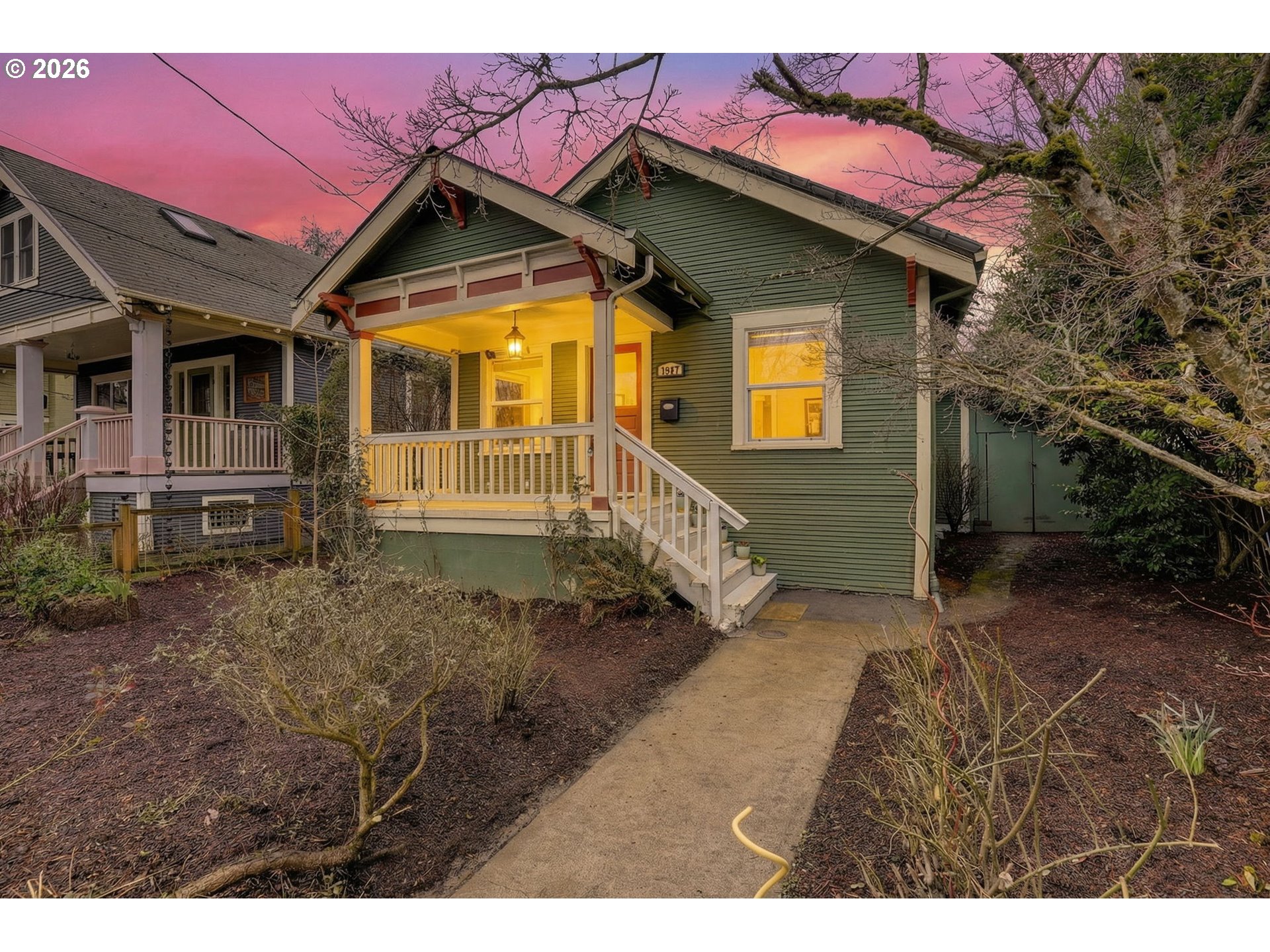 - Vintage Portlandia Cutie! Conveniently located on one of the city's most beloved greenways, smack dab between hip-happening Hawthorne and Division, this little gem is infused with natural light and features 2 bedrooms + 1 bath, charming front porch, wood floors and period details throughout. The bright and functional kitchen boasts ample counter + cabinet space, as well as an adorable dining nook with built-in, overlooking the private backyard. Downstairs, you will find a tall, dry basement with potential to add living space. Lots of "heavy lifting" is already done, including roof + solar installed in 2020, delivering ultra low electricity bills - typically less than $20 per month under current ownership - and a Home Energy Score of 7! Out back, you will find rain barrels to water to your garden, a shed for bikes and tools, and a substantial outbuilding made from reclaimed materials that could serve as a maker shed, playhouse or deluxe chicken coop. Green thumbs rejoice - Everything will be coming up roses soon! Make it yours today & enjoy. Walk score = 93|Bike score =100