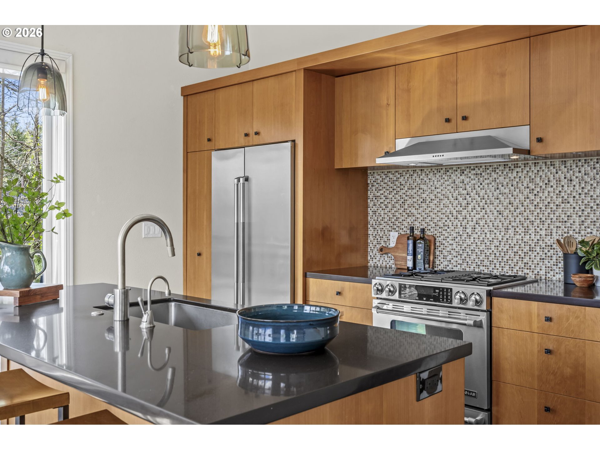 - OPEN HOUSE 4/12 1-3 PM. Stunning 2909 SF Northwest Contemporary home situated on a quiet street ending in a trailhead that provides instant access to beautiful walks, minimal traffic, and easy parking. Private .48-acre lot, surrounded by over 300 acres of protected forest in the coveted Keller Woodlands. Expansive floor-to-ceiling windows frame the lush greenery from every angle, flooding both levels of the home with natural light and seamlessly bringing the outdoors in. Gorgeous vaulted kitchen with SS appliances, gas stove, granite counter tops, soft-close cabinets & drawers, infinity sink, pantry pull out cabinet, granite island, & hardwood floors. A comfortable, light-filled living room showcases a modern fireplace and flows into the lovely dining area. Multi-generational living is possible with the large vaulted primary bedroom and full bath on the main level. Lower level has a separate entrance, kitchenette, laundry, family room with fireplace & bamboo flooring, 3 additional bedrooms, and 1.5 bathrooms. EVERY bedroom has a sliding door with deck/balcony access. This exceptional property offers a rare blend of tranquility, privacy, and modern design, creating a true retreat just minutes from everyday conveniences. Thoughtfully designed with quality craftsmanship throughout, the home features clean lines, warm natural materials, and an open, inviting layout perfect for daily living & entertaining. Enjoy multiple outdoor living spaces, including wraparound decks on both levels and another back yard deck with built-in seating to simply soak in the serene forest setting. Attached 2-car garage with epoxy floors & storage, ceiling fans, central AC, mud room, Italian tile floors, bamboo & oak hardwood floors, soft-close cabinets throughout, seasonal Mt. Hood views. New metal roof & gas furnace 2012, new water heater 2017, new lower-level deck and back yard stairs 2019, new wrap-around decks 2024, new exterior paint 2024. Minutes to OHSU, Downtown, Hillsdale & I-5.