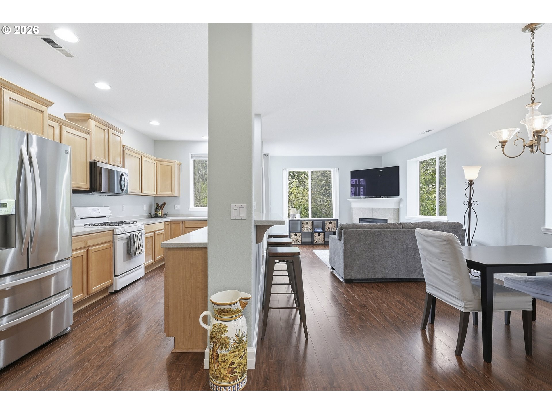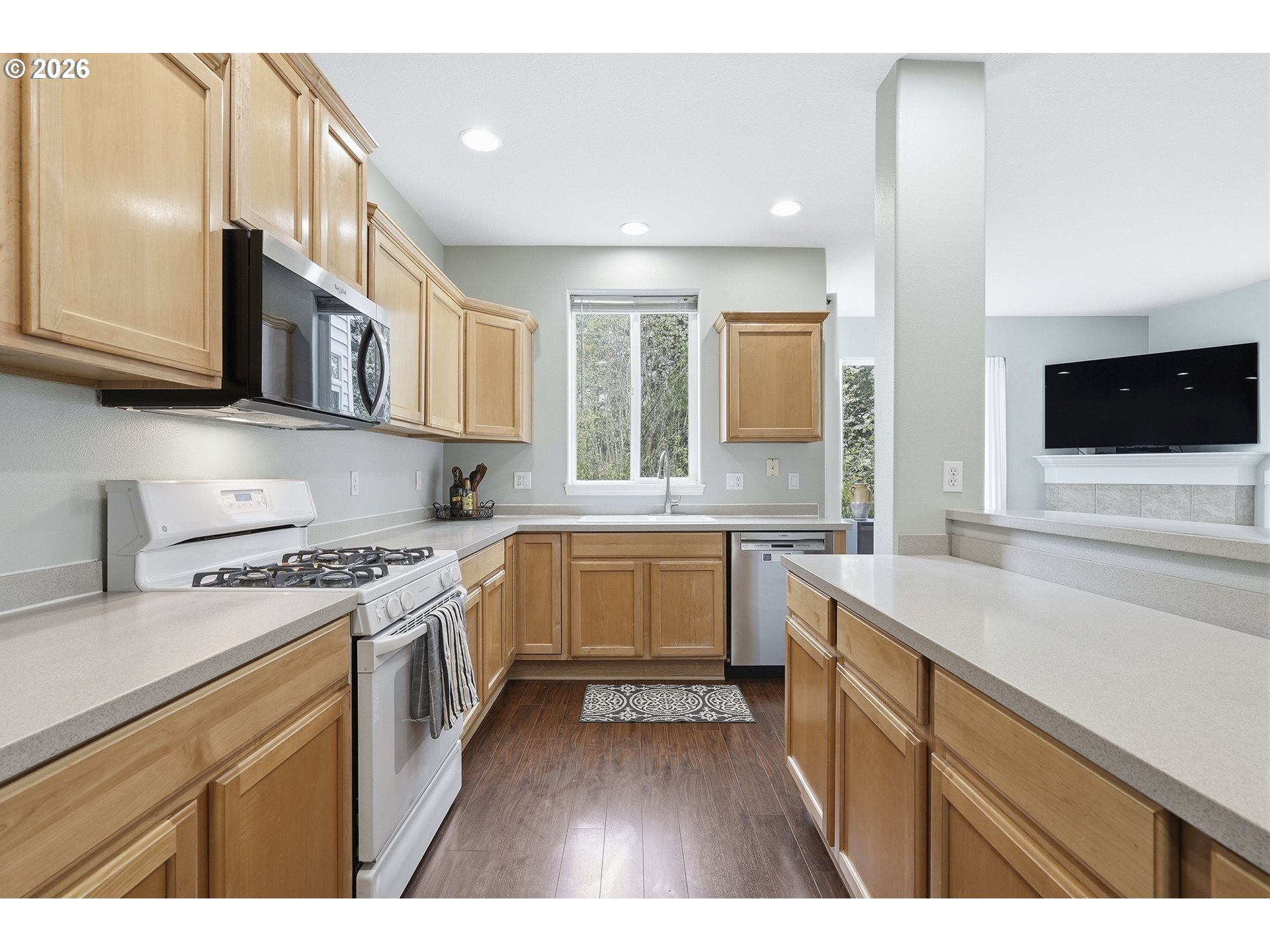 - This 4-bedroom, 3.5-bath in a desirable Tigard location offers comfort, flexibility, and thoughtful updates throughout. The main level features an open great room layout with a spacious kitchen, dining area, and inviting living room with a gas fireplace. Upstairs, the primary suite includes a walk-in closet and an ensuite bath with a soaking tub and oversized shower. Two additional bedrooms and a full bathroom provide space for guests, work, or everyday living.The lower level adds even more versatility with a second living area, kitchenette with built-in cabinets and counter space, and a sink. Gas fireplace, full bathroom, washer and dryer hookups, and an additional bedroom. It works well for as a guest space or multi-generational living.Outside, enjoy a deck for relaxing or dining, plus a fenced, low-maintenance backyard with custom hardscaping and a greenhouse. Recent updates include a new water heater in 2024, basement improvements and added washer and dryer hookups in 2024, new backyard stairs and a dedicated garbage/storage area in 2023, a sump pump and French drain in 2023, and a 50-year roof installed in 2023. Low HOA of $145 monthly covers commons, front yard landscaping & community security gate. School boundaries include ART RUTKIN ELEMENTARY , Tualaity Middle School, and Tualating High School!