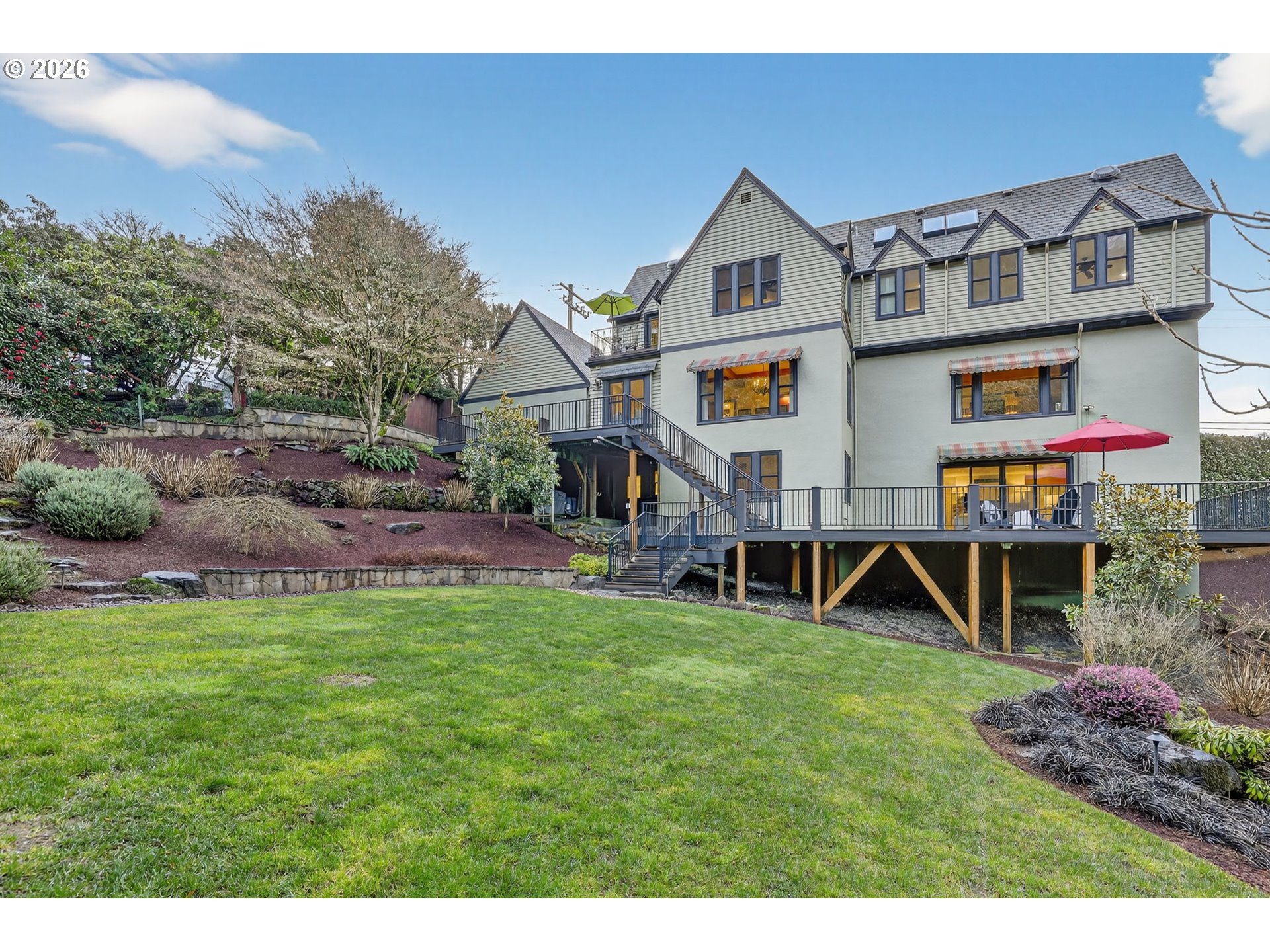 - Exquisite 1932 English Tudor in pristine condition, offering views of the Portland skyline, Mt. Hood and Mt. St. Helens from its setting in one of the city's most sought-after historic neighborhoods. Forest Park's trail system is just outside your door, while the boutiques, cafés, and cultural destinations of NW 23rd Avenue and the Pearl District are only minutes away. Classic architectural details have been beautifully preserved, including inlaid hardwood floors, wrought iron banisters, rich mahogany trim, distinctive clinker brick, and a Batchelder tile fireplace surround. The gourmet kitchen is thoughtfully appointed with a French La Cornue range, Sub-Zero refrigerator, Bosch dishwasher, custom cabinetry, quartz countertops and artisan tilework. A stunning primary suite captures Mt. Hood sunrise views, complemented by remodeled baths, inviting gathering spaces that open to spacious decks, and meticulously landscaped grounds with a rare level backyard, creating a home that is both timeless and move-in ready for spring. OPEN HOUSE Saturday/Sunday (2/21,2/22) 12:00-4:00. [Home Energy Score = 4. HES Report at https://rpt.greenbuildingregistry.com/hes/OR10245081]