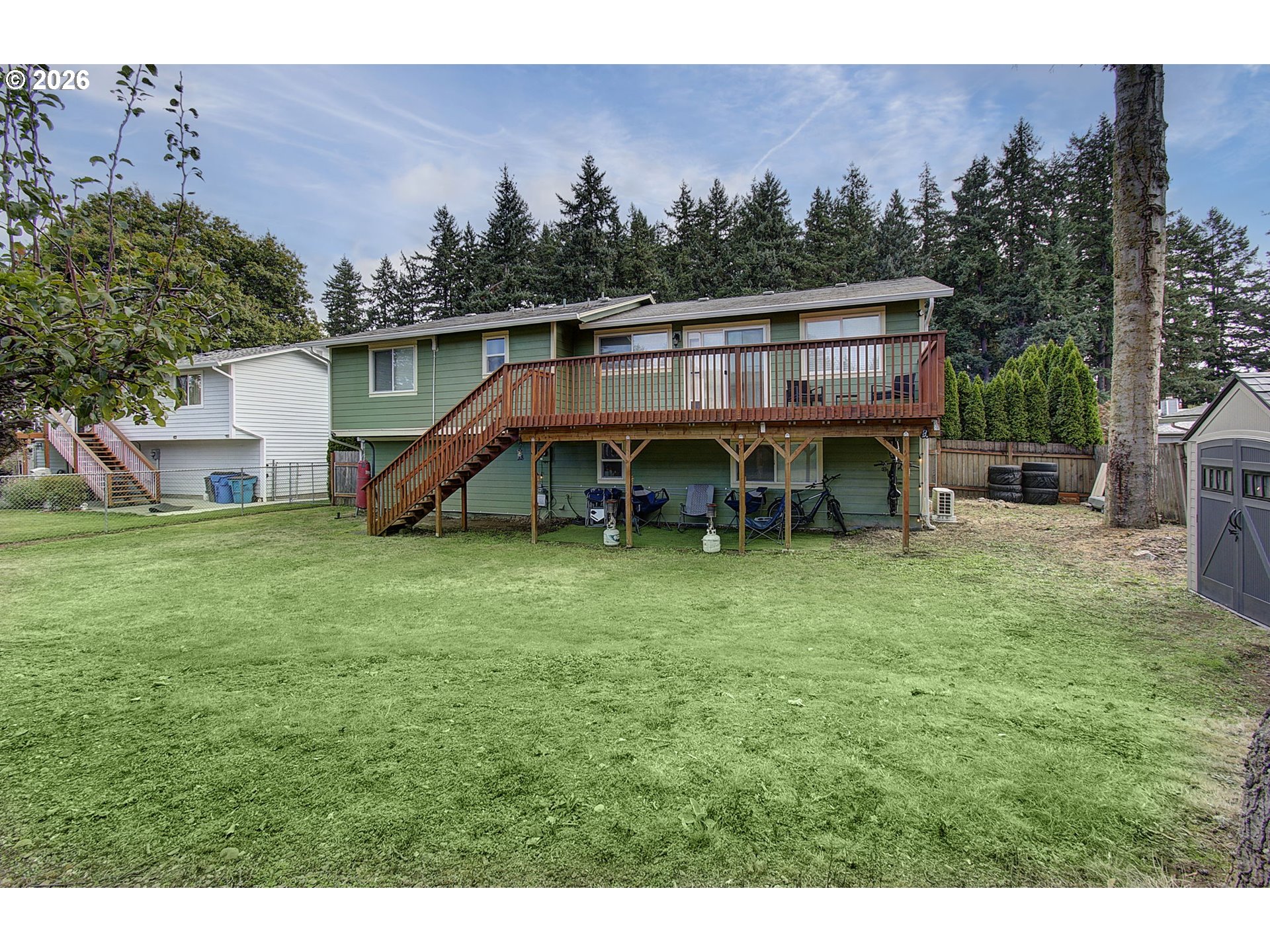 - Classic 1970s split-level home offering space, flexibility, and thoughtful updates throughout. Fresh interior paint and updated flooring create a clean, move-in ready feel. The main level features a bright living room with vaulted ceilings, expansive windows, and abundant natural light, along with a cozy fireplace that anchors the space. Upstairs you’ll find three bedrooms and two bathrooms. Downstairs offers a spacious family room with a second fireplace, an additional bedroom, and a third full bathroom — ideal for multi-generational living, guests, or a private second living area. Situated on a large lot with a deck for outdoor enjoyment and conveniently located close to a neighborhood park. A versatile floor plan with room to grow.
