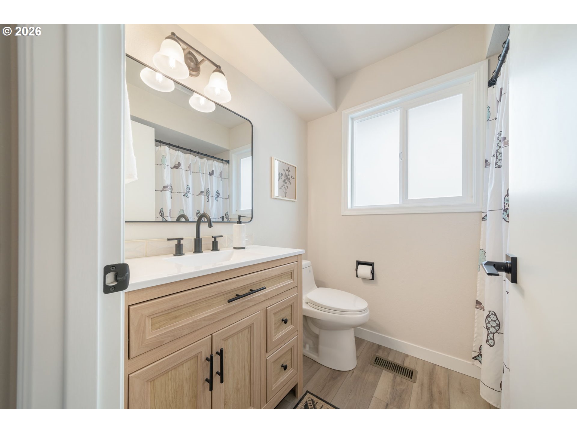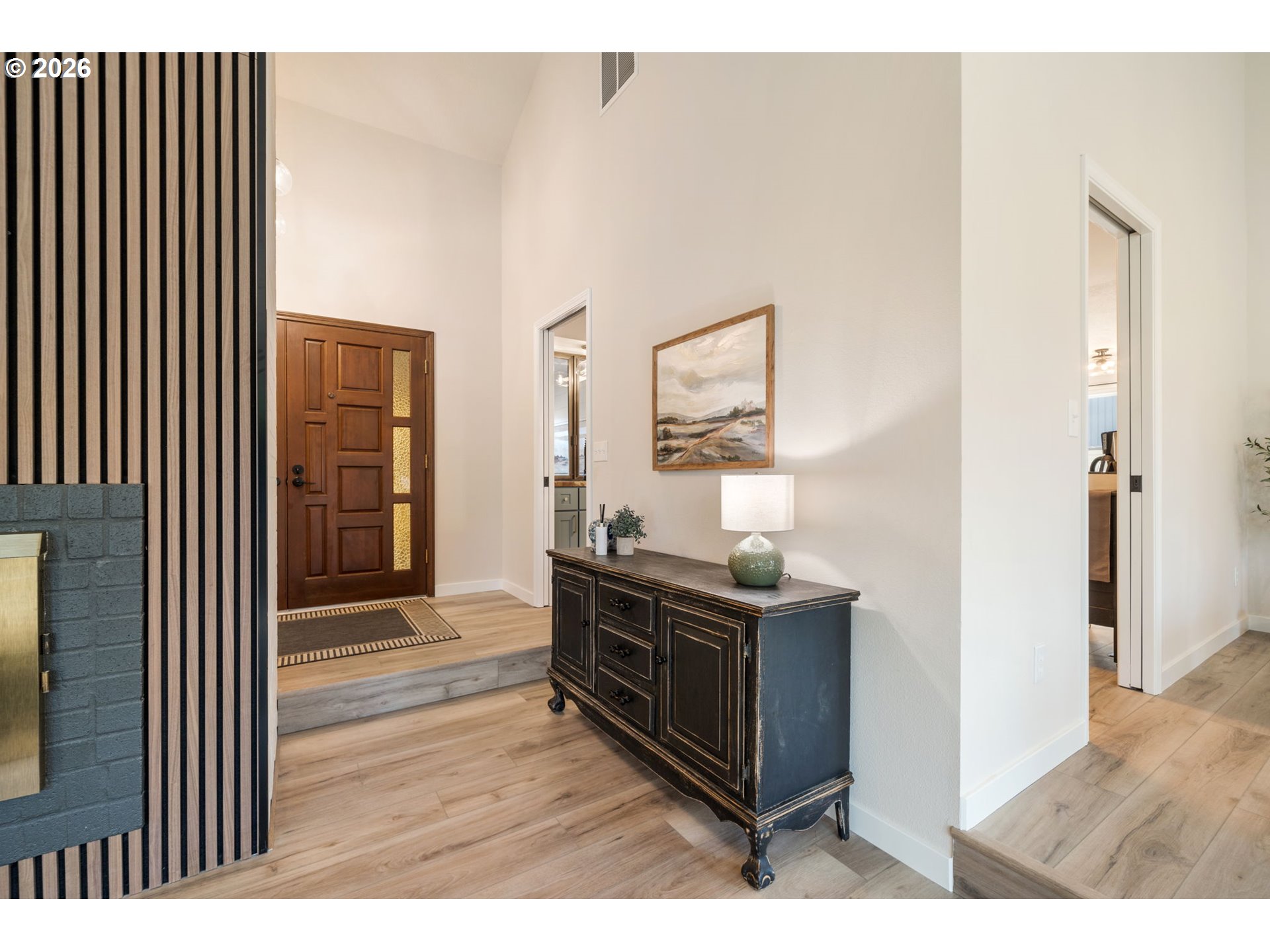 - Step into this beautifully updated single-level home where mid-century modern charm meets today’s finishes. Featuring brand-new luxury vinyl plank flooring throughout, a fully renovated kitchen with high end appliances and induction stove, and fresh interior and exterior paint, this home is truly move-in ready.At the heart of the home, a stunning gas fireplace is framed by a custom wood slat accent wall, adding warmth, texture, and architectural character to the living space.The spacious primary suite offers a large walk-in closet and a peaceful retreat. You’ll appreciate the abundant storage thoughtfully integrated throughout — a rare and valuable feature.The enclosed porch creates the perfect setting for morning coffee, reading, or a flexible bonus space year-round. Outside, enjoy a private backyard ideal for relaxing or entertaining.Stylish, functional, and full of personality — this home blends comfort and mid-century inspired design effortlessly.