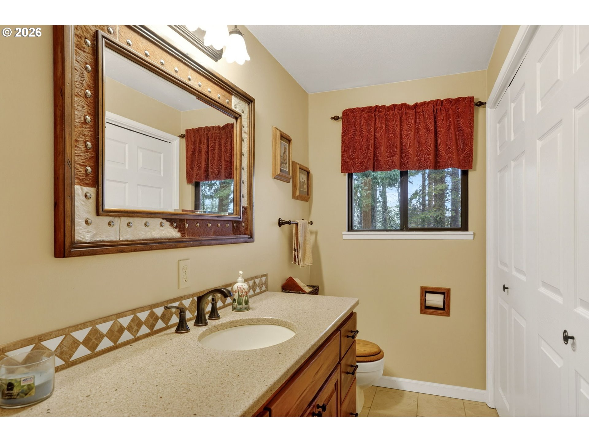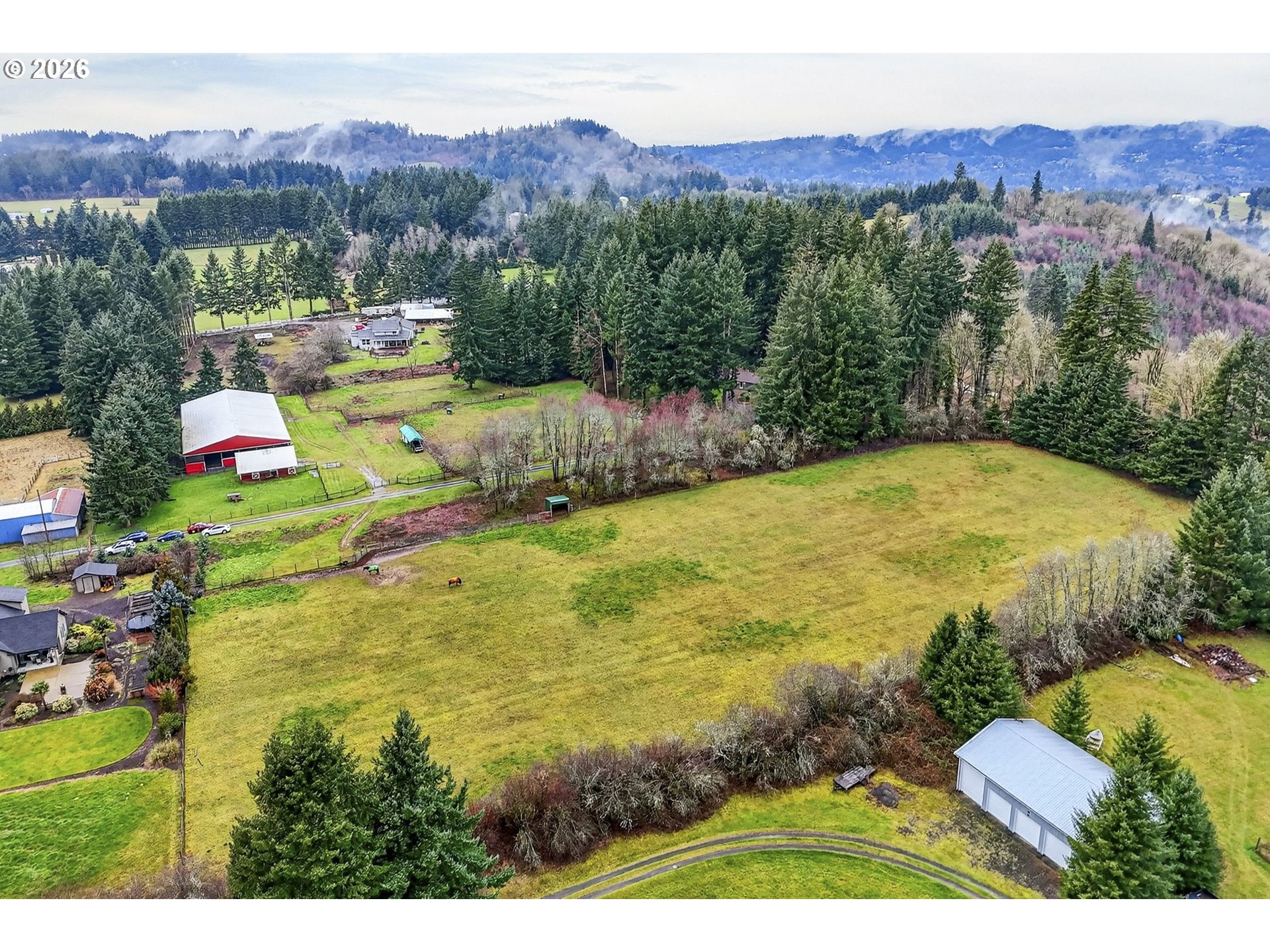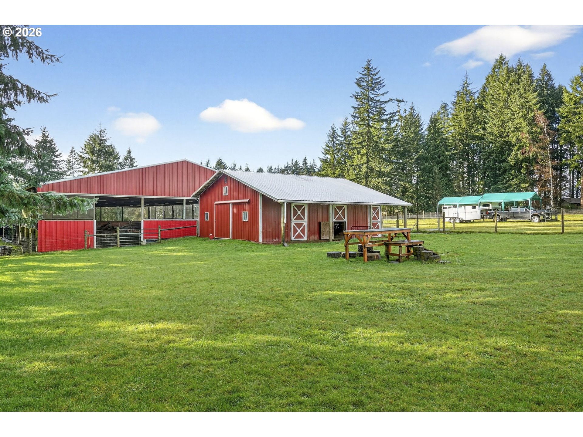 - Convenient to La Center, Ridgefield and Battle Ground, and roughly 40 minutes to PDX, this property blends serene country living with practical access. Discover your equestrian oasis on this move-in ready 9-acre property tucked into the trees in Woodland, in the coveted La Center School District. The lovingly maintained ~3,000sqft home offers flexible, multi-generational living with two living rooms and two potential primary suites on separate wings—ideal for work-from-home, extended family, or multi-use living. Large windows and expansive decks fill the home with natural light and provide sweeping views of pastures where horses and livestock graze. The kitchen anchors the floorplan and flows to comfortable gathering spaces, while covered carport plus an oversized garage offer abundant workspace and storage. Equine facilities are outstanding: a charming four-stall barn with bedding/tool storage, open tack room, seating area and large hay loft (one oversized stall; one configured for goats but easily converted back), and three stalls with Dutch doors opening to a shared fenced paddock. The centerpiece is a fully lit, screened, covered 72x144 arena built to stay dry even in wet PNW weather —perfect for any discipline. Ample trailer parking, multiple building sites, and room to add additional pastures, a round pen, outdoor arena, expanded barn or shop provide endless possibilities. Bring your horses, hounds, and hobbies—this is country life, ready to enjoy.