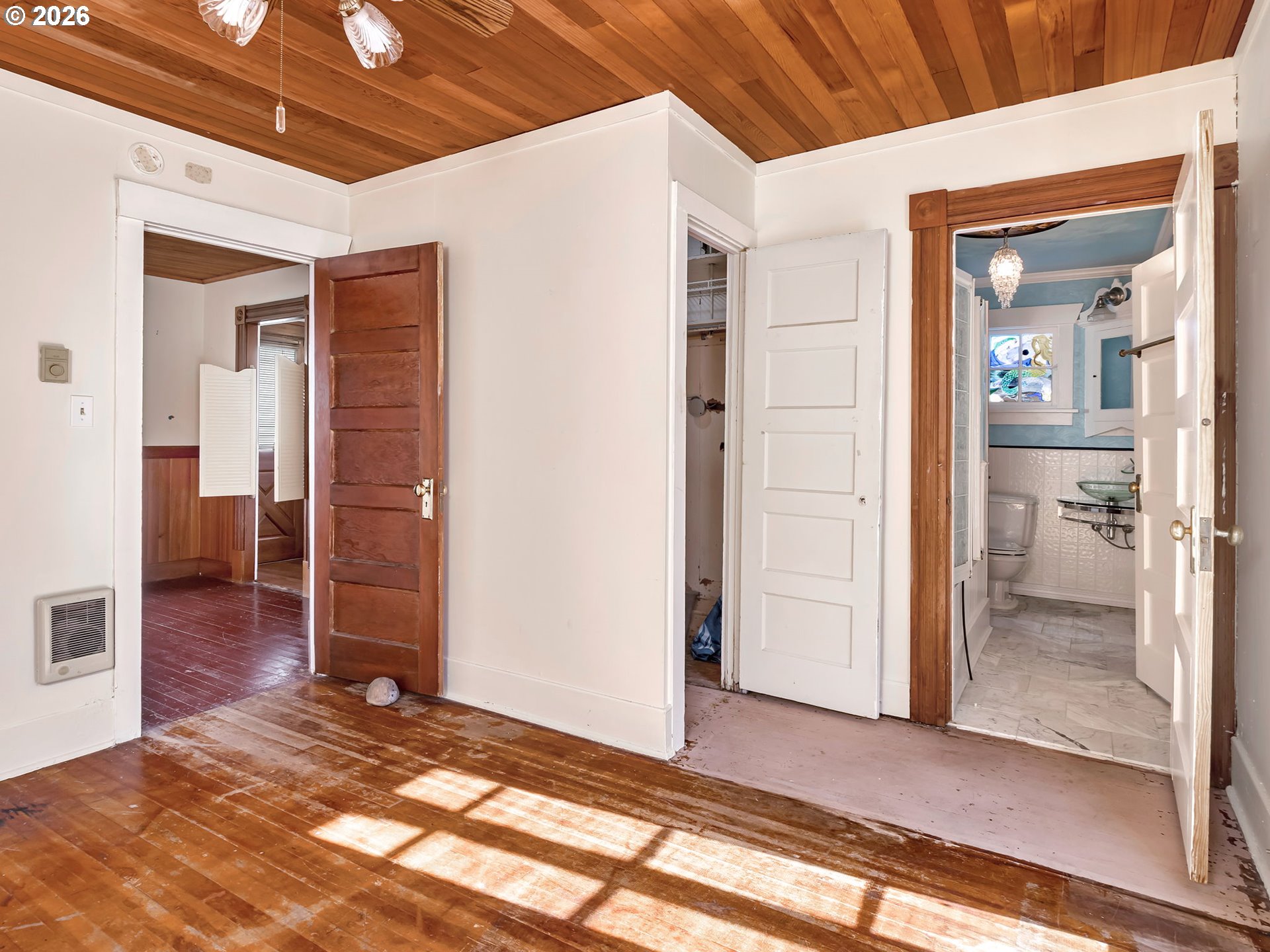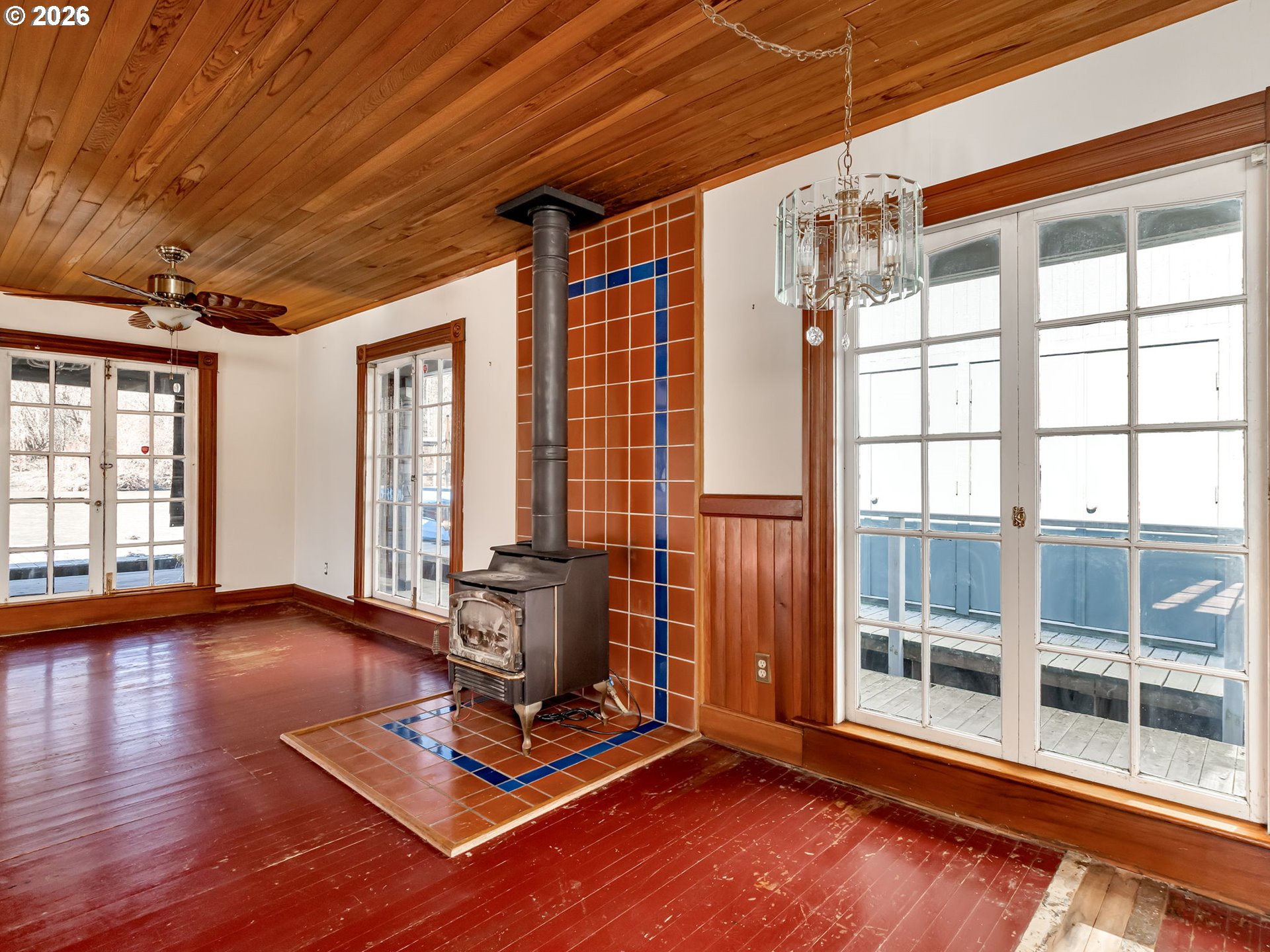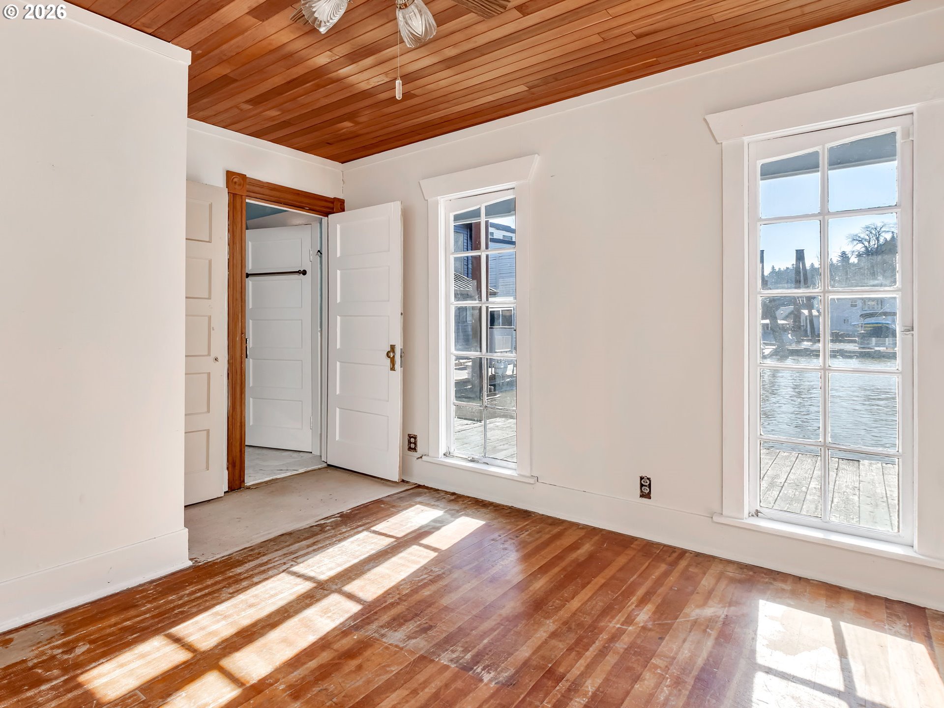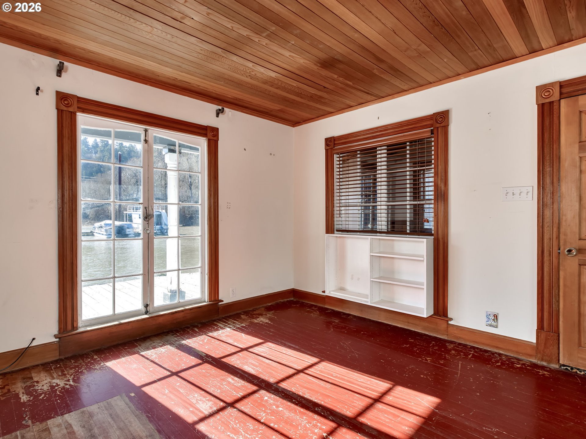 - Offered for sale is Slip 16 at the beautiful Macadam Bay Moorage, located on the west side of the Willamette River in the John's Landing neighborhood. This is a private ownership floating home community. Slip 16 (35' wide & 70' long) is an end slip on the calmer water shoreside, with views of the water & Portland's Butterfly Park. A perfect slip location & water on two sides! This is a friendly & safe neighborhood with secured entrance & parking lot. HOA assigns parking & garages based on seniority. Each slip has 2 parking spaces. Plus THE WILLAMETTE GREENWAY is adjacent to the parking lot with an easy walking 5-mile paved walkway along the Willamette River with great views of the river & downtown Porland. Included in the sale is a one-of-a-kind 85-year-old wooden floating home, rich with nostalgia. The signature curved roof enhances this rustic retreat & covered patio. Most of the interior has wood ceilings & wood floors. The warm woodwork can be seen in the photos. Entry to the floating home is a door at the kitchen. Most windows & cabinets are original. Attached to the kitchen is a small bump-out nook. The bathroom is super cute: marble floor, glass vessel sink, & incredible chandelier, with a door to the nook & primary bedroom. The primary bedroom has 2 long windows facing the water, a walk-in closet & ceiling fan. The 2nd bedroom has good separation on the far side of the main living area, with beautiful woodwork, 2 closets, & bench storage. The living & dining areas have many original glass windows (some used as doorways) including to the covered patio. Heat is from electric wall heaters and a Lopi gas stove. Plus, a laundry room & W/D. HOA payments are $665 per month. The fee pays for your water, sewer, garbage, maintenance & electricity for the common areas. DISCLOSURES: The floating home is sold as-is. There are weathered decks, docks & significant problems with the float system. Rough interior & in need of repairs. Roof 2015, hot water heater 2021.