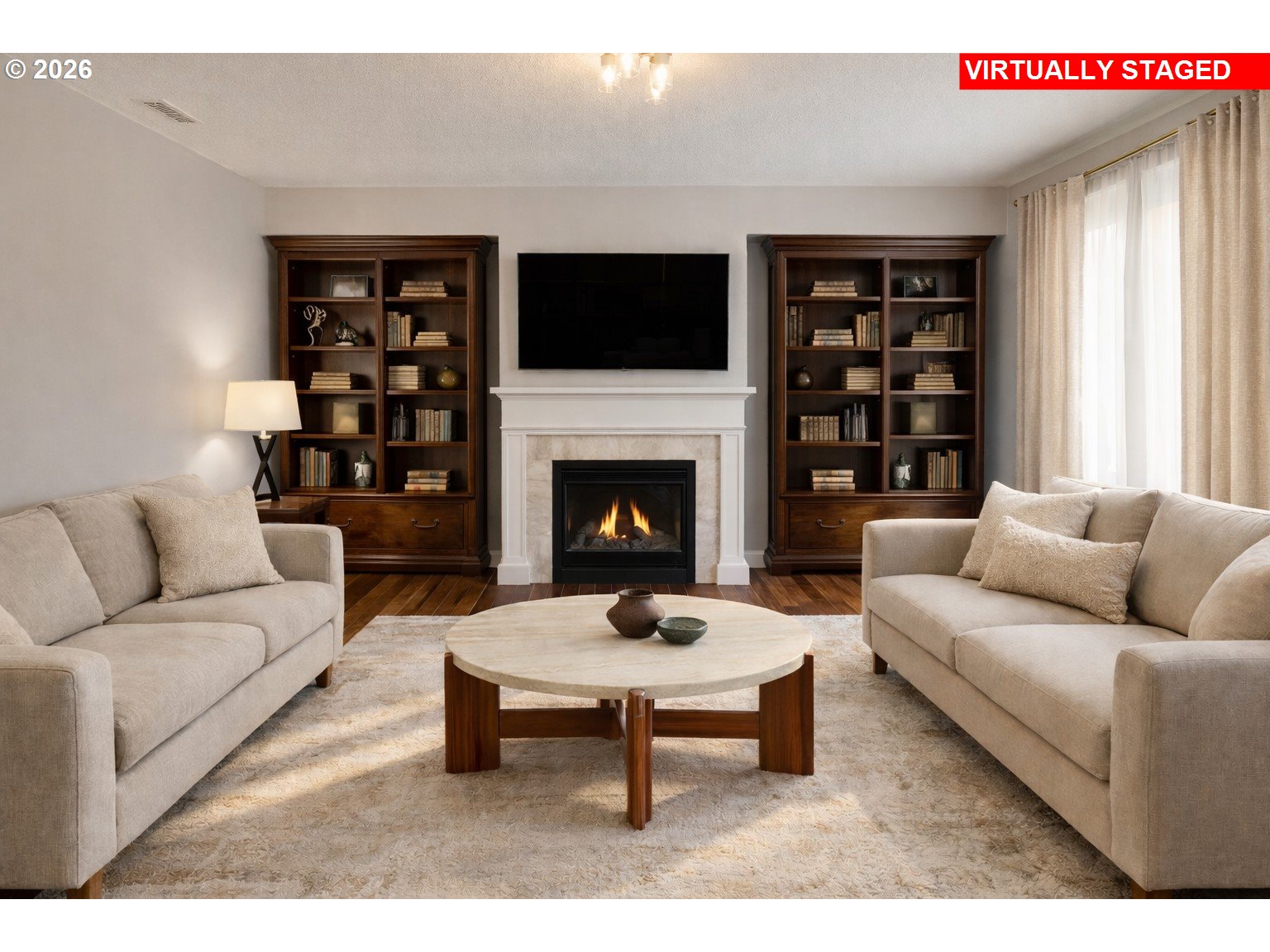 - Beautifully maintained Craftsman-style home featuring open-concept living and thoughtful design throughout. The main level showcases stunning slab granite countertops in both the kitchen and dedicated office/workspace areas, complemented by stylish stainless-steel appliances, gas cooktop, double sink, and expansive island ideal for gathering, entertaining, and everyday living. The spacious living room is anchored by a cozy travertine-lined gas fireplace, creating a warm and inviting focal point while maintaining clean modern lines. Large windows and sliding doors bring in natural light and connect seamlessly to the fully fenced backyard. Perfect for relaxing, grilling, or entertaining. Upstairs, the versatile loft area offers incredible flexibility and has been virtually staged as a recreation and entertainment space, ideal for pool table, media lounge, playroom, or additional family gathering area. The generous primary suite includes a walk-in-closet and well-appointed bath, while additional bedrooms and/or bonus space provide flexibility for guests, hobbies, or work-from-home living. Located in a quiet, well maintained, and peaceful neighborhood within the desirable Greater Brush Prairie area, this home offers convenient access to local amenities while maintaining a serene residential feel. Nearby attractions include Alderbrook Park with trails and recreation, neighborhood parks, and easy access to Vancouver's shopping, dining. This move-in-ready home combines comfort, versatility, and lifestyle in a sought-after location.