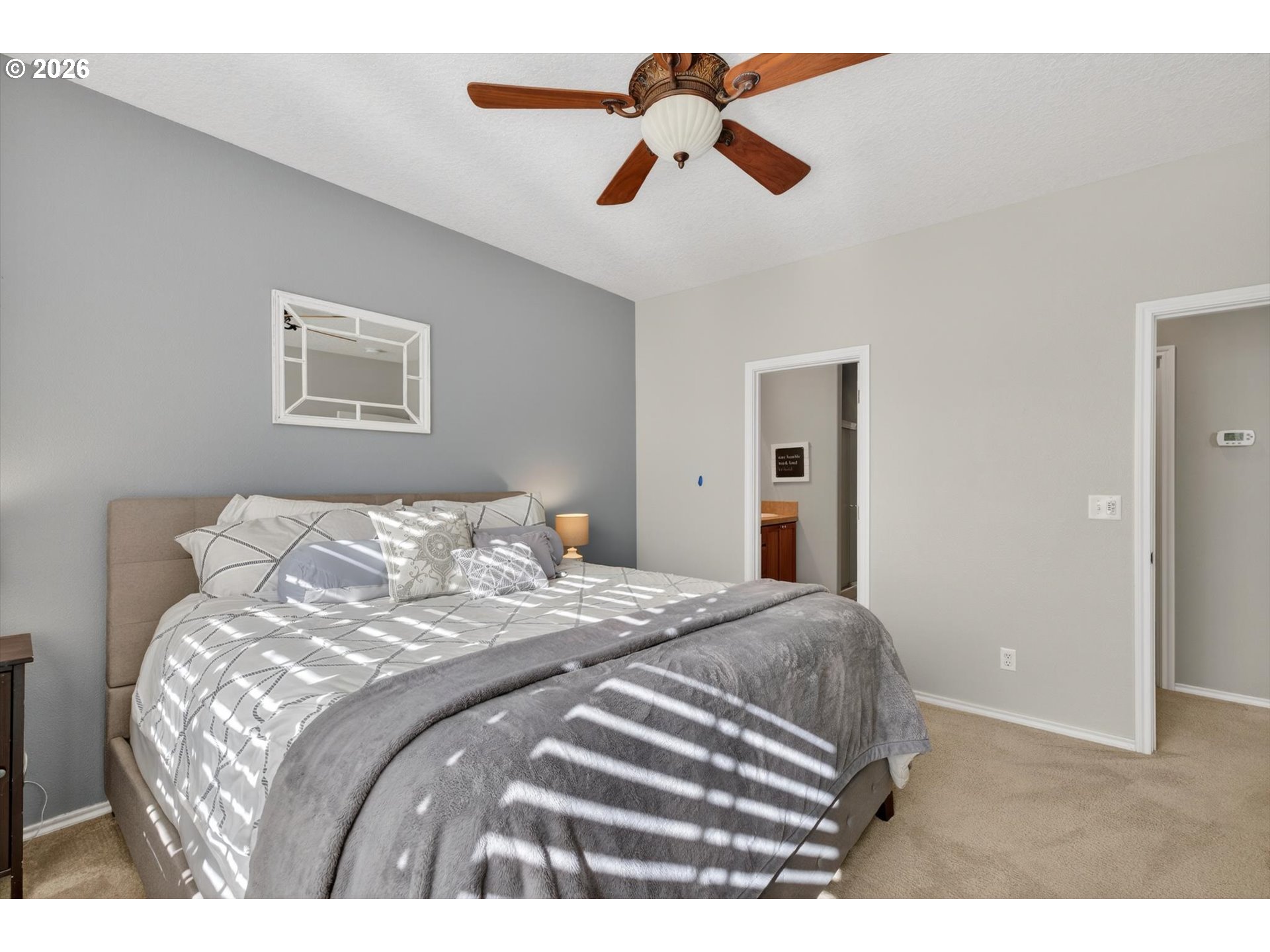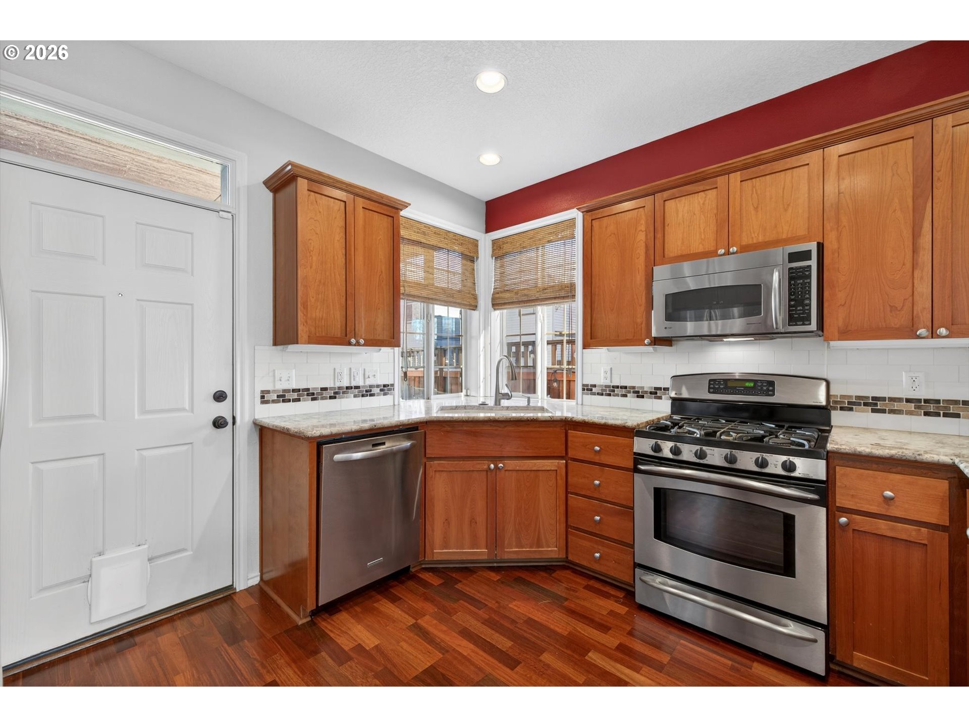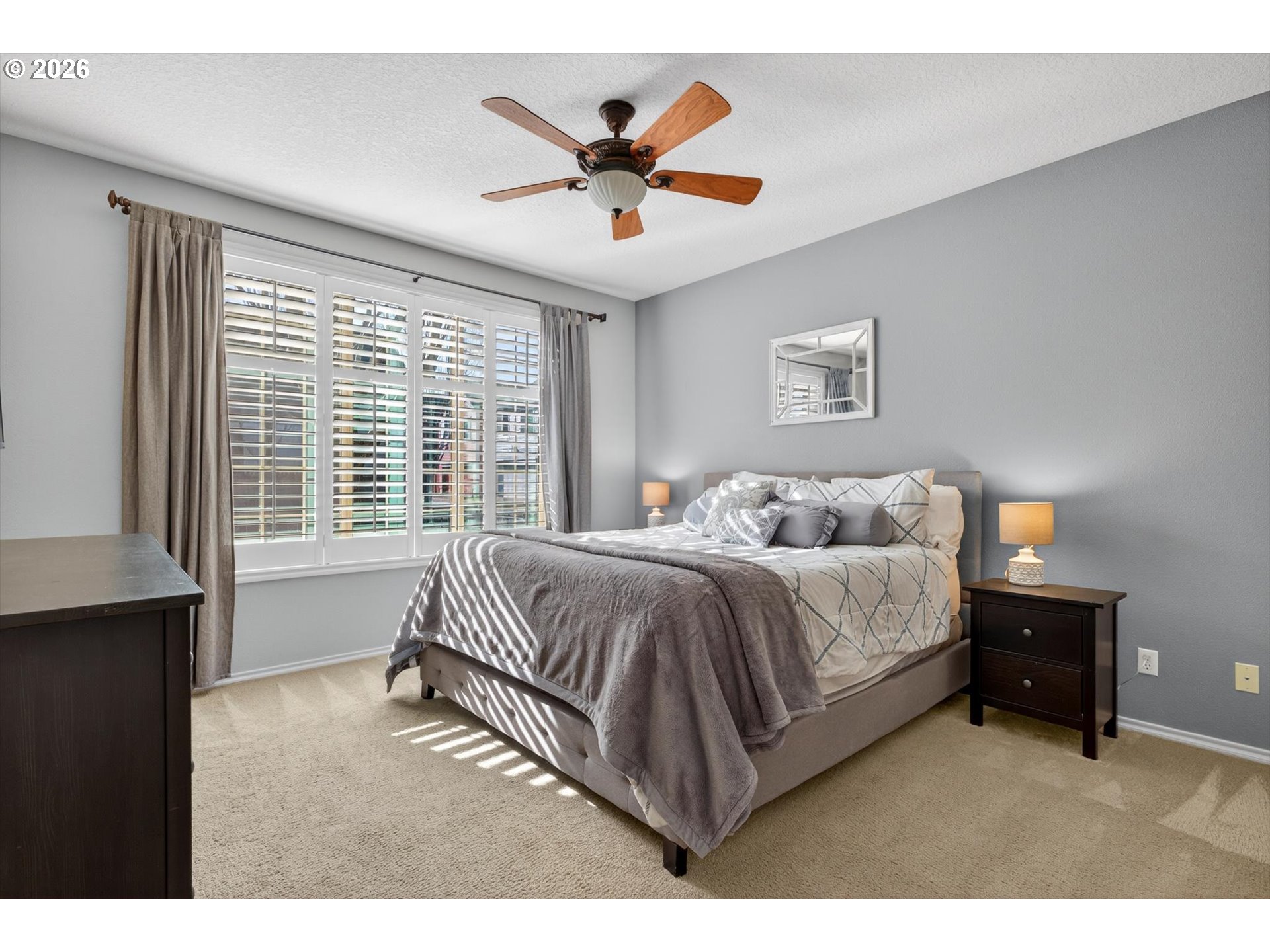 - Welcome home to this gorgeous two story craftsman style home located in the heart of Sherwood. The open floor plan with high ceilings and lots of windows offers an abundance of natural light. Spacious living room with gas fireplace and custom plantation shutters throughout. Cherry hardwood floors on the main level. The gourmet kitchen features granite counter tops, stainless steel appliances, newer refrigerator, cherry wood cabinets, and pantry. Three large bedrooms plus loft and 2 1/2 bathrooms. The primary suite is on the main level. The upstairs loft has built-in desk which is ideal for home office. The third bedroom can also be used as a media room. Laundry room upstairs with sink and lots of cabinet space. Fenced yard with covered Trex deck and gas plumbed for BBQ. Air conditioning, 2 car garage, Ring doorbell, programable thermostat, censored windows and doors. HOA maintains the front yard, sprinklers. Cable included. 2nd refrigerator and washer/dryer negotiable. Located close to shops, parks and schools. This home has it all!
