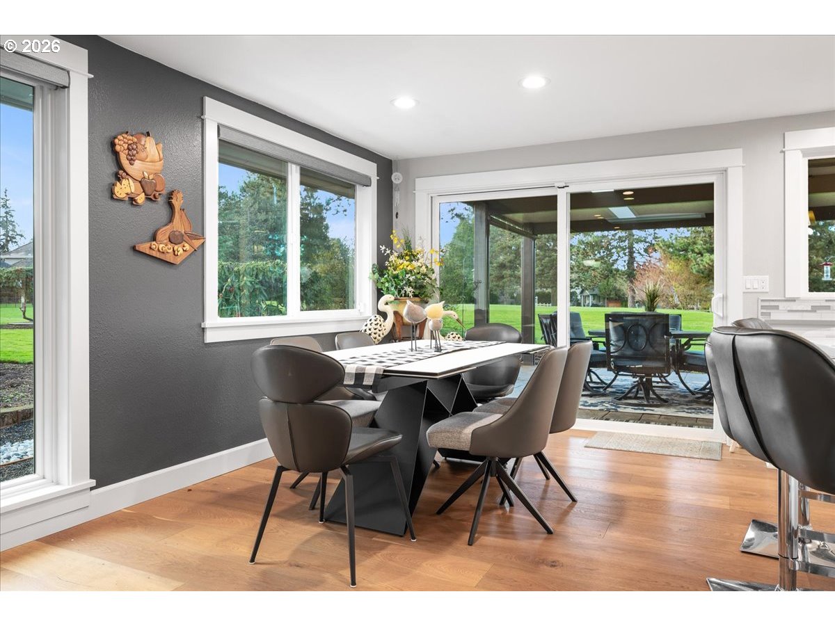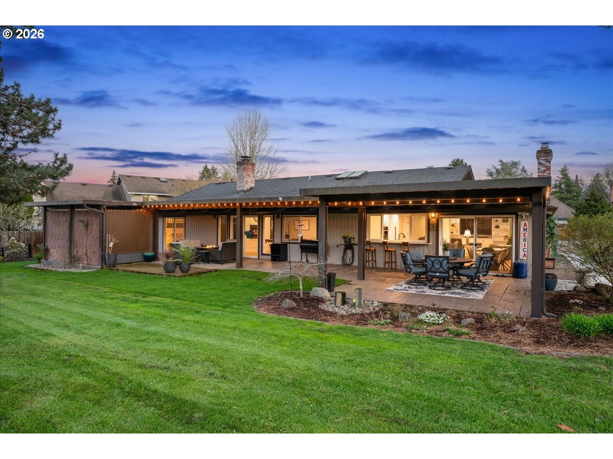 Beautifully renovated single-level home on Green Meadows Golf Course. Modern gourmet kitchen with walk-in pantry (dual sinks), induction cooktop, and pass-through windows out to the covered patio. Primary has a walk out slider to the hot tub, 2 additional bedrooms. Updated 2.5 baths with heated floors, gorgeous light-colored hardwoods throughout Great room features built-in entertainment center plus gas & electric fireplaces. Recent upgrades include new HVAC, electrical panel, updated plumbing, electric blinds, and epoxy garage floor. Enjoy a stunning outdoor living space overlooking the 6th tee box—serene views without golf-ball impact. Move-in ready, stylish, most all furnishings available, and perfectly positioned for easy indoor-outdoor living. It's a vacation daily in this Airbnb styled oasis.