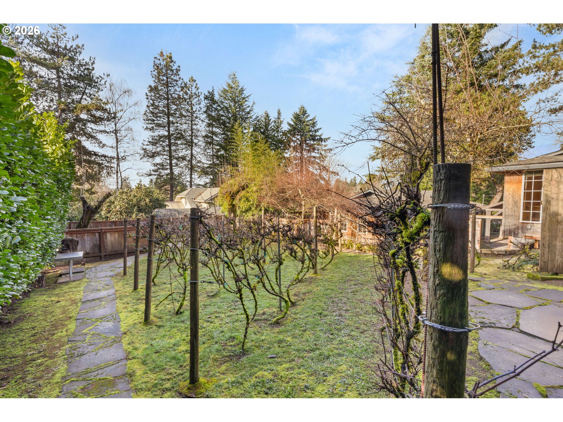 - Charming and versatile 3-bedroom, 1-bath home with grape vinyard in a desirable SW Portland location just blocks from Multnomah Village. Featuring a detached studio/office that offers exceptional flexibility. The main residence showcases a functional floor plan with abundant natural light, comfortable living spaces, and timeless character throughout. The detached studio provides an ideal space for a home office, creative studio, guest retreat, wine making studio, or hobby room—perfect for today’s work-from-home lifestyle. Enjoy a private yard with room to relax, garden, or entertain, along with convenient access to parks, shopping, dining, and commuter routes. A rare opportunity to own a well-maintained home with added bonus space in a sought-after neighborhood. Over 40 grape plants and several apple trees make this home a wine hobbyists dream!