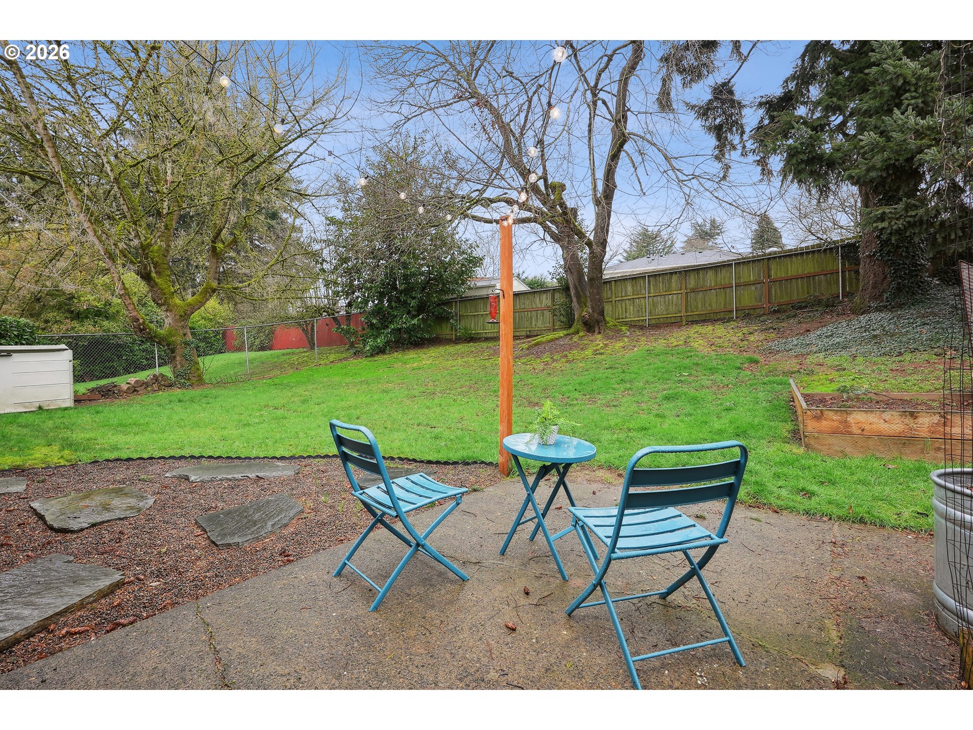 - Fenced, Patio, Porch, Raised Beds, Yard