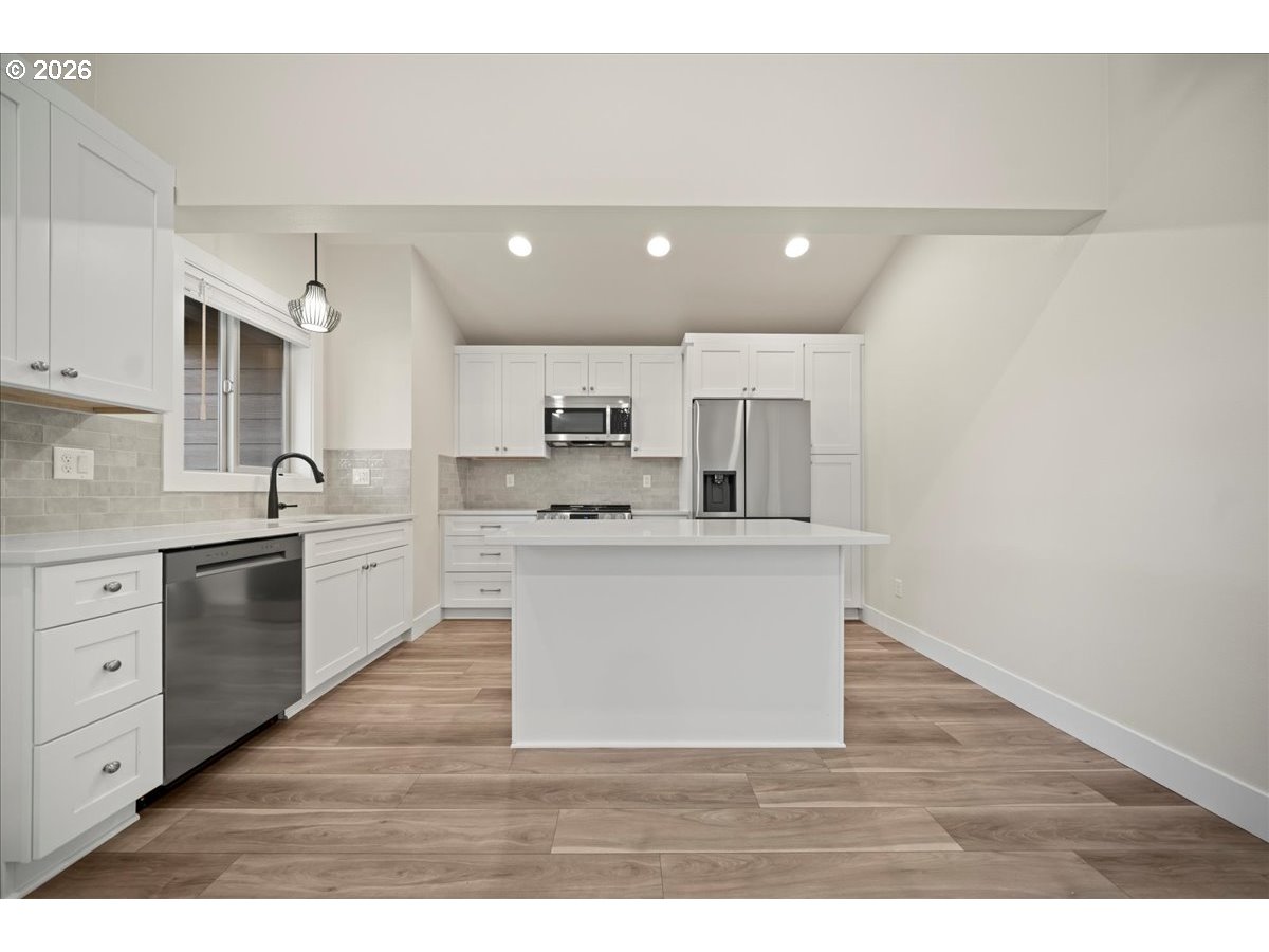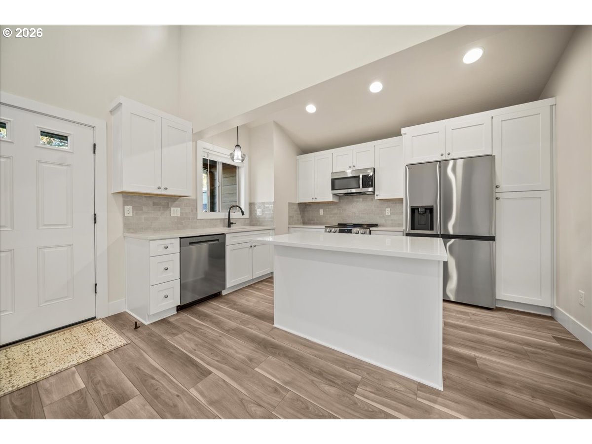 - Brand new one level luxury cottage home with a private backyard and all the upgrades included. From the moment you enter, you’ll be welcomed by stunning luxury vinyl plank flooring, soaring vaulted ceilings, and an abundance of natural light that fills the open-concept living space. The heart of the home features a beautifully crafted kitchen complete with quartz countertops, soft-close cabinets, a spacious island, and premium stainless steel appliances—including the refrigerator. Cozy up in the inviting living room, highlighted by a floor-to-ceiling shiplap accent wall, floating built in shelve, and a sleek electric fireplace. This 2-bedroom, 2-bathroom gem includes a spacious primary suite with a luxurious attached bath, featuring a walk-in tile shower. This homes comes with a dedicated parking spot, and the $223/month HOA covers nearly everything except electricity and cable ensuring low-maintenance living. Nestled in a peaceful neighborhood, you’re just a short walk to Wesley Linn Park and minutes from local shopping and amenities. This home includes all the upgrades with a large fenced private backyard—perfect for pets, gardening, or outdoor entertaining. Don’t miss this opportunity to own a beautifully designed home built by a trusted local custom home builder: Gerritz Custom Homes who has been building quality homes since: 1979. This custom cottage offers Luxury, convenience, and charm—all in one perfect package. Make sure to check out the video tour and schedule your showing to come visit in person. Blinds, fridge, washer & dryer all included making this home move-in-ready!