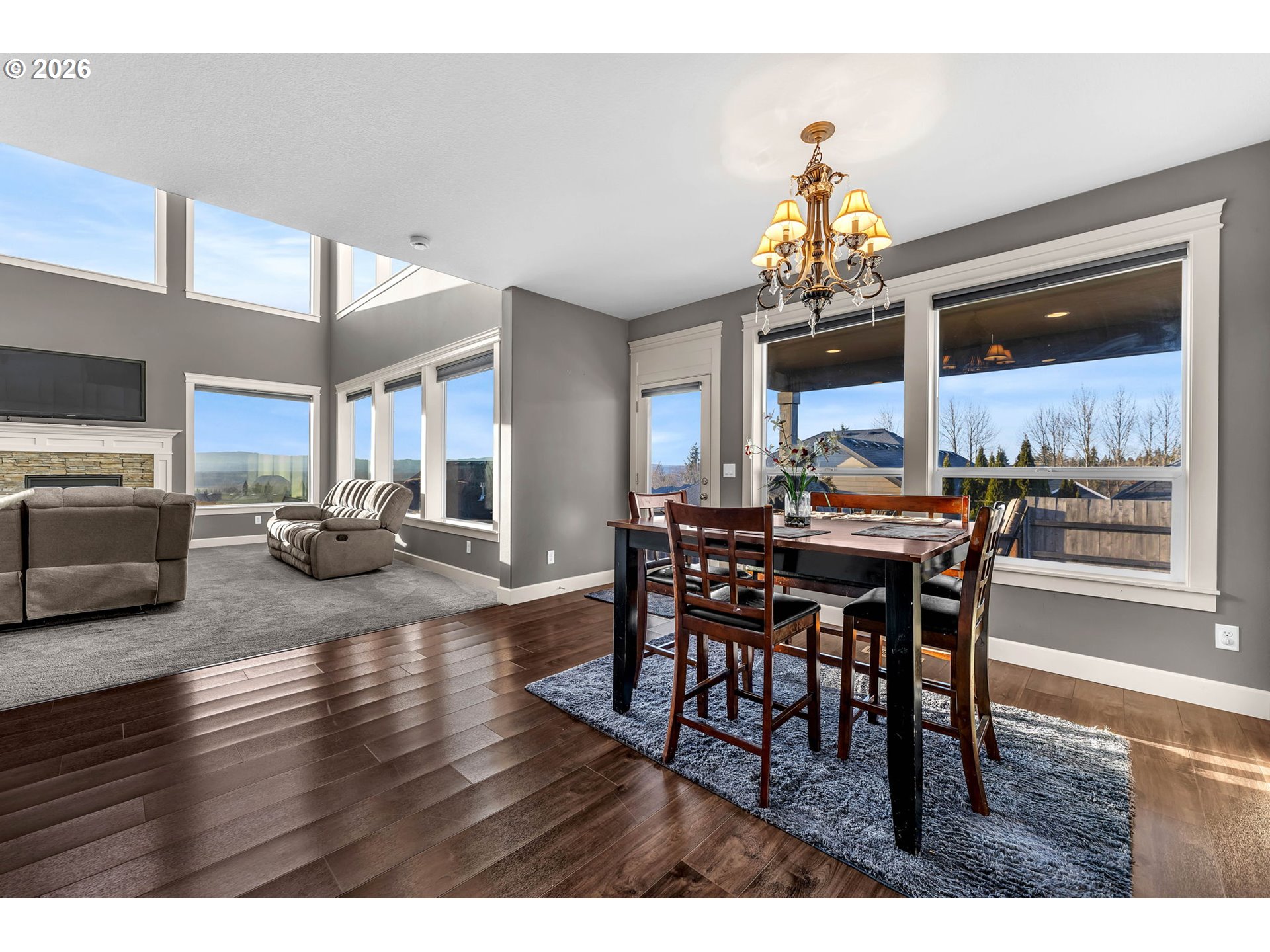 - Heron Ridge custom home with instant curb appeal and an unforgettable interior, highlighted by two dramatic walls of windows that define the grand living room, filling the space with natural light, scenic views, and a striking stone fireplace. The main level is finished with gorgeous, low-maintenance luxury vinyl plank flooring, plush carpet, sophisticated color palettes, and thoughtful upgrades throughout. The expansive gourmet kitchen serves as the heart of the home, showcasing granite countertops, stainless appliances, full-height cabinetry, gas cooking, a pantry, abundant prep space, an inviting eating bar ideal for gathering, and the added convenience of all appliances included. A spacious room just off the kitchen offers flexible use as a family room, playroom, or additional living space, while a convenient mudroom and a versatile office or main-level bedroom near the entry add everyday functionality. Upstairs, take in even more scenic views, including from the spacious owner’s suite with tray ceiling and picture windows, complemented by a spa-inspired ensuite featuring dual sinks, a soaking tub, walk-in shower, and a large walk-in closet. Two additional bedrooms and an oversized laundry room with sink, built-ins, and washer and dryer included complete the upper level. Outdoors, meticulously maintained landscaping, a covered deck with beautiful views, and ample room to play or unwind create a seamless extension of the home’s polished yet comfortable lifestyle. Don’t Miss This One – Schedule Your Showing Today!