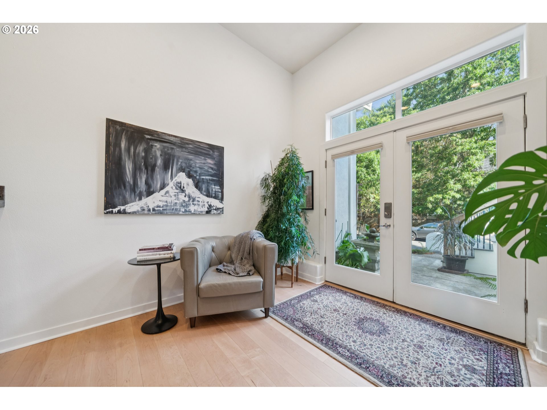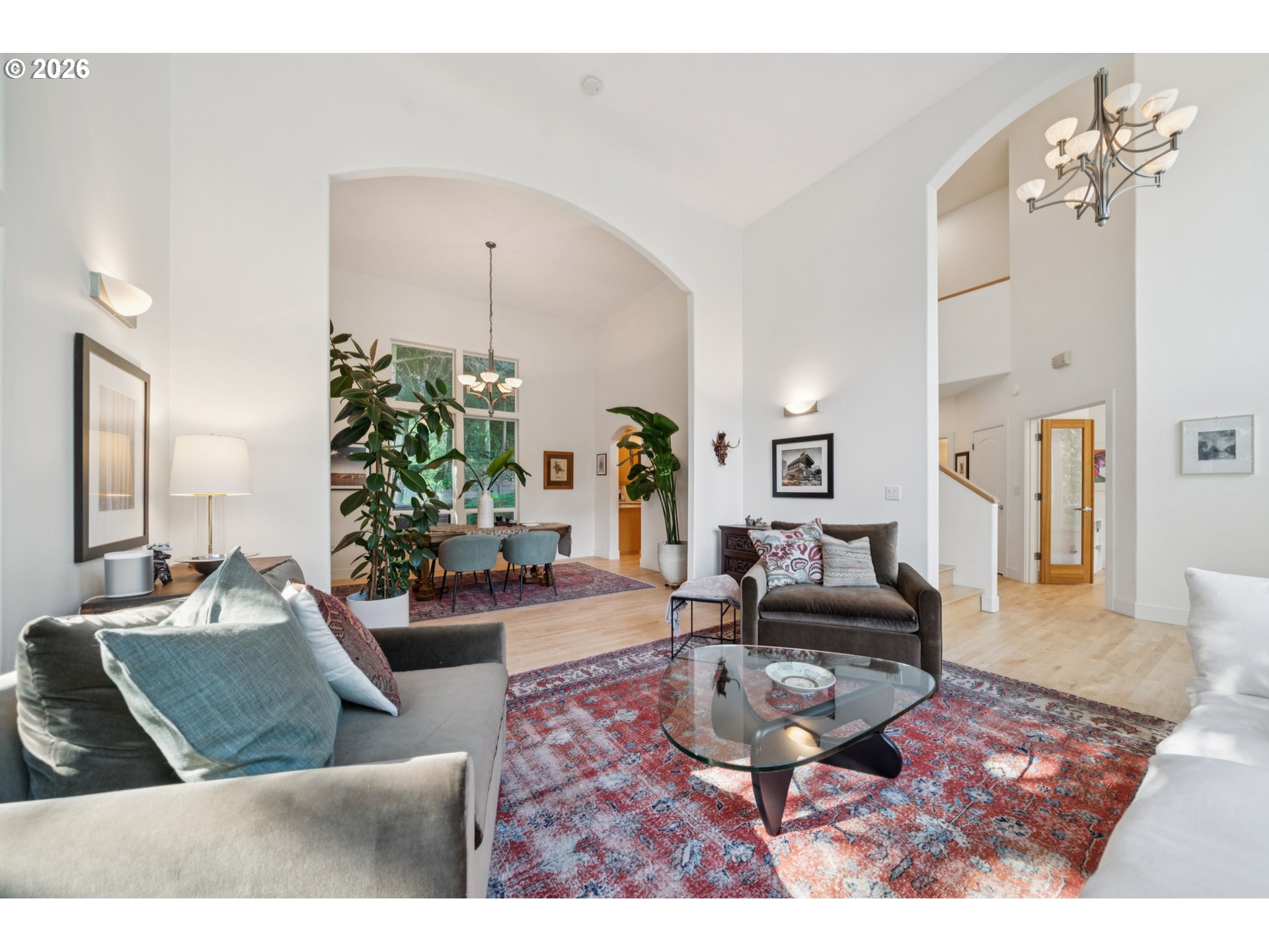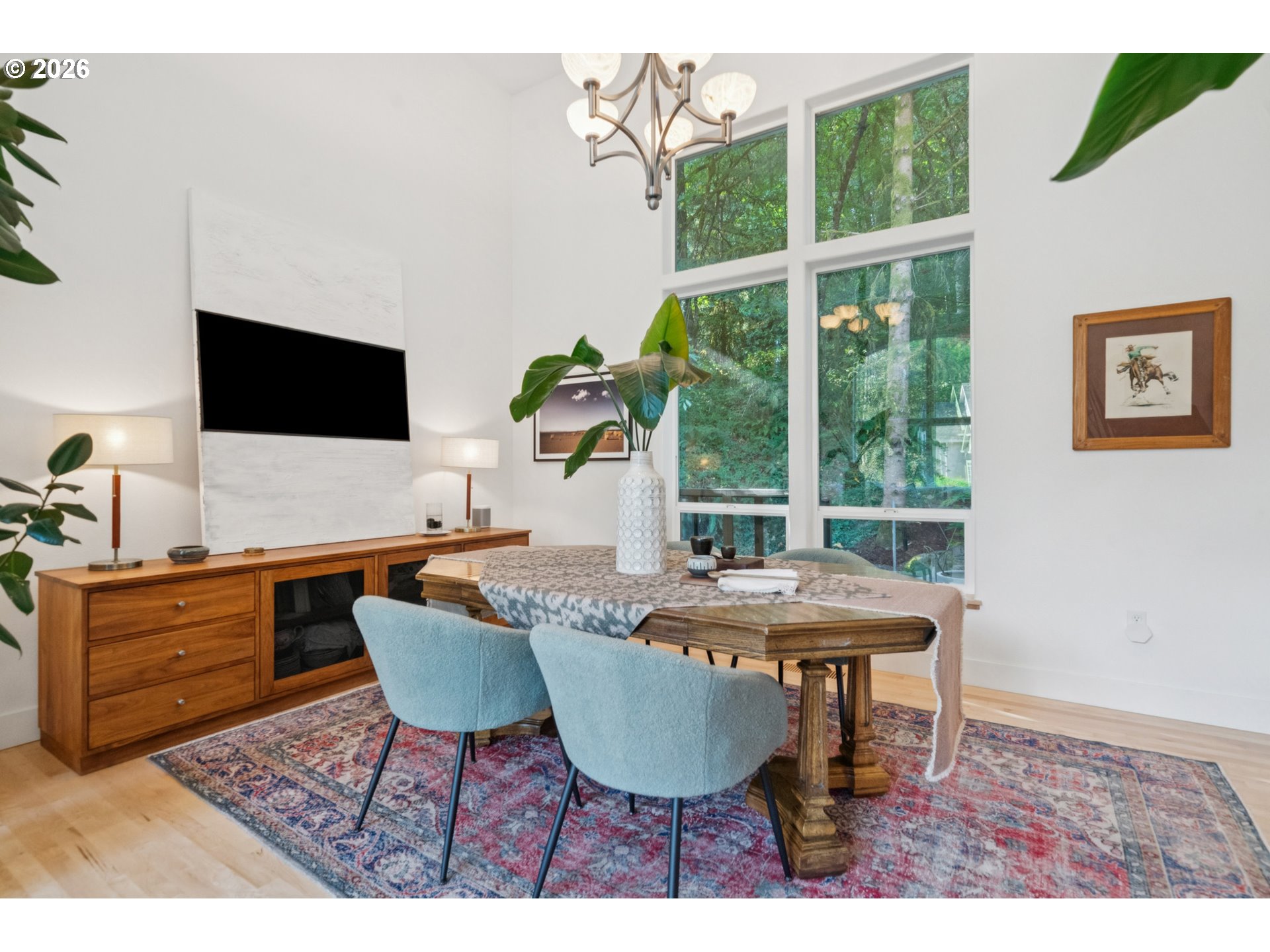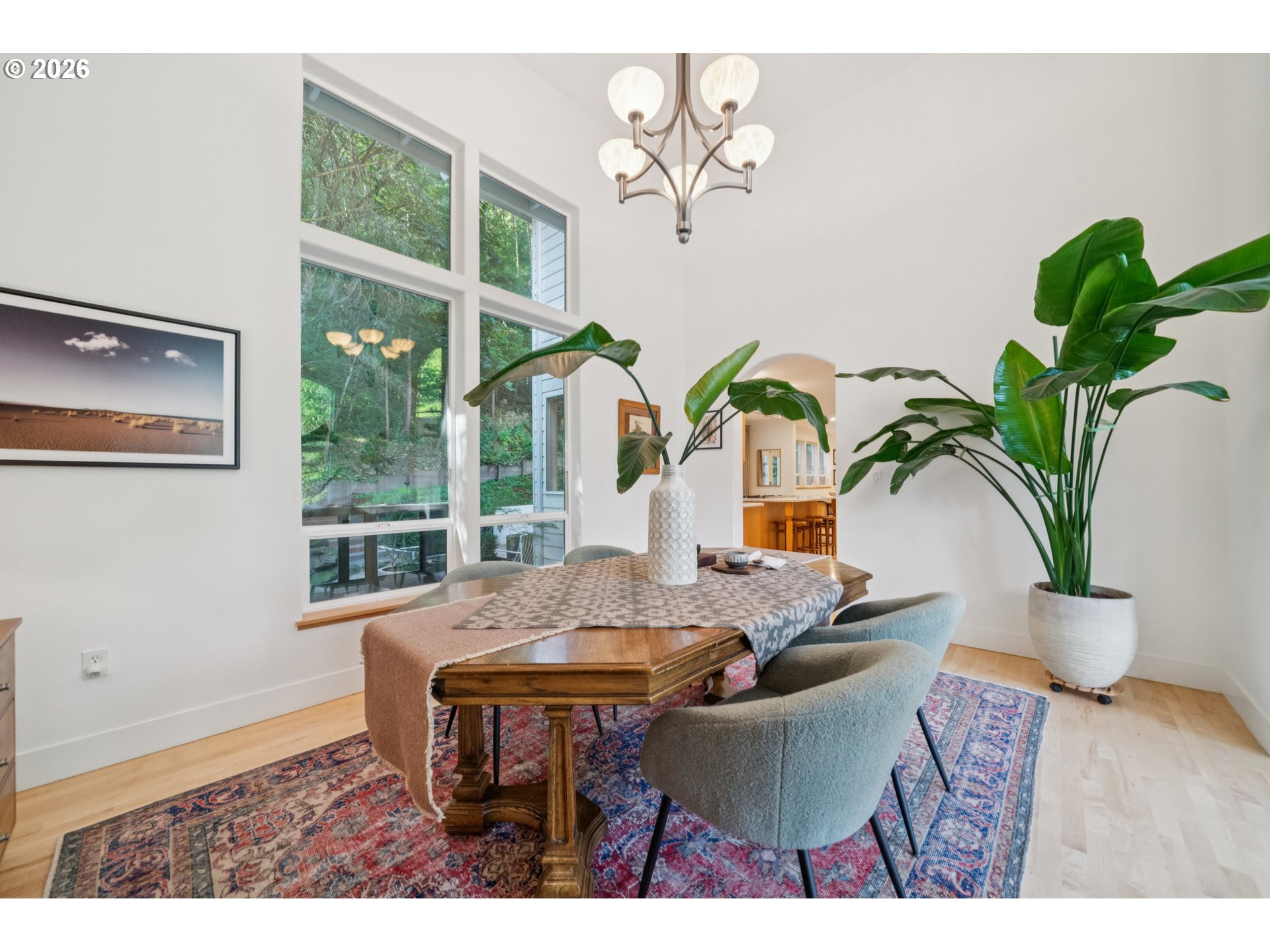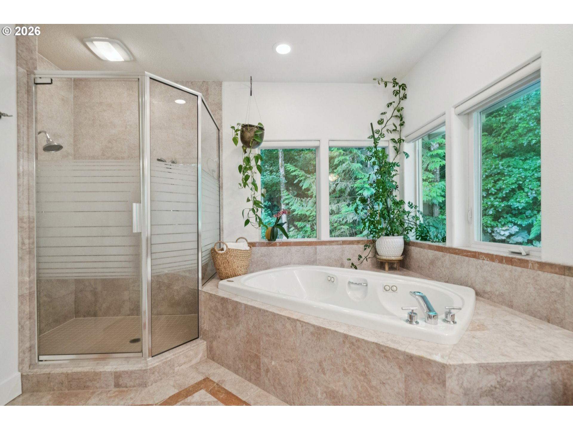 - Nestled on a private, wooded lot in coveted Ashcreek, this exceptional, updated 2001 Mediterranean estate blends timeless architecture with contemporary sophistication. 5 bedrooms plus a dedicated office, an additional bonus room, downstairs sitting room, & 3.5 bathrooms offer luxurious living across multiple levels. Dramatic high ceilings & expansive windows create an impressive light-filled space showcasing serene forest views. The thoughtful floor plan balances formal elegance with casual comfort, featuring distinct living/dining areas alongside an open concept kitchen & family room with newly rebuilt gas fireplace. The remodeled kitchen showcases premium appliances, marble countertops, custom cabinetry, dedicated pantry, & generous cooking island. Beautiful maple hardwood floors flow throughout, while French doors connect indoor/outdoor spaces to a private patio that's ideal for entertaining. The main floor office provides bright professional workspace through elegant glass French doors. An adjacent bonus room offers endless possibilities: home theater, fitness studio, or creative sanctuary. The upper level features 3 airy bedrooms, full bathroom, & luxurious primary suite with en-suite bathroom, gas fireplace, soaking tub, walk-in closet, & private balcony overlooking the tranquil landscape. The lower level provides additional living with bedroom, bathroom, & sitting room featuring wet bar & patio access, perfect for guests or multigenerational living. Practical luxury includes a spacious 4-car garage with utility room, workshop space, secondary laundry hookup, & central vacuum system. This rare offering combines authentic Mediterranean charm with modern conveniences in an unparalleled natural setting. Minutes from Smith School Sports Fields & Multnomah Village plus convenient access to downtown Portland, major freeways, high-tech corridor, & Washington Square. A rare opportunity to own Mediterranean paradise in one of Portland's most desirable neighborhoods. [Home Energy Score = 4. HES Report at https://rpt.greenbuildingregistry.com/hes/OR10198899]