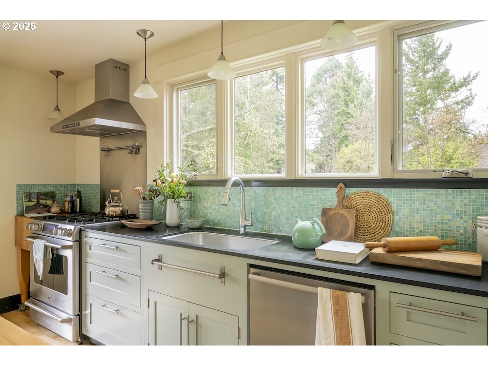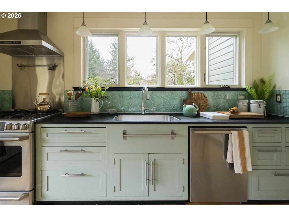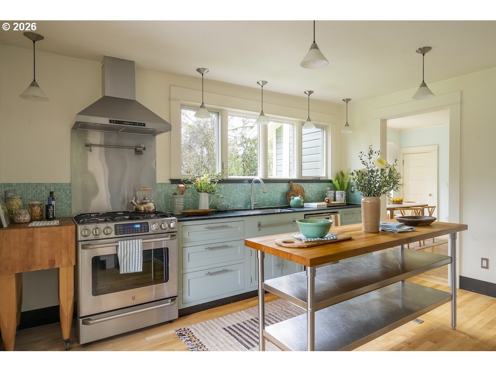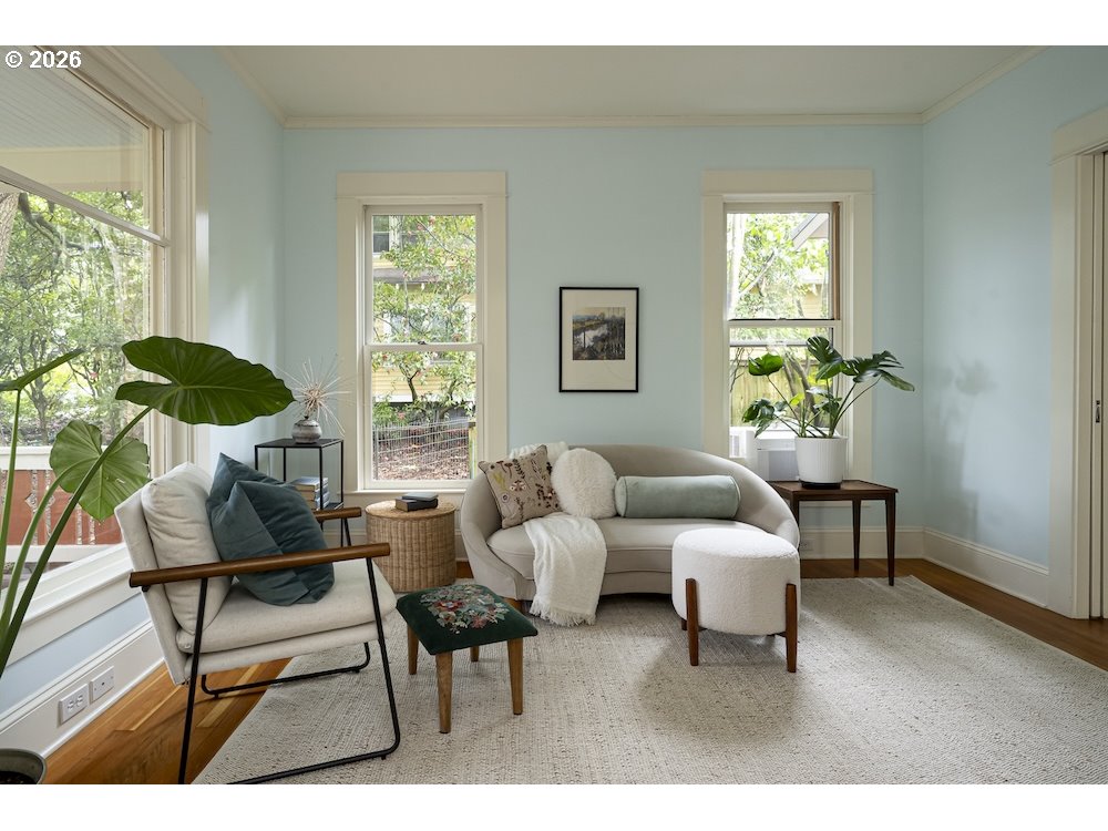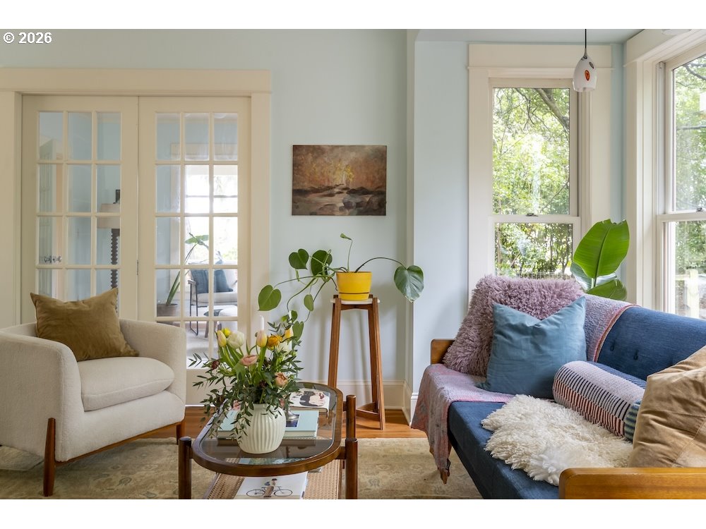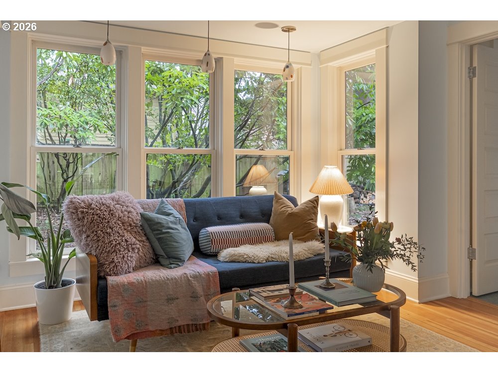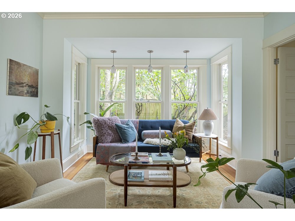 - Why sacrifice modern comforts when all you crave is vintage vibes? This grand four-level N. Tabor farmhouse is set back deep on a generous .36 acres in a highly desirable location. Spacious and light, this home extends a warm welcome. Ushered into 2026 with uncommon taste: a contemporary kitchen for honing your culinary craft; a sprawling garden brought to life with deep dedication to growing produce and medicinal plants; a sweet appreciation of original features that lend heart to home. Step through the foyer to an old school layout on the main, offering high ceilings, and both living and family rooms...spoiled for space so you can stretch out and feel luxurious. Upstairs, three good-sized bedrooms, with a full bath for convenience. Ascend one floor further to a magical, open bonus space, ideal as an art or yoga studio, a place to create and unwind. A large unfinished basement provides ample storage, including for the results of canning your garden's bounty. Mature, drought-resistant vegetation populates the grounds, a meticulously curated collage of native wildlife habitat and corridors, providing solace, beauty, and color in every season. Diligently maintained and consistently updated throughout the years of stewardship, with an eco-roof, seismic fittings, electric car charger, new windows/doors, radiant floor heat, mechanical upgrades, and myriad embellishments that make this home near-immaculate. This is a truly special house that reveals its treasures to those who step through its front door... [Home Energy Score = 5. HES Report at https://rpt.greenbuildingregistry.com/hes/OR10245107]