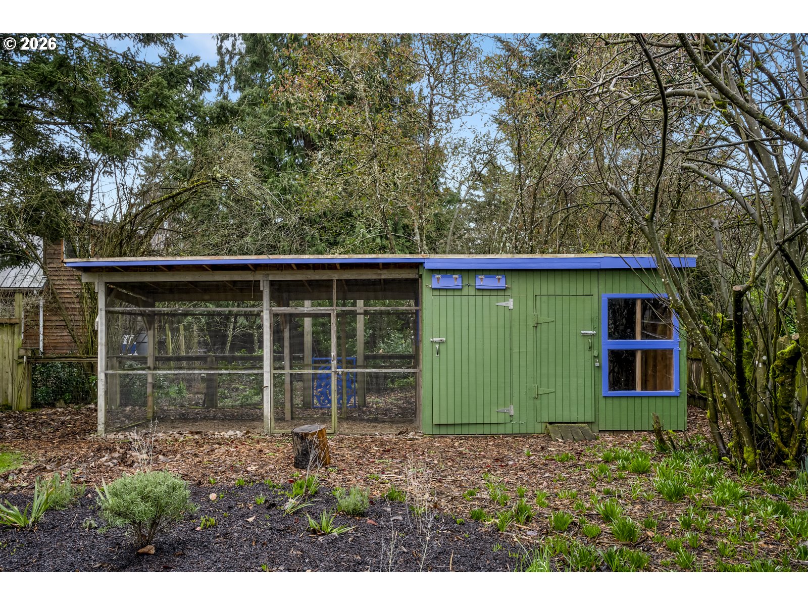 - Fenced, Garden, Outbuilding, Patio, Porch, Poultry Coop, Raised Beds, RV Parking, Tool Shed, Yard