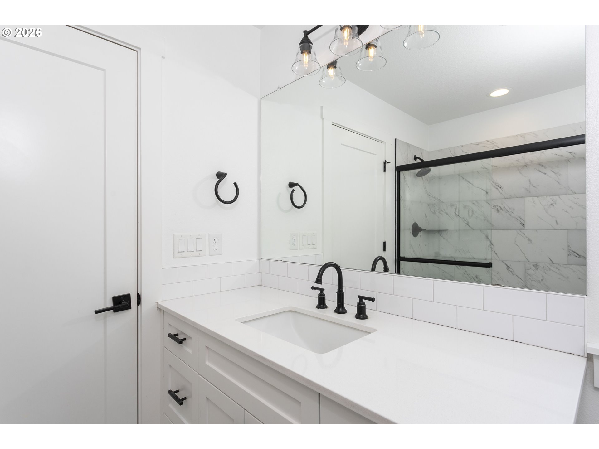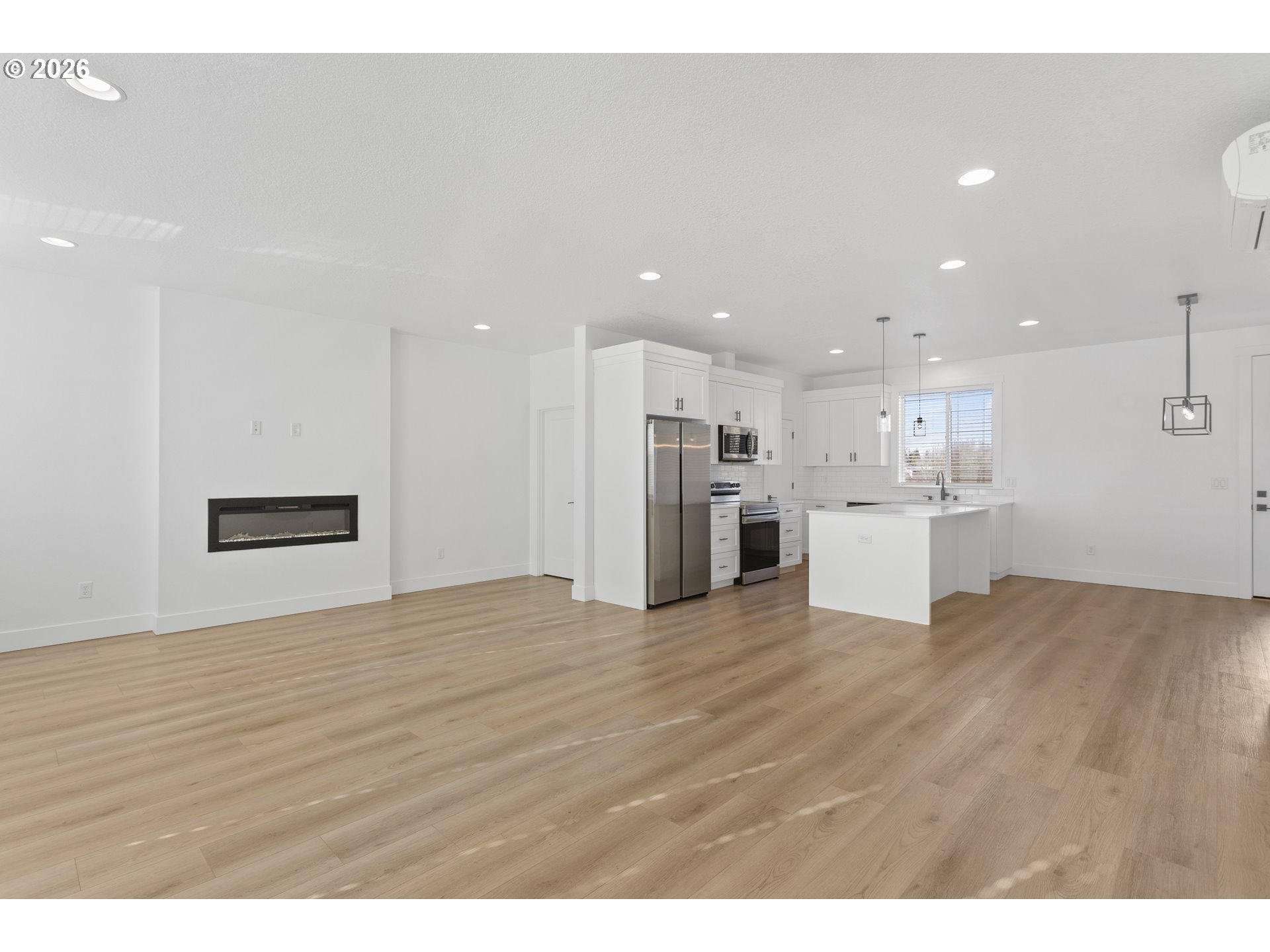 - This stunning, large tri-level townhome offers 2,201 square feet of thoughtfully designed living space and was built in 2022, providing a modern layout with like-new finishes throughout. The home features luxury vinyl plank flooring, quartz countertops, and stylish tile, creating a clean and contemporary feel from top to bottom.The first floor includes one bedroom and one full bathroom, offering an excellent option for a possible in-law quarters, guest suite, home office, or separate living area. This flexible space is ideal for multigenerational living or anyone needing privacy from the main living areas.The second level serves as the heart of the home, featuring an open-concept great room, kitchen, and dining area designed for both everyday living and entertaining. The kitchen offers ample counter space, modern cabinetry, and quality finishes, while the adjacent dining and living spaces create a seamless flow. A convenient half bathroom is also located on this level. Large windows provide abundant natural light and showcase the peaceful greenbelt views behind the home.The third floor features three bedrooms and two full bathrooms, including a spacious primary suite with a walk-in closet and private bath. Two additional bedrooms and a full bathroom complete the upper level, providing plenty of room for family, guests, or work-from-home needs. With a total of 3.5 bathrooms, a two-car garage, and a desirable greenbelt lot, this ready townhome offers space, flexibility, and comfort in a prime Battle Ground, Washington location.