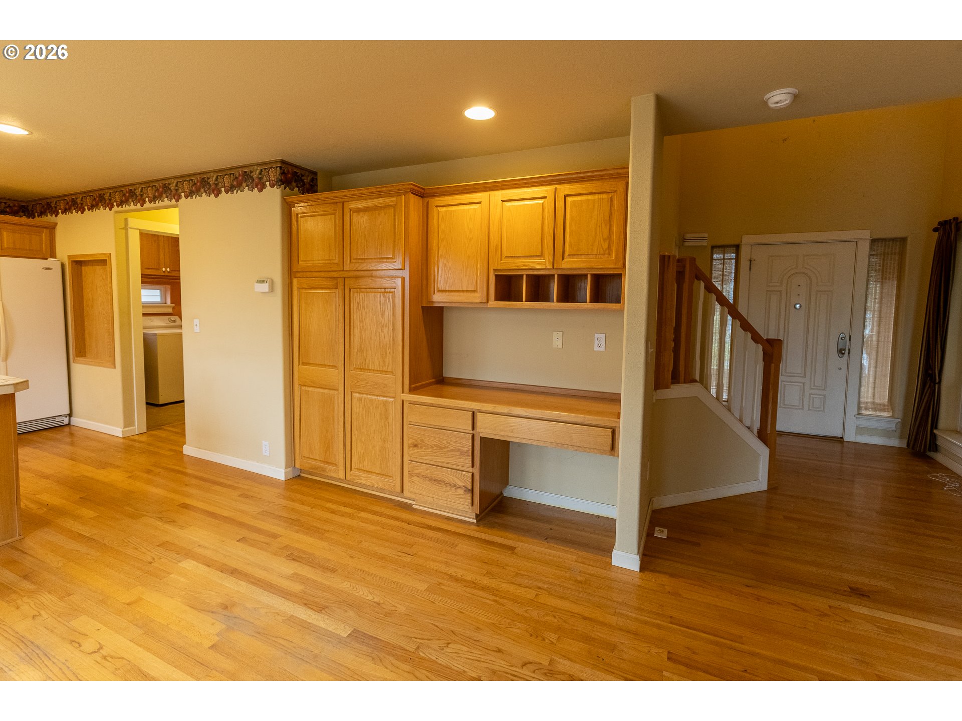 - Square footage per floor plan drawing of the home is showing more than the county records (1746 vs 1602). The seller is not warranting the sqft of either resource. This Home is being sold "AS-IS, NO REPAIRS" to be done by the seller. Great opportunity to do updates & put some elbow grease into this one to really make it shine. The gas fireplace insert is currently not working & the gas line to the unit has been turned off. Home located on corner lot in a private cul-de-sac tucked away from the hustle & bustle, yet conveniently located to Sunnyside & Clackamas area amenities. All appliances are included + shelves galore in the garage. Real hardwood floors in living rm, dining & kitchen, great built-in desk in dining area along w/pantry. Large main floor utility rm w/cabinets & sink, 2 nice sizable bdrms feature built-in benches in alcove, if you need a 4th bedroom, it could easily be converted back by enclosing the opening that created an enormous walk-in closet for the primary bdrm. Composite deck off the dining area over looking fully fenced backyard. 10x8 Shed, water heater replaced in 2021, exterior painted in 2019