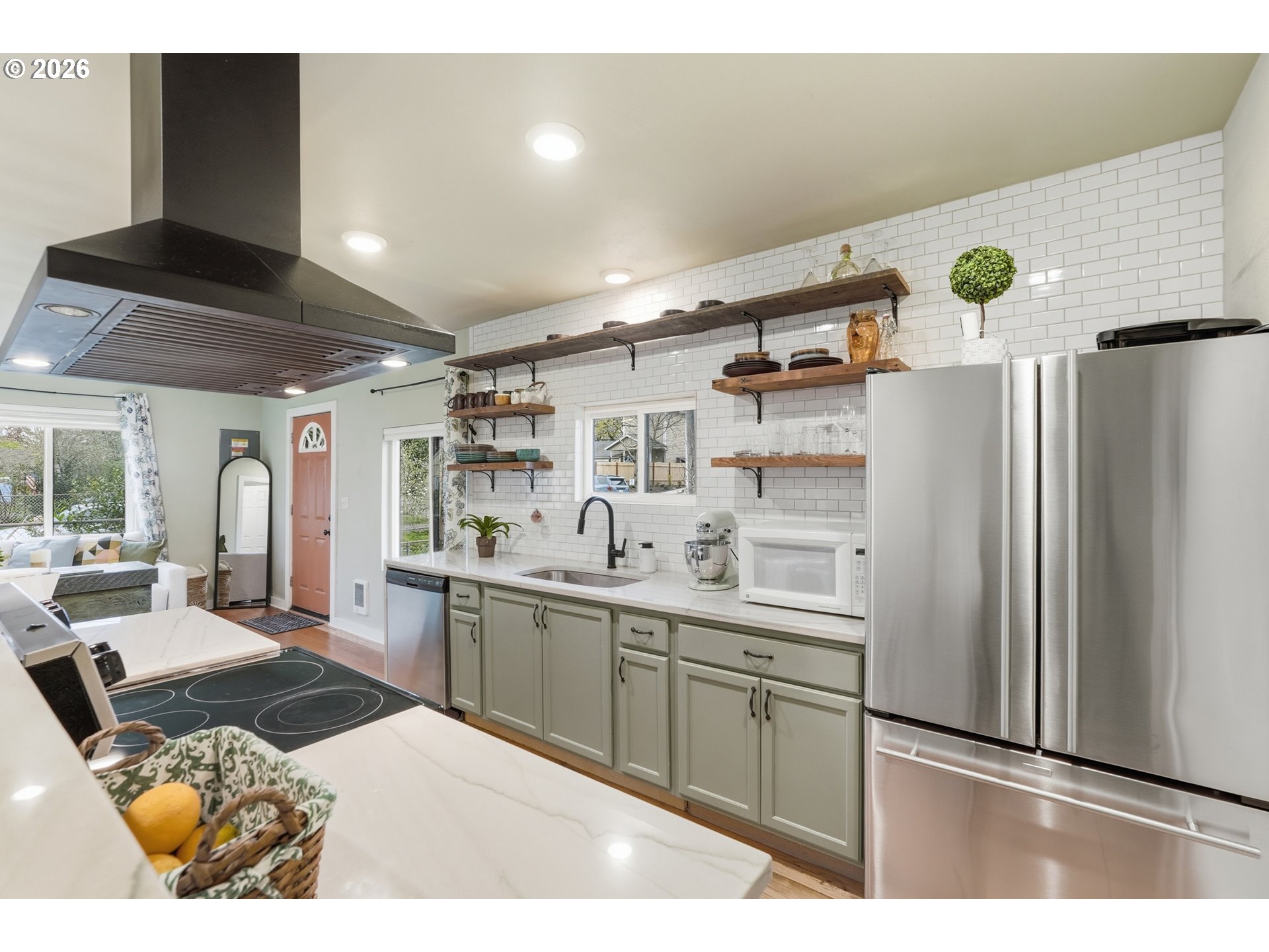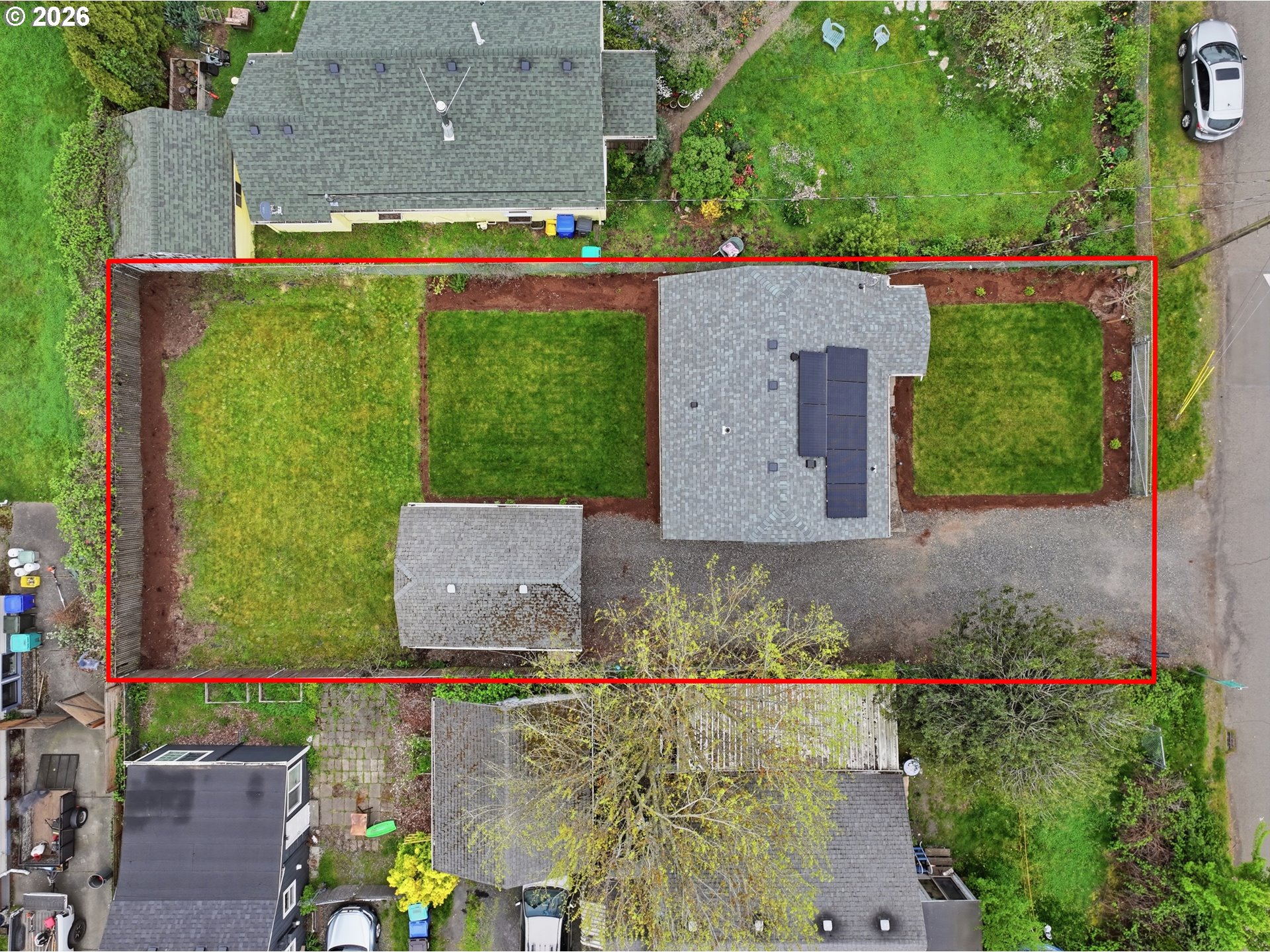 - Charming and fully updated, this classic SE bungalow lives large with a smart, well-designed layout and a level yard in both the front and back. Hardwood floors and beautiful natural light run throughout the main level, where an open-concept living, kitchen, and dining area creates an easy, connected flow. The remodeled kitchen is the heart of the home with waterfall countertops, stainless steel appliances, and a bar for casual seating. The living room features a custom built, motorized TV lift cabinet for easy storing and use! The dining area overlooks the backyard, bringing in even more natural light. The layout offers ideal separation of space with a bedroom on the main level, while the private primary suite is tucked away on its own lower level. Downstairs includes an updated ensuite bathroom, a spacious walk-in closet, and an oversized laundry room with plenty of storage and functionality. Outside, the completely level, fully fenced backyard is a true highlight—perfect for entertaining, pets, gardening, or simply enjoying your own private outdoor space. A detached one-car garage adds convenience, along with generous driveway parking. Equipped with solar panels and ideally located in SE Portland minutes from shopping, dining, and everyday amenities, this home offers charm, efficiency, and modern updates throughout. Come see it for yourself! [Home Energy Score = 8. HES Report at https://rpt.greenbuildingregistry.com/hes/OR10246591]