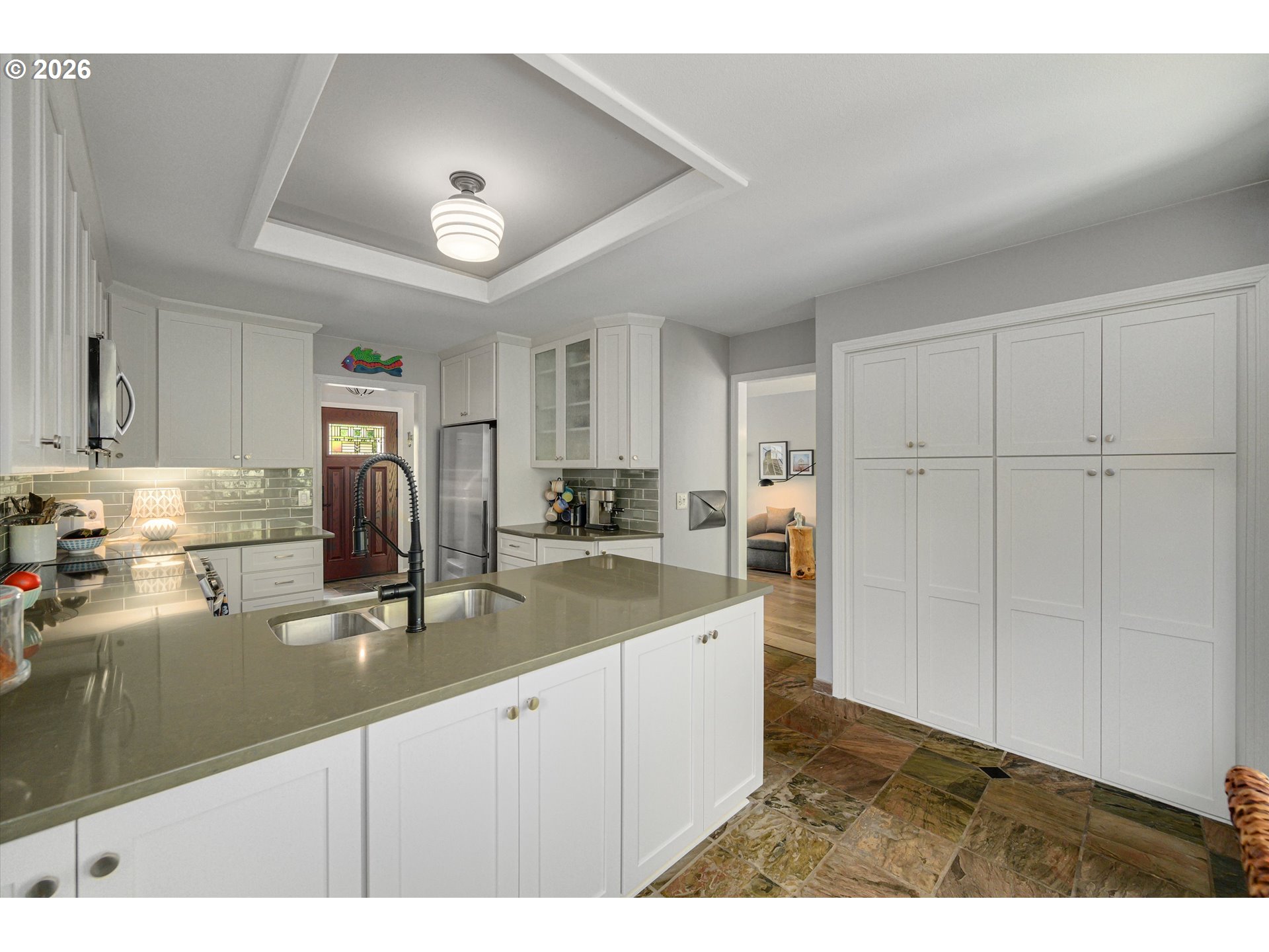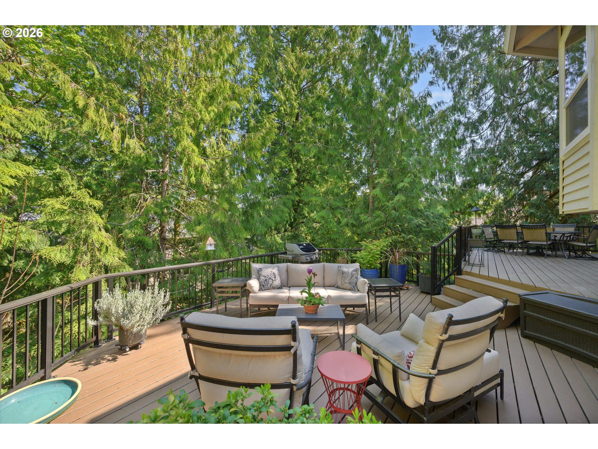 Tucked into a quiet neighborhood near Happy Valley, this beautifully maintained home blends comfort, convenience, and thoughtful updates. Enjoy peaceful views of the greenspace behind the home from the decks, ideal for relaxing or entertaining. Inside, the kitchen features freshly repainted cabinets, a new LG induction range, and a stylish Wolverine Brass faucet. The primary suite includes a new vanity and faucet, and both bathrooms have been tastefully updated over the years. With upgraded flooring, Milgard windows, and a long list of improvements, this home is move-in ready and minutes from shopping and restaurants. [Home Energy Score = 5. HES Report at https://rpt.greenbuildingregistry.com/hes/OR10238223]