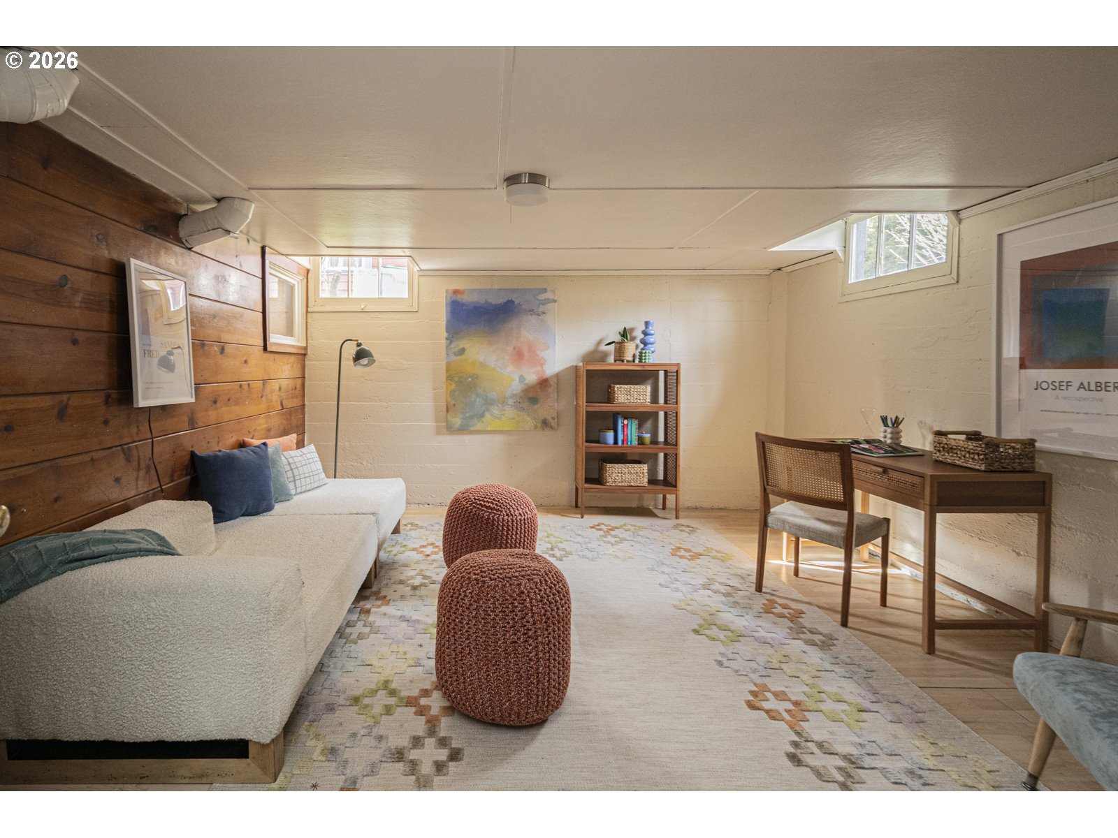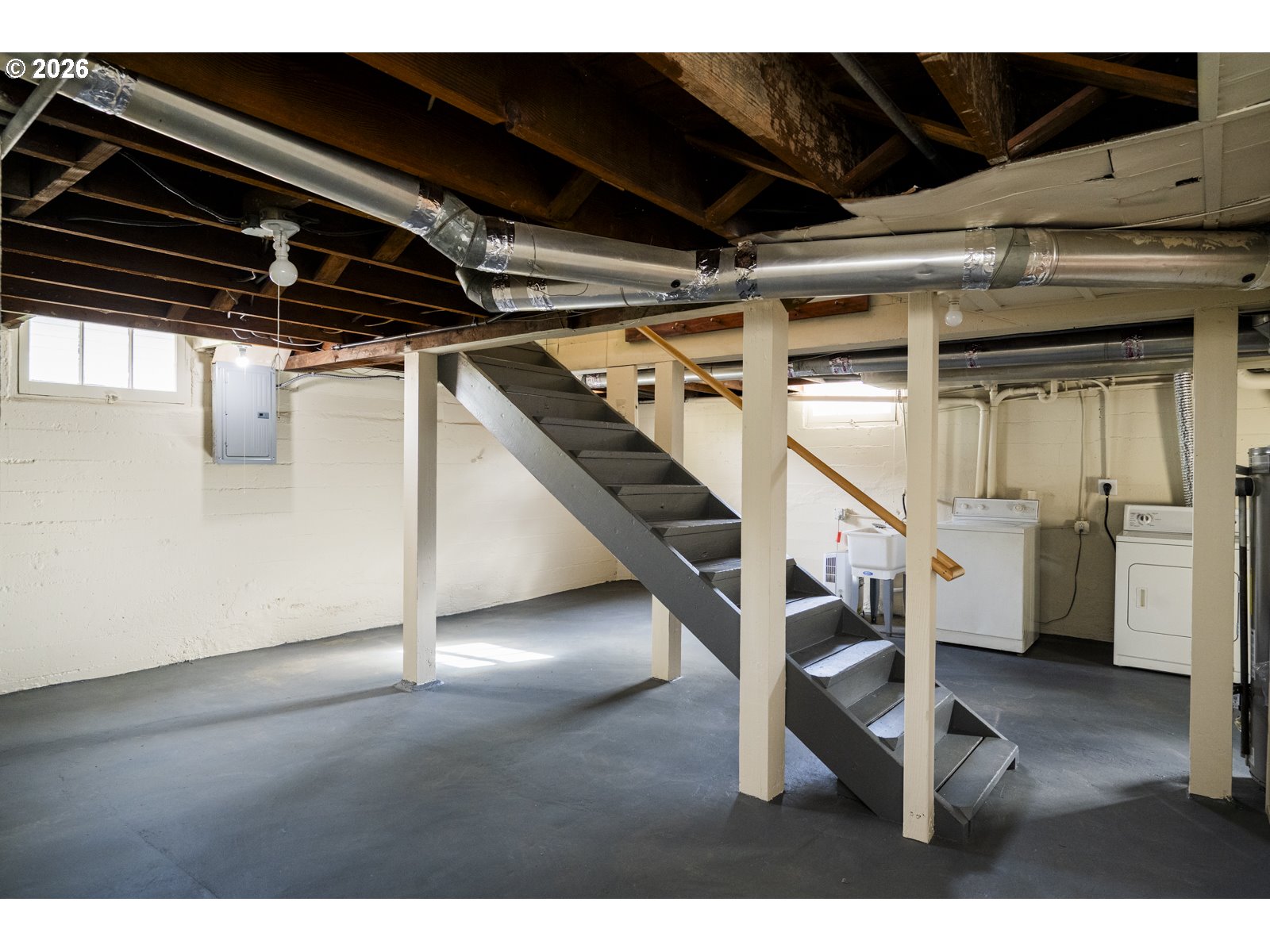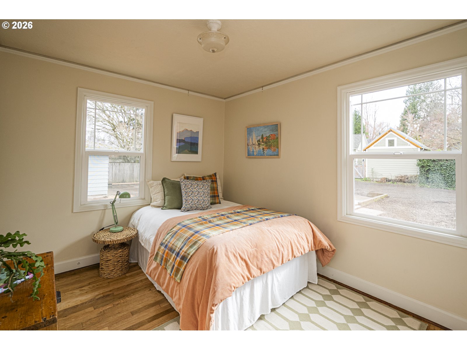 - Mid Century charm in the Overlook Triangle! Perched up off the street, this stunning property has curb appeal in spades. Step through the front door and notice original features like hardwood floors, a fun mail slot, a vintage speakeasy door hatch, and beautiful corner windows for capitalizing on sunlight all year long. Enjoy cooking in the charming kitchen with vintage features that have been paired with modern appliances and a brand new sink and faucet. Two spacious bedrooms offer plenty of closet space and overlook the big backyard. Downstairs, find a clean full basement with an extra bonus room: it's a quiet space for a home office, or a great place to hang with friends and jam. Recent updates include a brand new electrical panel, a new roof, and fresh paint throughout, and the basement and attic offer plenty of room for storage or future expansion. The oversized .17 acre lot is ready for your green thumb or possible future development, with alley access and a parking pad in back. With hip Mississippi Ave just .6 miles away and Mock's Crest Park at your fingertips, you'll love life in this vibrant neighborhood! [Home Energy Score = 3. HES Report at https://rpt.greenbuildingregistry.com/hes/OR10245103]