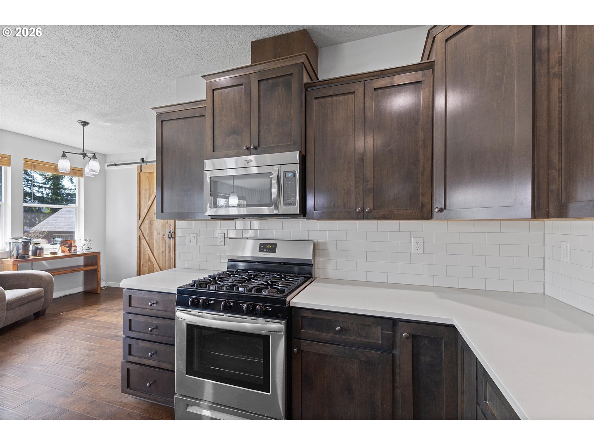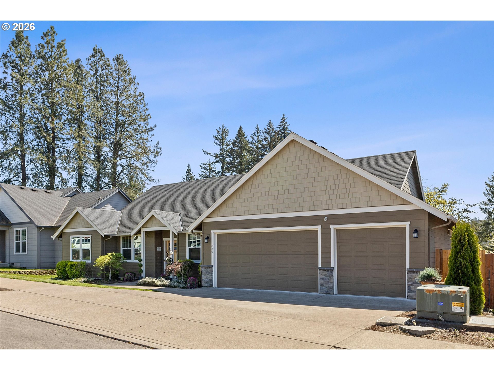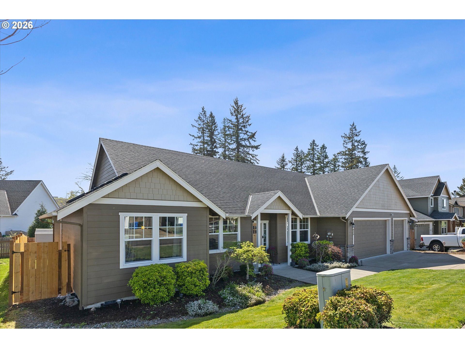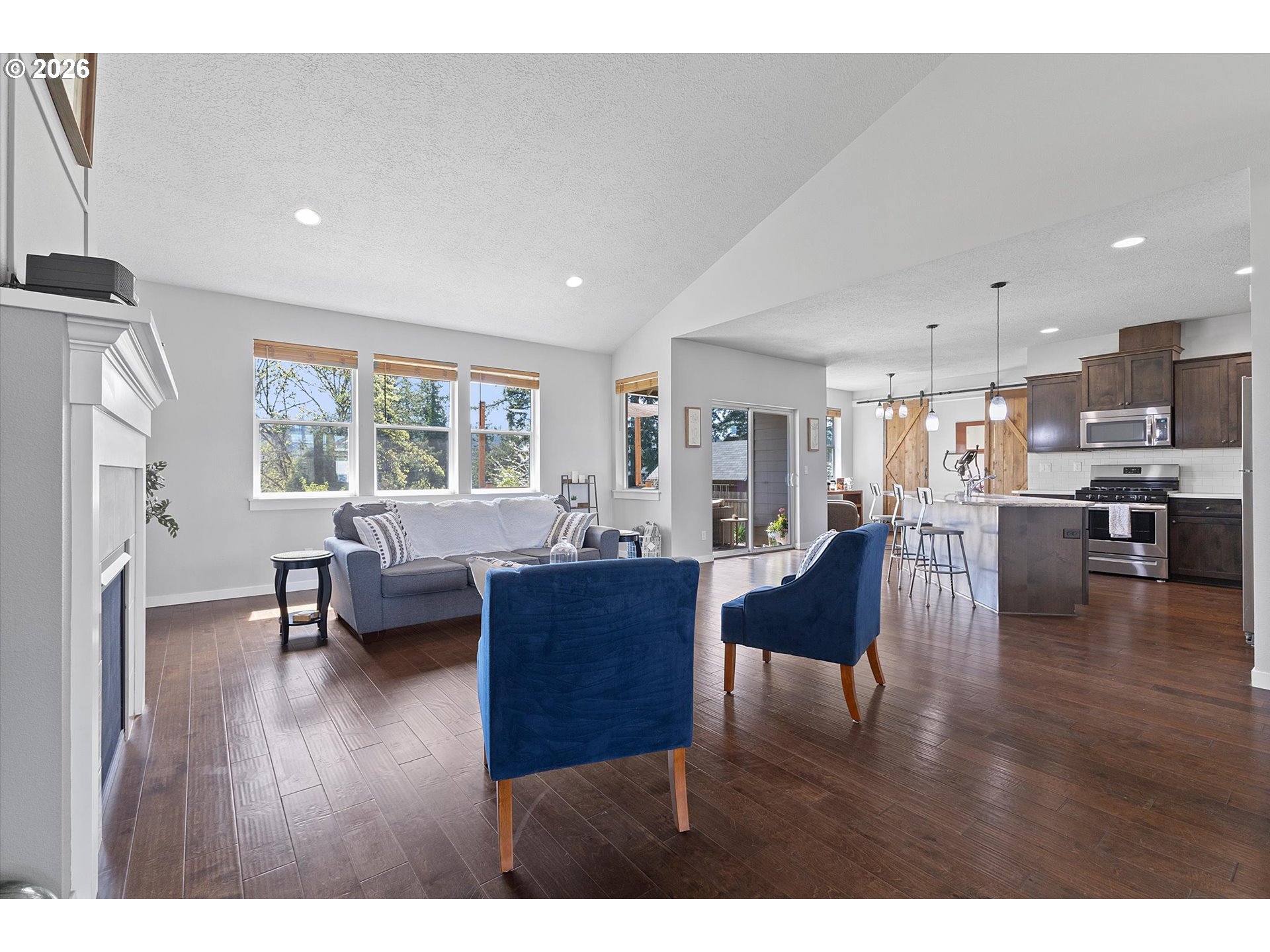 - OPEN SATURDAY AND SUNDAY 12:00-2:00. Welcome to the established neighborhood of Cazadero Heights. Here you will find mature landscaping, large lots and a park that newer neighborhoods may not offer. This is a unique floor plan, not the standard cookie cutter floor plan found in typical new construction. No HOA in this community gives you more buying power! All within walking distance of downtown Estacada. A welcoming riverside community at the gateway to the Mt Hood National Forest. As you step into the 2,062 Square Feet of open one level living, you will be amazed at the view from the Great Room and Kitchen of tall trees, wildlife, and beautiful skyline. Open and Vaulted Great Room opens to Kitchen and sitting area all with Engineered Hardwood Floors. Enjoy the Propane Fireplace on cool evenings in the early spring. Pass through the Barn Doors to a Bonus Room with exterior entrance, currently used as flex space and could easily be a 4th Bedroom. Kitchen has solid Quartz countertops, custom cabinets, updated SS appliances, soft close cabinets. With a Formal Dining room, this floorpan offers great space to entertain friends and family. A Primary suite with walk in Shower, dbl vanities and tile floors. Exterior access onto a 2nd deck. Outside, the private back yard is great for entertaining with two decks, a Hot Tub that will stay with the home and Garden Shed. Original owner home,purchased from local builder and has been well maintained.