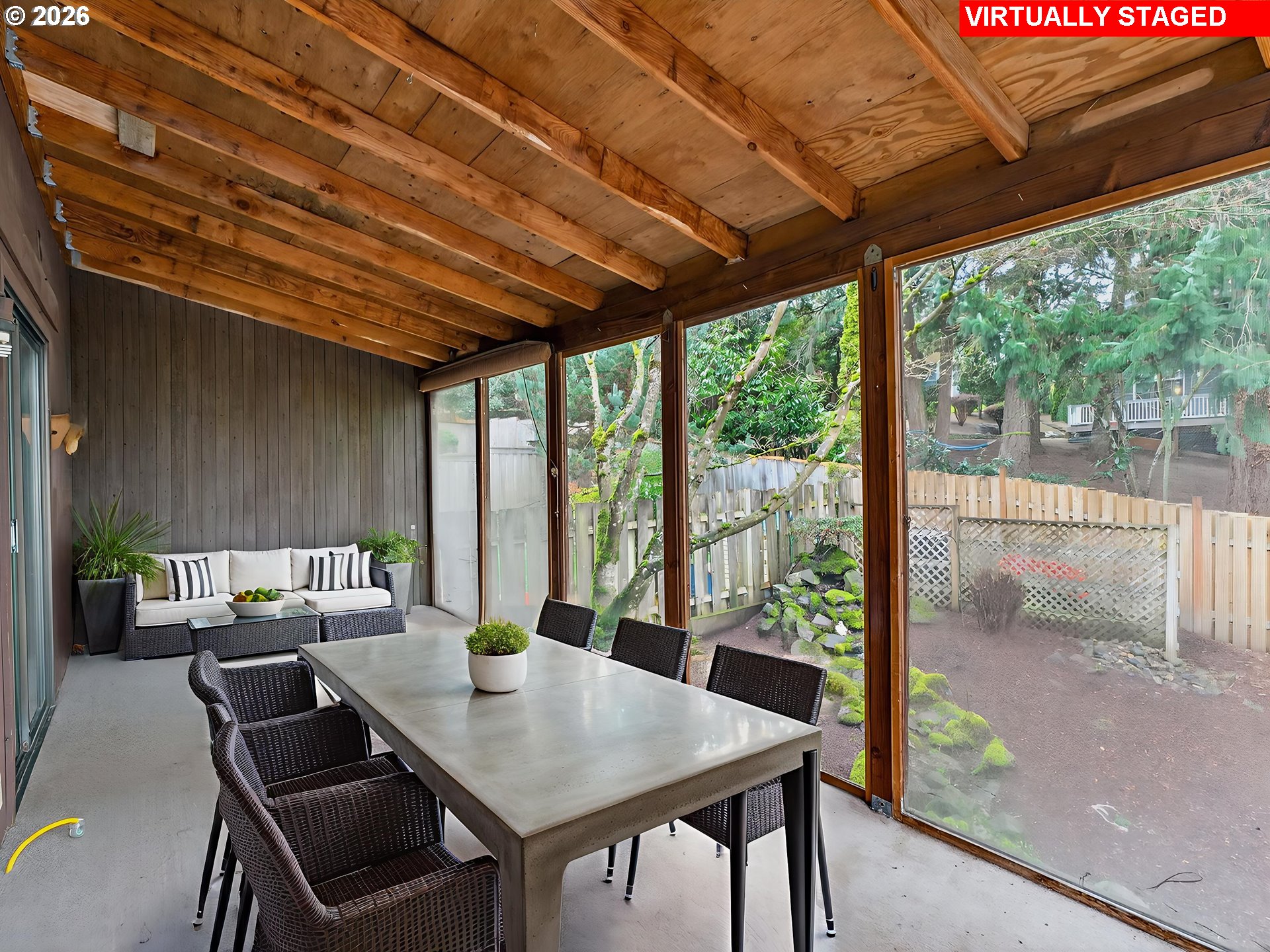 - Incredibly Priced Townhome in Established Beaverton Neighborhood! Located in a welcoming neighborhood in Beaverton, this attached townhome offers space, functionality, and exciting potential in a truly great location. Features 3 beds/2.1 baths, 1,948 Sq Ft, laminate flooring throughout, smart and comfortable layout that’s ready for your personal touch—a cosmetic fixer with solid bones and loads of upside. The open layout makes both daily living and entertaining effortless, with generous windows that bring the outdoors in and thoughtfully designed spaces that feel just right—cozy yet open. The main level includes a family room, a living room with wood burning fireplace and a slider. The kitchen boasts dishwasher, range, oven, fridge, ample cabinets, pantry, an eating bar and a dining space that leads to sun room. The sun room provides additional flexible living space—ideal for relaxing, hobbies or enjoying natural light year-round. Convenient laundry closet with W/D hookups. Upstairs has 3 bedrooms provide calm, comfortable retreats including a private suite offering walk-in-closet and an ensuite bath with dual vanity and jetted tub. The other two bedrooms generously sized with well appointed bathroom. The basement is an added storage space. Updates include Fresh new carpet, a newer electric heat pump for both heating and cooling and a newer electric water heater. Low maintenance, fenced backyard features a water feature and room for garden, perfect for relaxing or entertaining. Attached 2-car garage and over 500 Sq Ft of additional storage or workshop space behind the garage—ideal for hobbies/projects/extra storage. Conveniently located with easy access to parks, schools, major routes, Nike & everyday amenities.