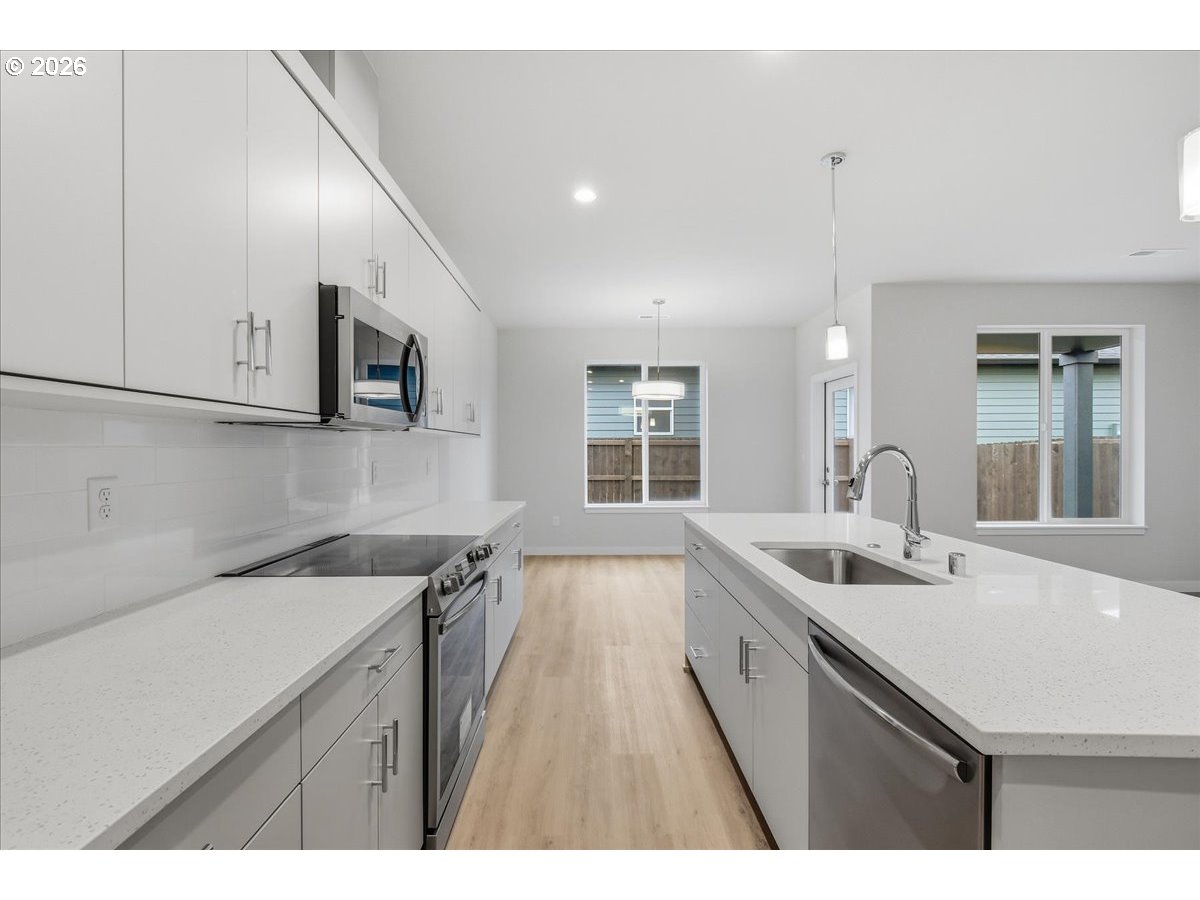 - Brand-new two-story home offering 3 bedrooms, open loft, 2.5 bathrooms, and a large 3 car garage perfect for a variety of lifestyles and family sizes. This home showcases the design, craftsmanship, quality & features you would want & expect in your new home. Custom finished cabinetry, woodwork, lighting & fixtures throughout. Stylish kitchen with island, walk-in pantry, quartz countertops and stainless Frigidaire Gallery Appliances. Spacious great room with modern linear fireplace, opening to large covered outdoor living area ideal for entertaining and BBQs. Primary suite with double sinks and a walk-in closet. Beautifully landscaped yard complete with sprinkler system & full fencing for privacy & convenience. Central A/C included for year-round comfort. Quick access to Padden, 1-205 and shopping.