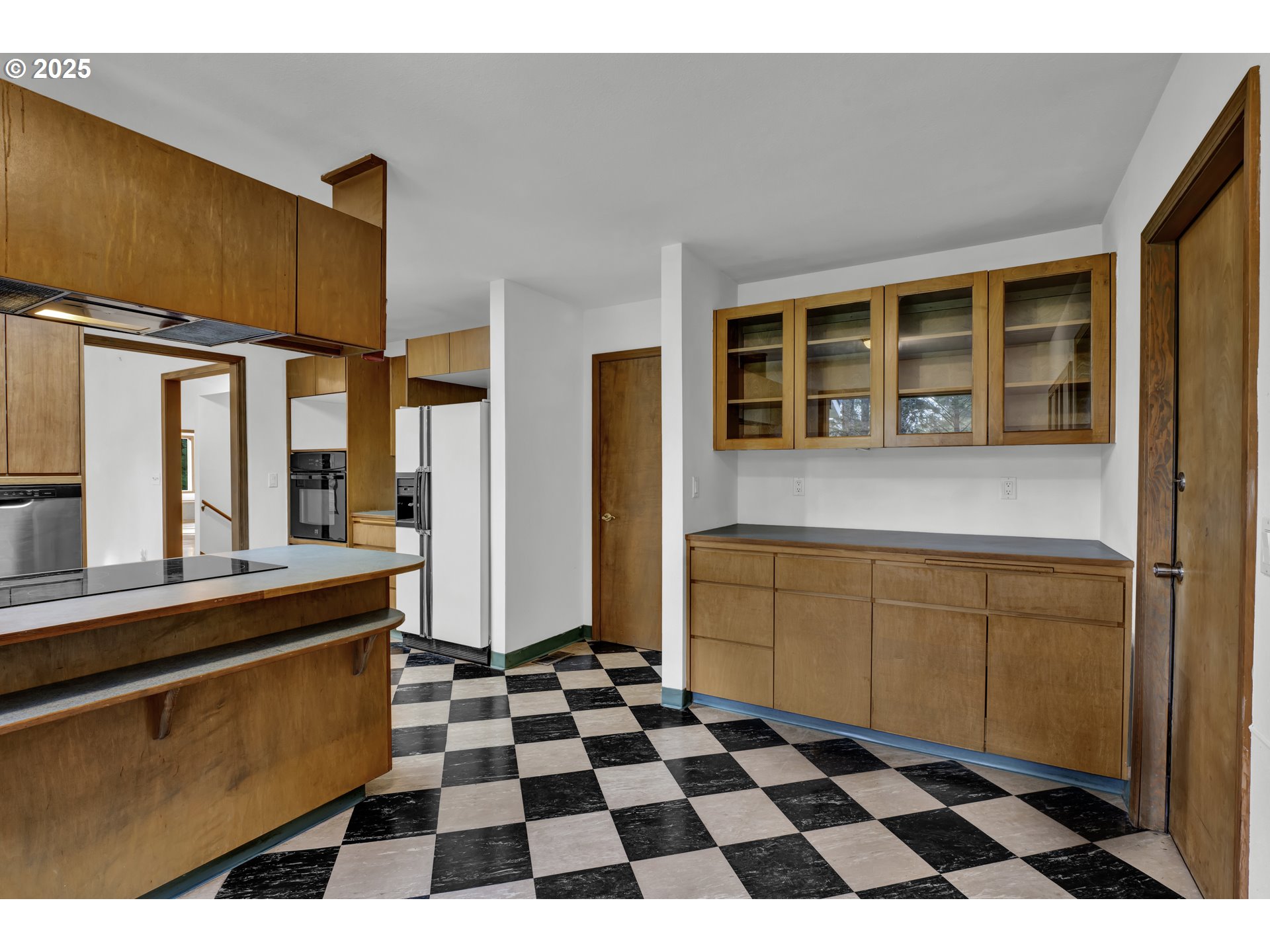 - Tucked away on 2.69 serene acres just minutes from the Oregon Coast, this distinctive Newport property offers privacy, versatility, and space to support a wide range of lifestyles. The 3,000 sq ft, two-story home features 4 bedrooms, 2.1 baths, vaulted ceilings, skylights, 2 fireplaces, and flexible living areas, including a sunroom, library, and family room. The home is thoughtfully designed with full ADA accessibility throughout. A main-floor primary suite includes an ensuite bath with a roll-in shower, while wide hallways and doorways provide easy movement throughout the home. The kitchen is equipped with accessible counters, built-in storage, and appliances. An elevator connects the main level to the lower level, where you’ll find the laundry room, additional bedrooms, and potential caregiver quarters with exterior access. Also on the lower level is a full wet room featuring a jetted spa with a ceiling-mounted lift for ease of use. Outdoor living is equally well considered, with a wood deck, multiple outdoor sitting areas, two dog runs with access to the home and garage (one with a heated floor), an outdoor shower, and a bathroom located off the partly heated garage. Beyond the house, the property truly shines with a 4,320 sq ft workshop on its own septic system, complete with a loft, and 2 bathrooms. Both 220V and 110V power support hobbies, creative pursuits, or business use. The open upper level is filled with natural light from multiple skylights and vinyl double-pane windows. An attached 500 sq ft greenhouse supports year-round gardening, complemented by raised beds and several established fruit trees.RV and boat parking, along with a second garage, complete this exceptionally flexible property. Peaceful and secluded, with on-property walking trails and a creek, all located less than a quarter mile from the ocean, this is a rare opportunity to own acreage, functionality, and coastal proximity that combine to make one remarkable offering.