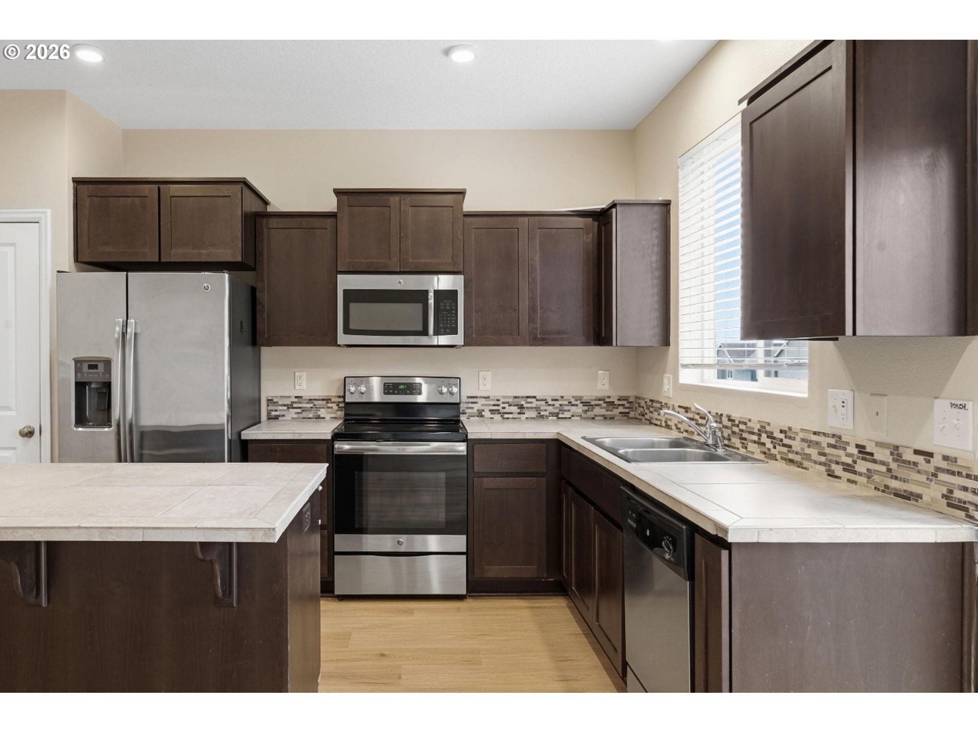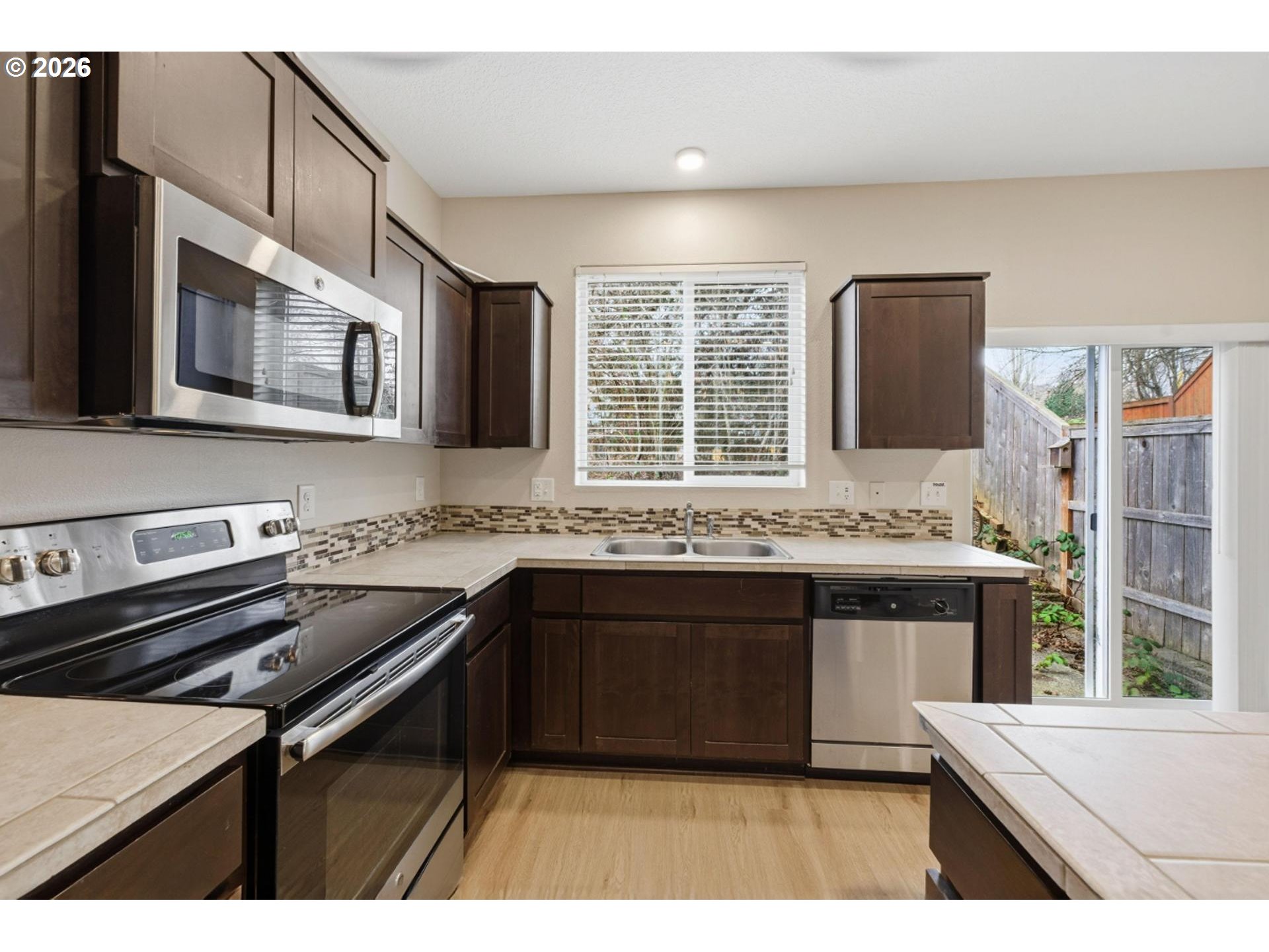 - Charming craftsman, end-unit townhome, nestled in the highly sought-after Morningside community in Happy Valley. Amazing Mount Hood view from the front door and the primary bedroom on a clear day. This 3 bedroom, 2.5 bath features open great room, dining and kitchen leading to fenced backyard/patio & easy side gate entrance. Gas fireplace, new LVP flooring on main level, eat-in island and tile countertops. Upper level has spacious primary suite with walk in closet and new wall-to-wall carpeting! Two mini splits provide heat and A/C for both levels. Upper level laundry has washer and dryer, with Energy Star tankless hot water heater. Move in ready with all appliances included. New flooring and interior paint throughout the house. Enjoy outdoor gatherings on the patio and the nearby walking path to the esteemed New Seasons Market, shops, and delectable dining options. Front yard is maintained by HOA and has sprinklers. No rental restrictions. Great for investment or owner occupied.