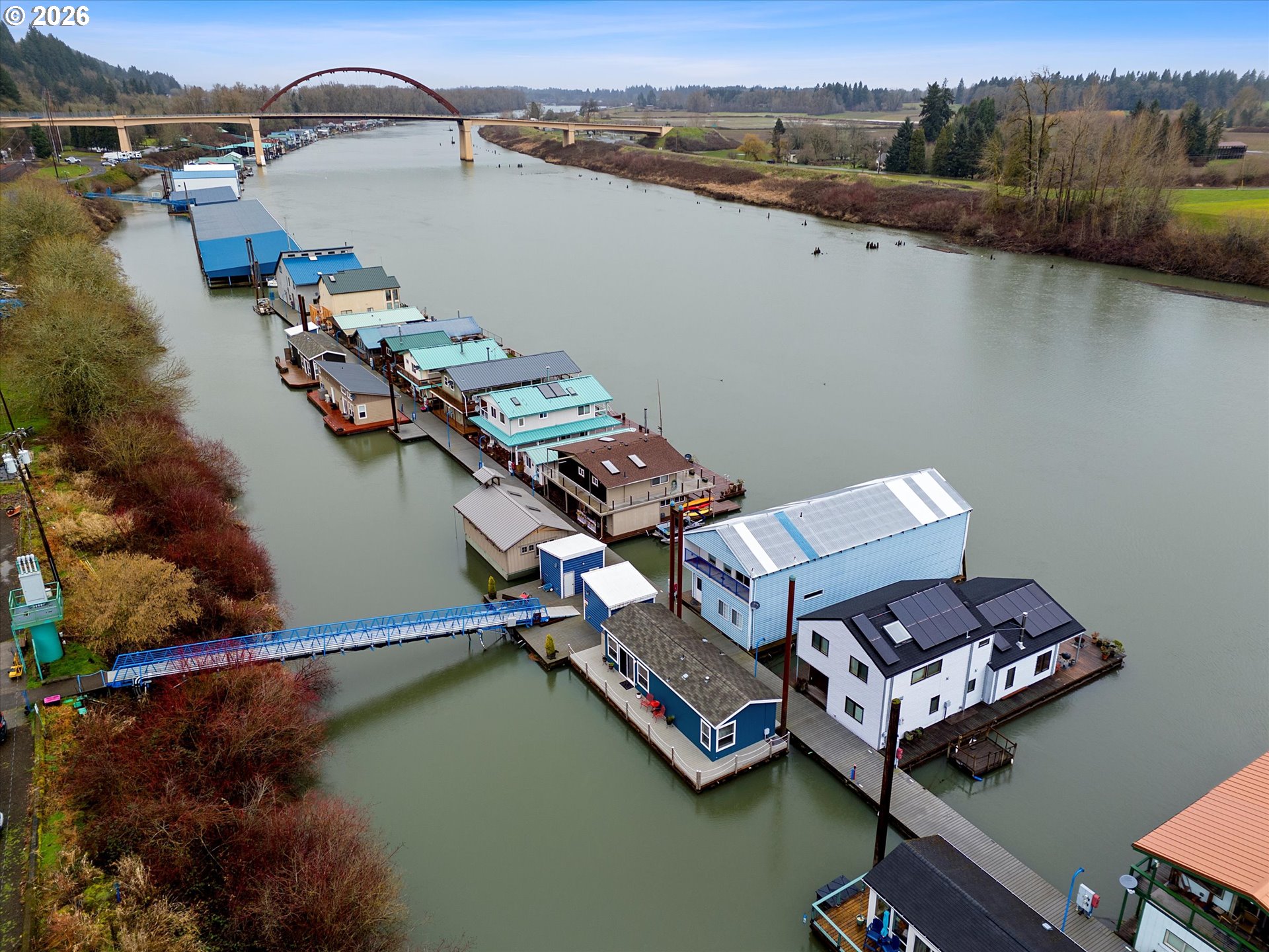 - Wake up to the gentle rhythm of the Multnomah Channel and end your day with glowing river sunsets. This well-maintained floating home offers a rare opportunity to embrace authentic waterfront living — where mornings begin with coffee on your private deck and evenings are spent watching herons, eagles, and passing boats drift by. Inside, generous windows create a light-filled great room that feels open and connected to the water. The efficient 1-bedroom layout lives comfortably, with seamless indoor-outdoor flow for easy entertaining or peaceful solitude.Improvements include a ductless mini-split for year-round comfort and updated cork flooring for warmth and durability. The log and stringer float was recently inspected, earning a rating of 4, offering added peace of mind. Moorage includes water, sewer, and trash — making this a simple, low-maintenance way to enjoy life on the river just minutes from St. Johns and NW Portland. Your every day escape is waiting!