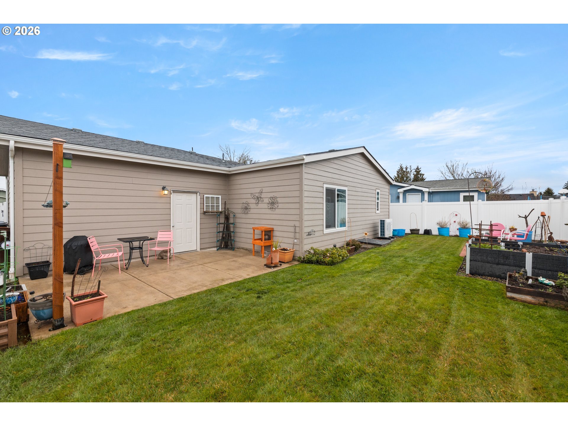 - Offers due by Monday 2/23 2pm. Open House Sun 2/22 1-3! Rare opportunity to own both the home and the land in the sought-after Toliver Estates! Tucked away on a quiet cul-de-sac, this immaculate 1,500 sq ft 3 bedroom 2 bathroom one level manufactured home built in 2019 offers the perfect blend of comfort and affordability. Step inside to an airy open floor plan featuring high coffered ceilings, elegant recessed lighting and large windows that bathe every room in natural light. The heart of the home is a spacious kitchen featuring an eating bar, pantry, stainless steel appliances and sleek laminate flooring that flows throughout the dining room, hallway, laundry & bathrooms. Enjoy the large living room with ceiling fan. Retreat to the primary suite, complete with a walk-in closet and a large bathroom featuring dual sinks and a walk-in shower. The brand new heat pump provides ultra-quiet heating and cooling. Outside, enjoy a covered front porch where you can enjoy your morning coffee and a fully fenced, easy-care backyard with garden beds and two patios—perfect for entertaining. Includes a spacious 2-car attached garage. Ideal for those seeking stability and low-maintenance living. No space rent means more money in your pocket every month! Low HOA keeps this neighborhood clean & friendly. Conveniently located just minutes from downtown Molalla's shops and dining, local parks, hiking & biking. Move-in ready and waiting for you! Schedule your tour today & make this home yours!