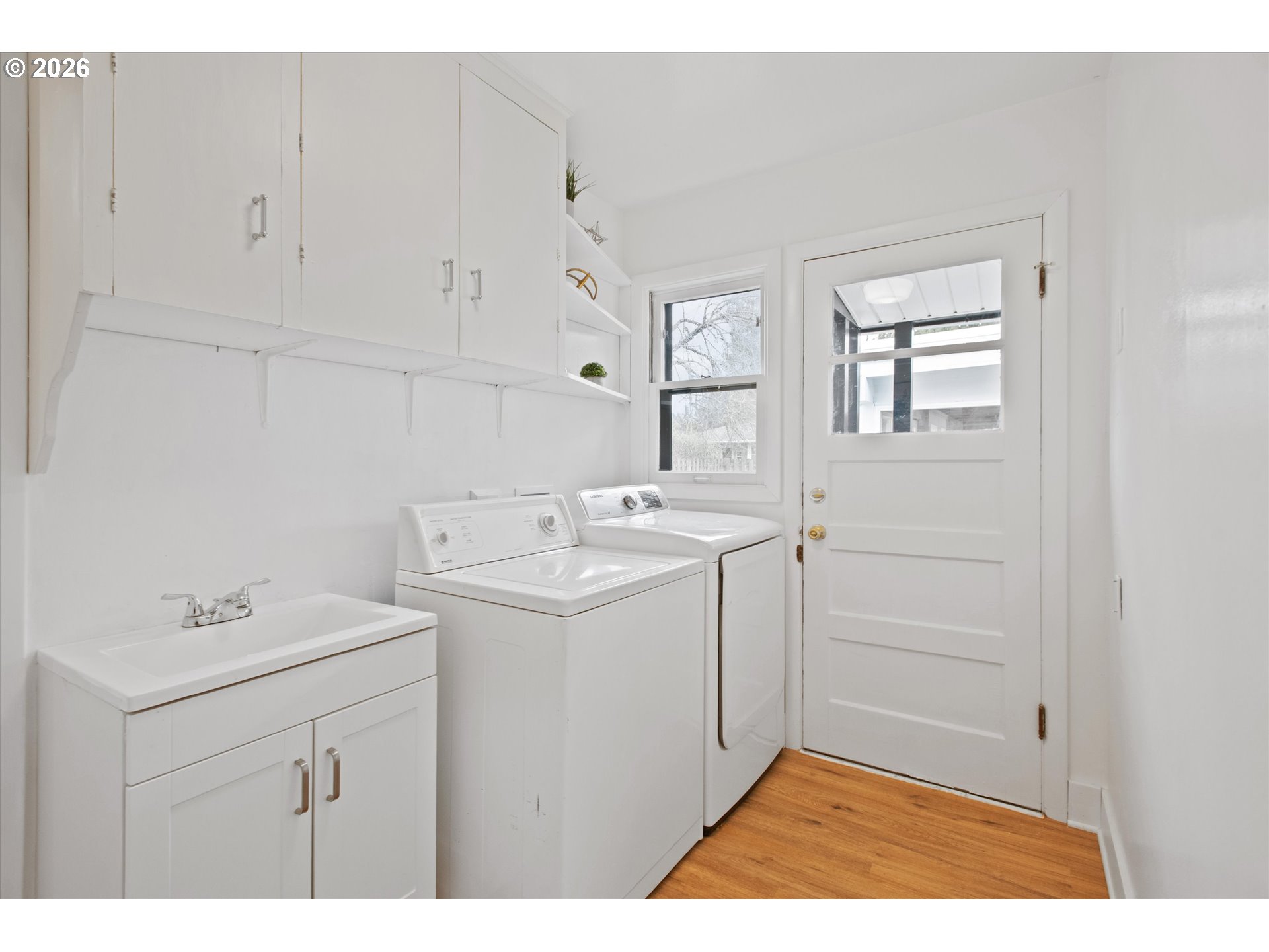 - Multiple Offers Received. Offer Deadline Monday 2/23, 10am. Welcome to this adorable, refreshed one-level home full of classic Portland charm and thoughtful updates throughout. Move right in and enjoy brand new vinyl plank flooring that flows seamlessly through the entire home, creating a clean, modern feel while maintaining its cozy character. The freshly painted interior adds brightness and warmth to every room.This inviting 2-bedroom, 1-bath home offers comfortable, easy living all on one level. The kitchen features a brand new stove, and the washer and dryer are included—making this home truly move-in ready. New mini-split systems provide efficient heating and cooling year-round for personalized comfort in every season.Step outside to a fully fenced lot with ample space for gardening, entertaining, pets, or simply relaxing outdoors. Whether you envision raised garden beds, a play area, or summer gatherings, this yard offers flexibility and opportunity.A standout feature is the detached 320 sq ft studio with all new windows—an incredibly versatile space that could serve as a sunroom, home office, workout area, creative studio, guest overflow, or additional storage. The possibilities are endless.You’ll also appreciate the detached oversized one-car garage, plus convenient RV parking for extra vehicles, toys, or recreational gear.Located in the desirable Roseway neighborhood, just blocks from Glenhaven City Park, Roseway Parkway, and Hancock Park, this home offers easy access to neighborhood green spaces and outdoor recreation. It also feeds to the recently renovated Leodis V. McDaniel High School.This charming home blends modern updates with timeless character, offering comfort, flexibility, and functionality in one delightful package. [Home Energy Score = 9. HES Report at https://rpt.greenbuildingregistry.com/hes/OR10191807]