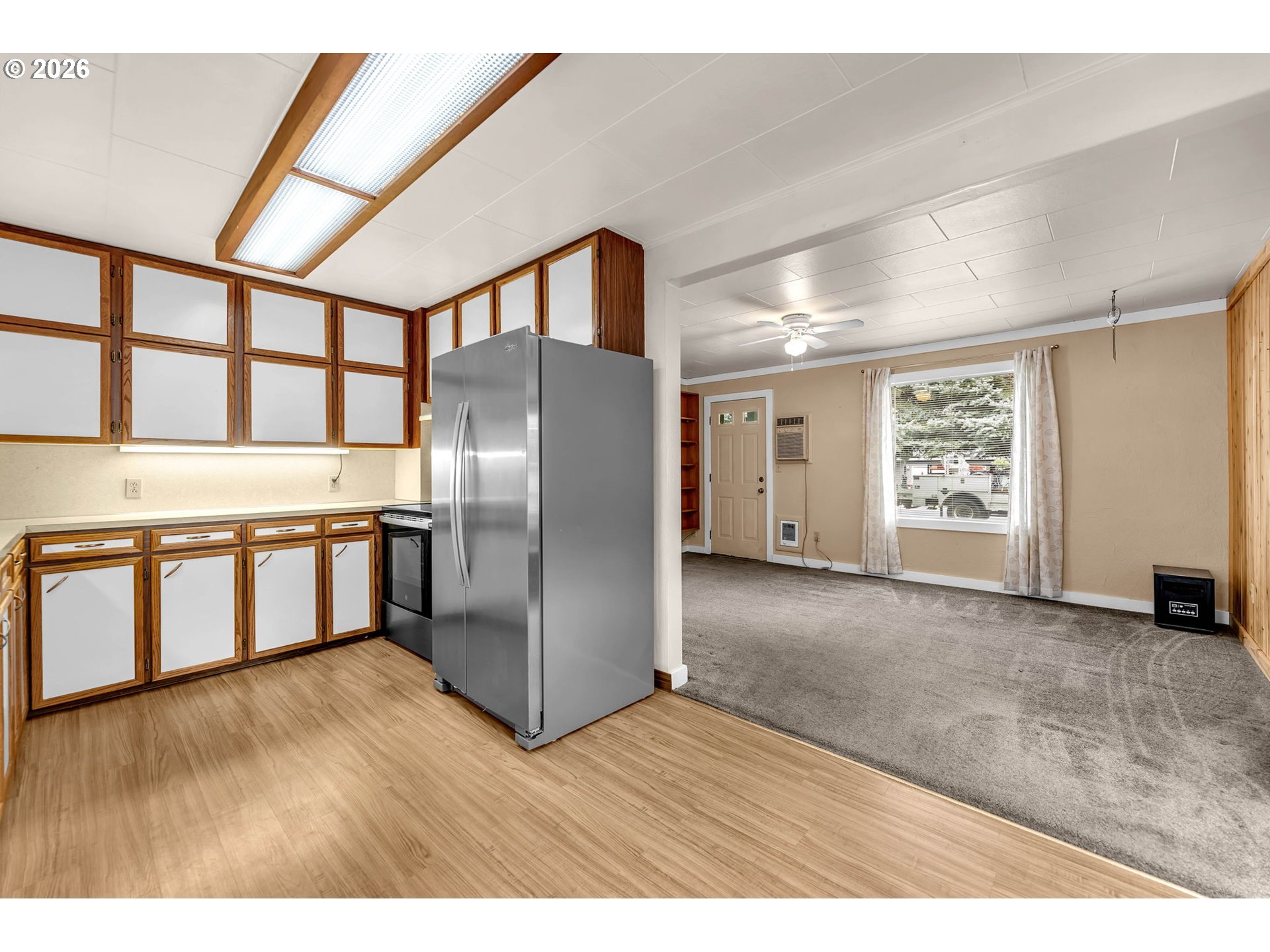 - Built in 1938 and brimming with potential, this adorable cottage sits on a sprawling .28-acre corner lot where the possibilities truly outshine the footprint. A project for someone with vision, this home showcases charming period details including knotty pine wall paneling and a graceful arched doorway — a nod to its history. The kitchen features a bay window, built-ins, and an abundance of full-height cabinetry, with the freestanding refrigerator and range included. The spacious primary bedroom offers a walk-in closet and a bathroom complete with a dual-flush toilet and walk-in shower. An additional large office/utility room provides flexible workspace and extra built-in storage. A generous vaulted addition expands the livable space with abundant windows, a cozy electric fireplace, and exterior entry — ideal for guest quarters, a home gym, creative studio, or private office. Outside is where this property truly shines: multiple raised garden beds, a greenhouse for year-round growing, a huge covered patio for all-season enjoyment, a darling little red barn shed, and plenty of room to play, entertain, or relax. The impressive outbuilding/shop includes electricity, extensive lighting, tons of built-ins for storage, and large doors for easy access — ready for projects, storage, hobbies, or your next big idea. No HOA and RV parking add even more flexibility. With room to expand, garden, or reimagine, this is an opportunity to create something truly special. Schedule your showing today!
