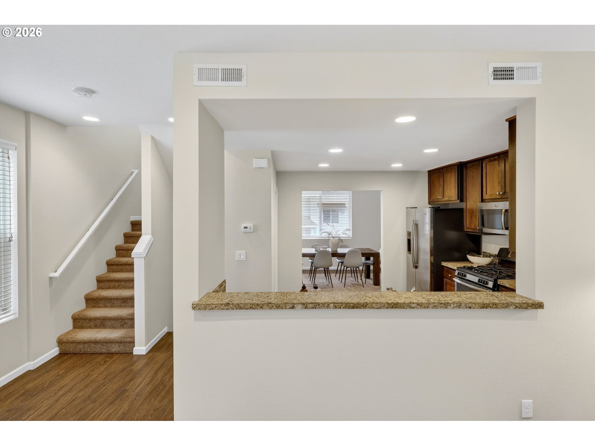 - *OPEN SAT & SUN 2/21 & 2/22 FROM 11 AM - 1 PM* Exceptional Tanasbourne townhome with a welcoming covered front porch and 2 spacious primary suites, desirably located near Whole Foods, Tanasbourne shopping & dining, Nike, Intel, and magnificent Magnolia Park. The bright, airy great room features a cozy slate stone gas fireplace and engineered hardwood floors that extend throughout the main. Centerpiece kitchen has granite counters, tile backsplash, SS/gas appliances, and pantry. Entertain effortlessly in the light-filled formal dining room off the kitchen (could also be a fantastic home office). Upstairs, dual primary suites boast walk-in closets with built-in shelves, ensuite bathrooms with tile floors and tile vanities, and one suite with vaulted ceilings. Convenient laundry closet located in the hall. Lower level includes a full bedroom, half bath, and access to the finished 2-car tandem garage. Step outside to a fully fenced private patio with a planting area—perfect for relaxing or entertaining. HOA includes exterior maintenance and front yard landscaping (new exterior paint completed in July 2025). Off-street (3 locations) and on-street parking is available close by, along with wonderful amenities within walking distance. [Home Energy Score = 7. HES Report at https://rpt.greenbuildingregistry.com/hes/OR10244419]