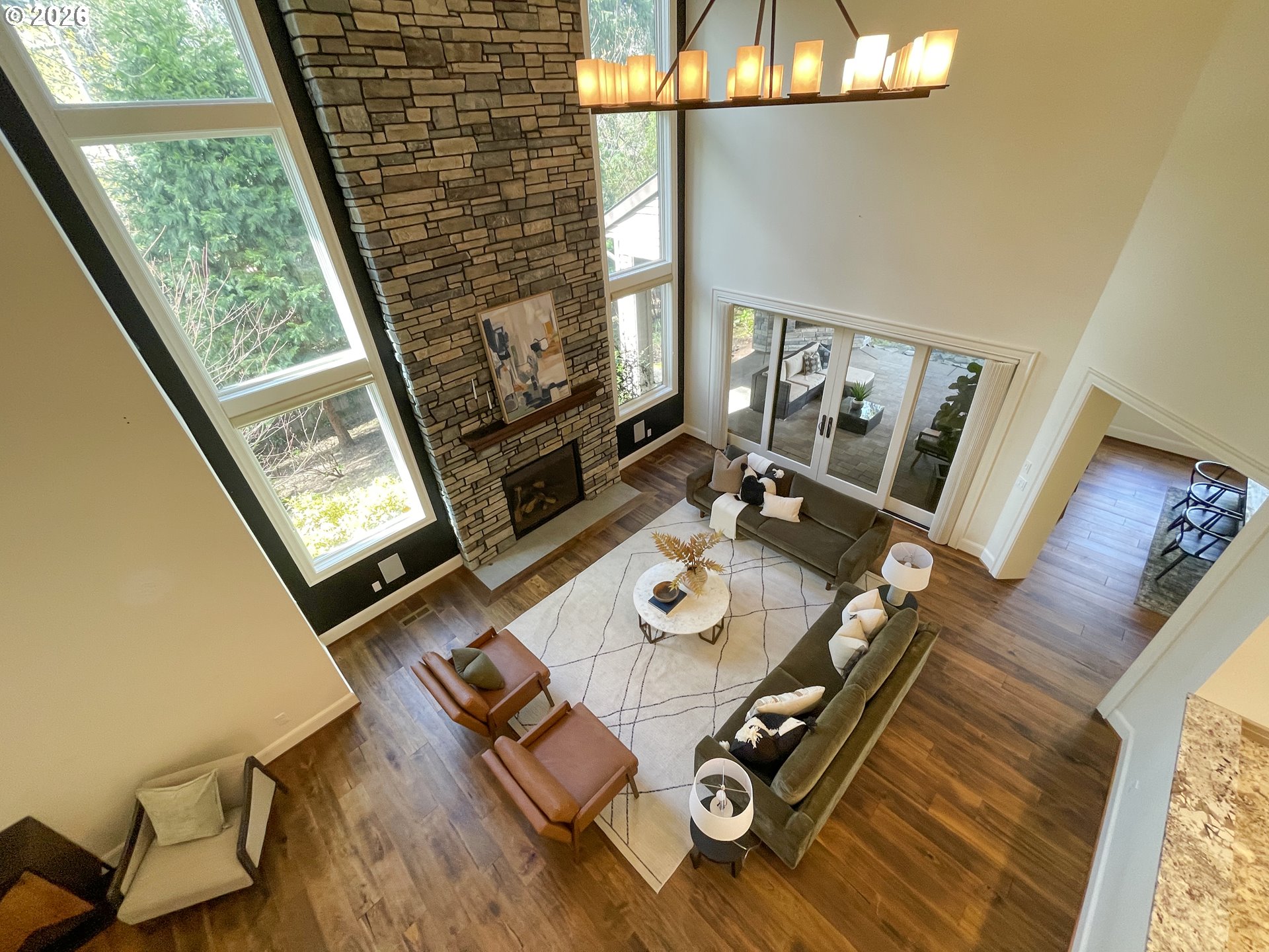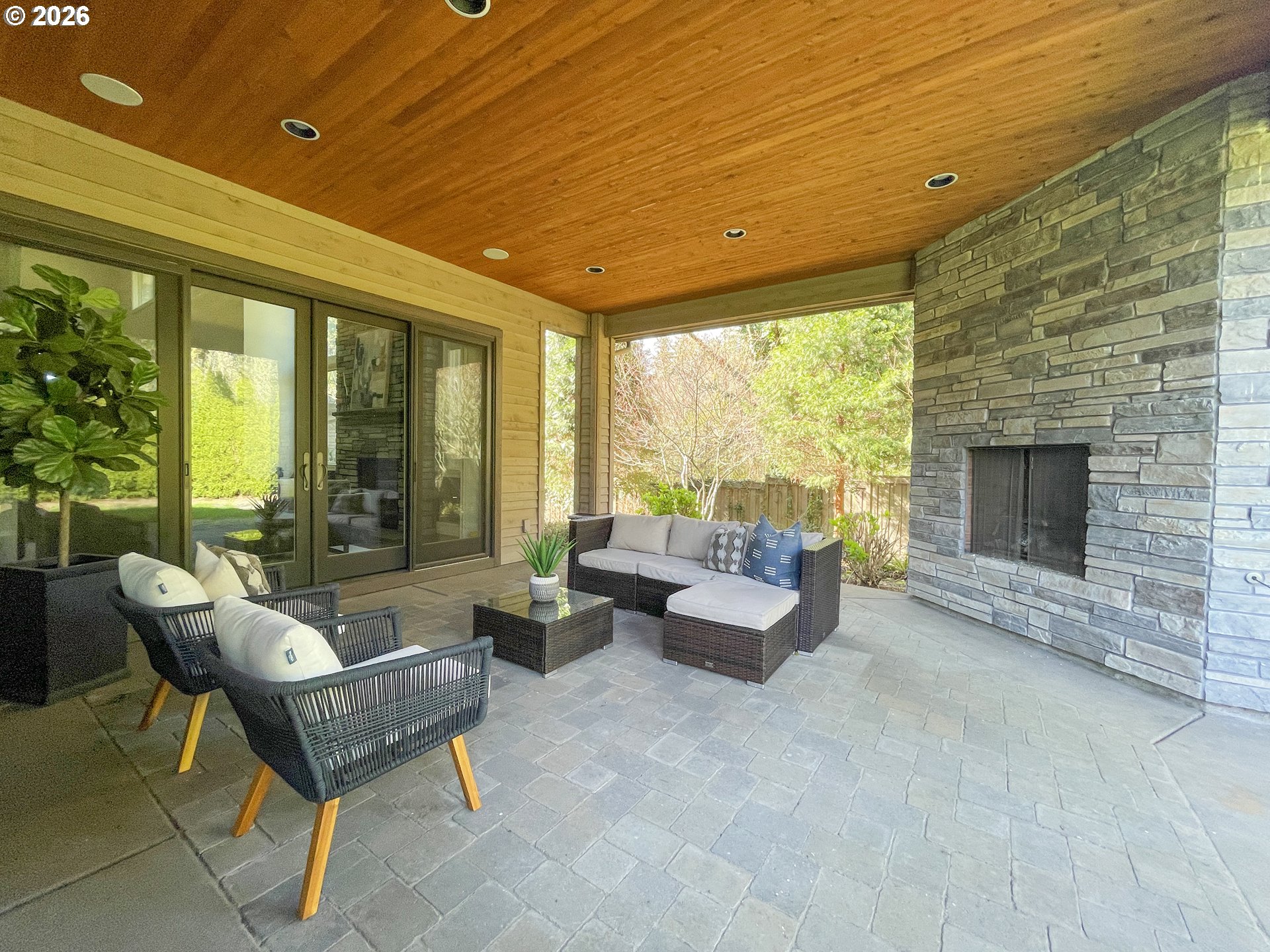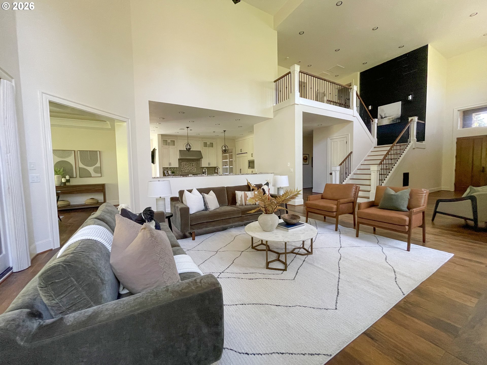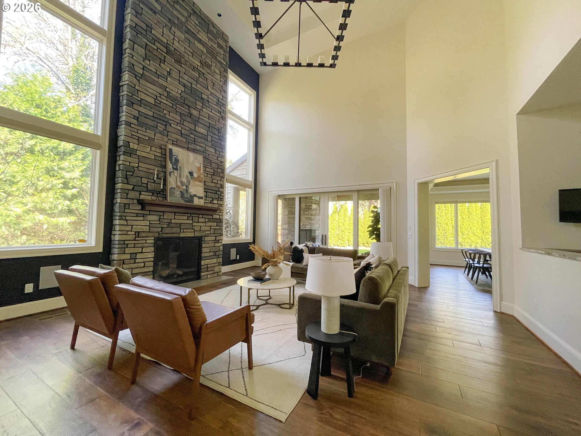 - High-style contemporary design meets unforgettable architecture in this exceptional entertainer’s home. A dramatic two-story great room with soaring walls of windows seamlessly flows into a covered outdoor patio with fireplace, creating the ultimate indoor-outdoor living experience. The expansive layout effortlessly connects the great room, chef’s kitchen complete with abundant workspace and high-end appliances and outdoor living areas, ideal for gatherings.An intimate dining room sets the stage for memorable hosting, while the bonus/theater room with wet bar offers a stylish and versatile retreat. Set on an oversized .64-acre lot, the beautifully landscaped grounds and large private backyard provide both space and serenity.Blending casual elegance with grand design, this home is perfectly suited for entertaining, relaxing, and everyday living. Just moments from Lake Oswego High School. Some photos have been virually enhanced. Please contact your Real Estate agents for more information.