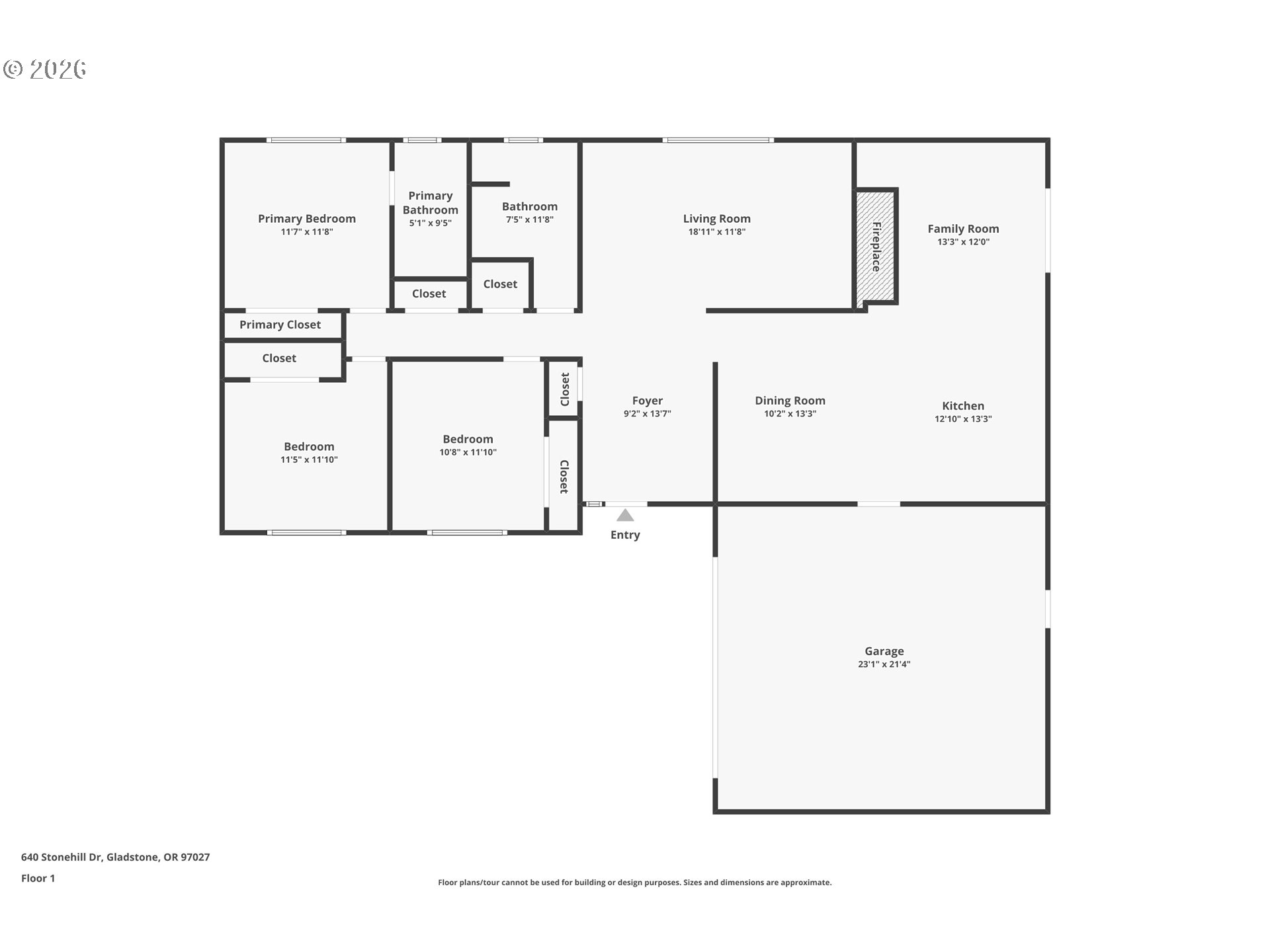 - OPEN HOUSE Sunday 4/12 1 to 3pm. Fabulous one level in desirable Gladstone! A brand-new composition roof was just installed, and new AC unit in 2024. This home has a great layout with a large 19x12 living room and cozy fireplace for entertaining. Around the corner, you can keep the cook company while lounging in the adjacent family room that also has a fireplace and slider leading out to the back yard and deck. The large dining room can handle the whole extended family for the holidays. The front of the house has three generous bedrooms, one with ensuite bath, and a second full hall bathroom. The long driveway can accommodate multiple cars and/or RV parking. The attached double car oversized garage leads right into the kitchen for unloading groceries and has a man door in back for working on the yard. The large back yard will allow your green thumb imagination to go wild. Lots of space for a garden, swimming pool or maybe an Accessory Dwelling Unit (buyer to do their due diligence). So many possibilities!