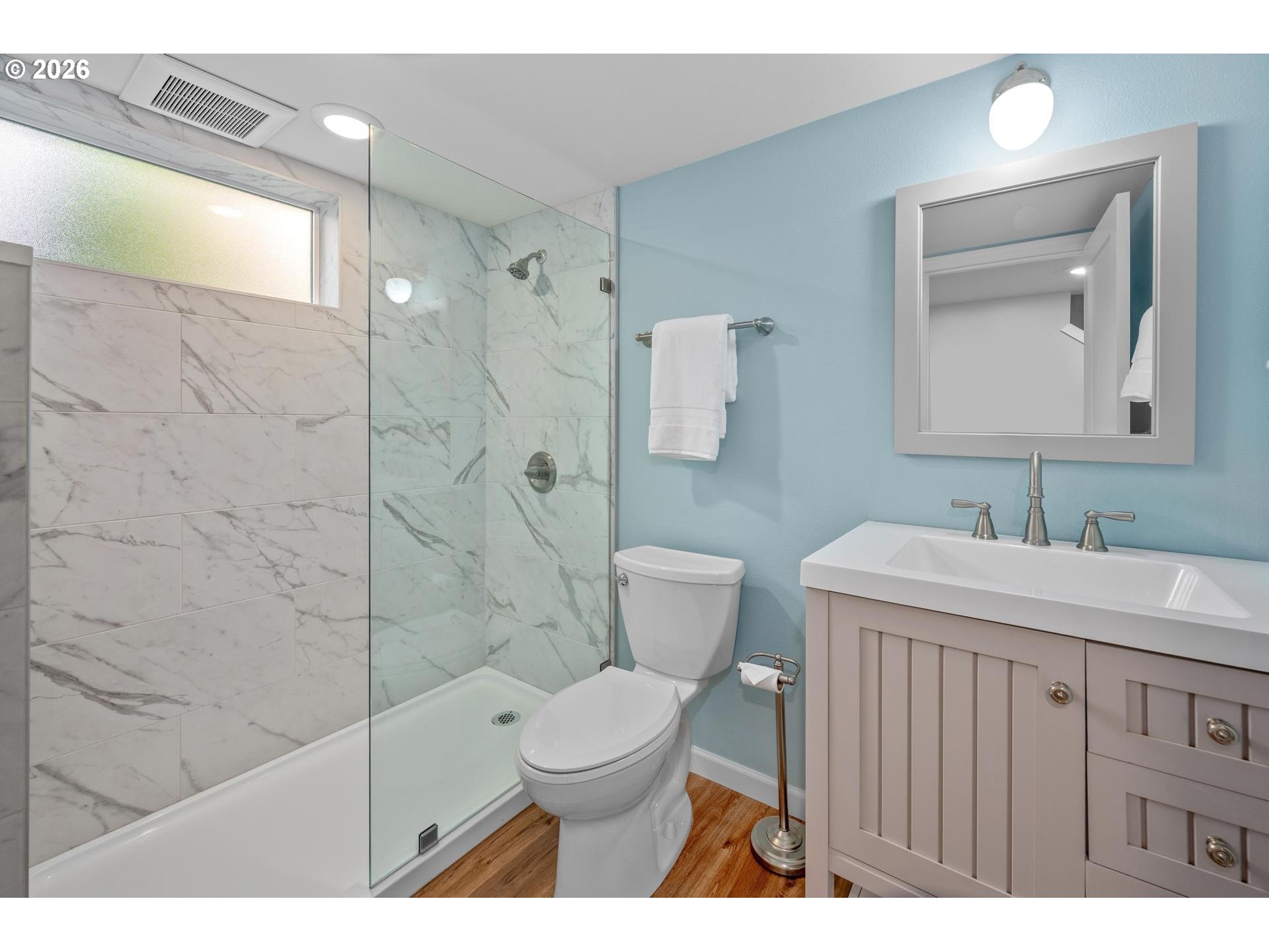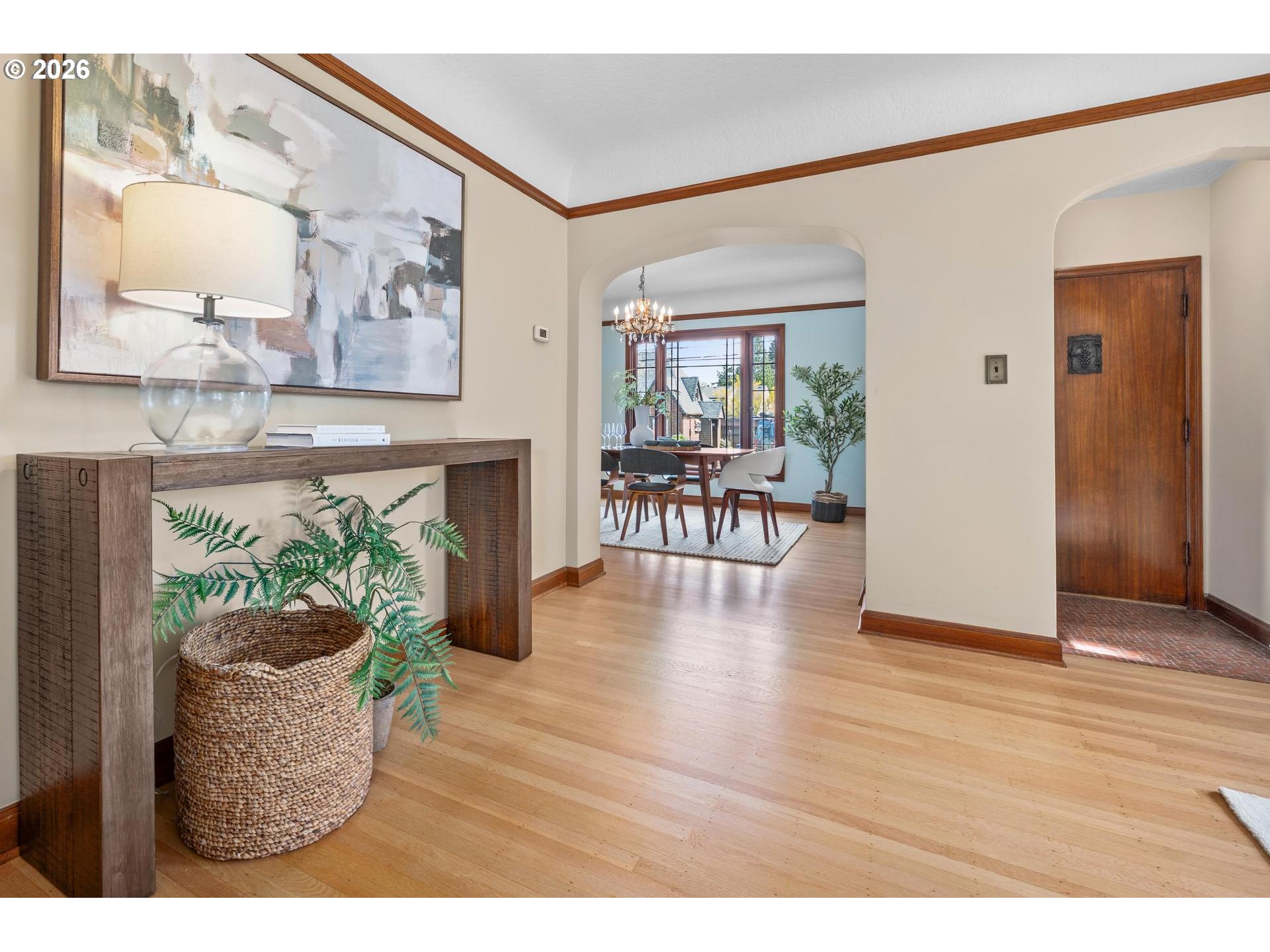 - Welcome home! 1938 English Cottage in coveted Alameda — where timeless character meets a blue-chip NE Portland address. Leaded windows, rich mahogany trim, and gracious formal living and dining rooms speak to a era of true craftsmanship. Newly refinished hardwood floors gleam throughout, while the spacious kitchen — anchored by an eat-at island and stainless appliances — invites everyday living. The flexible upper level offers a full bath and room for two bedrooms; the substantial lower level stuns with soaring ceilings, a generous family room,new full bath & spacious laundry room — the heavy lifting is done. Replumbed, updated electrical, and newer HVAC with AC deliver total peace of mind. Outside: a newer oversized custom garage with owned solar, a private fenced yard, expansive deck, and ample off-street parking. Top-rated Alameda, Beaumont and Grant schools seal the deal. [Home Energy Score = 1. HES Report at https://rpt.greenbuildingregistry.com/hes/OR10245796]