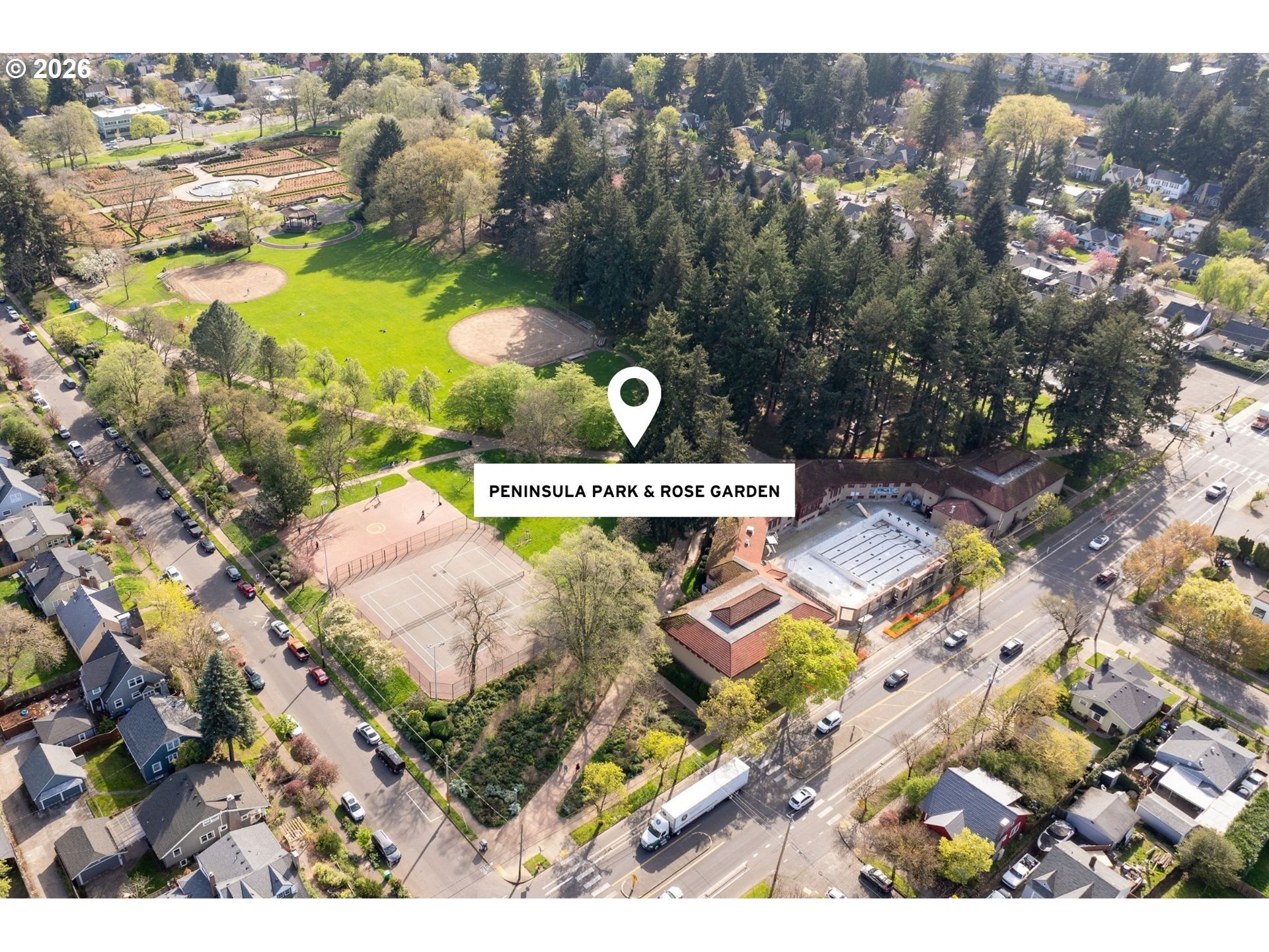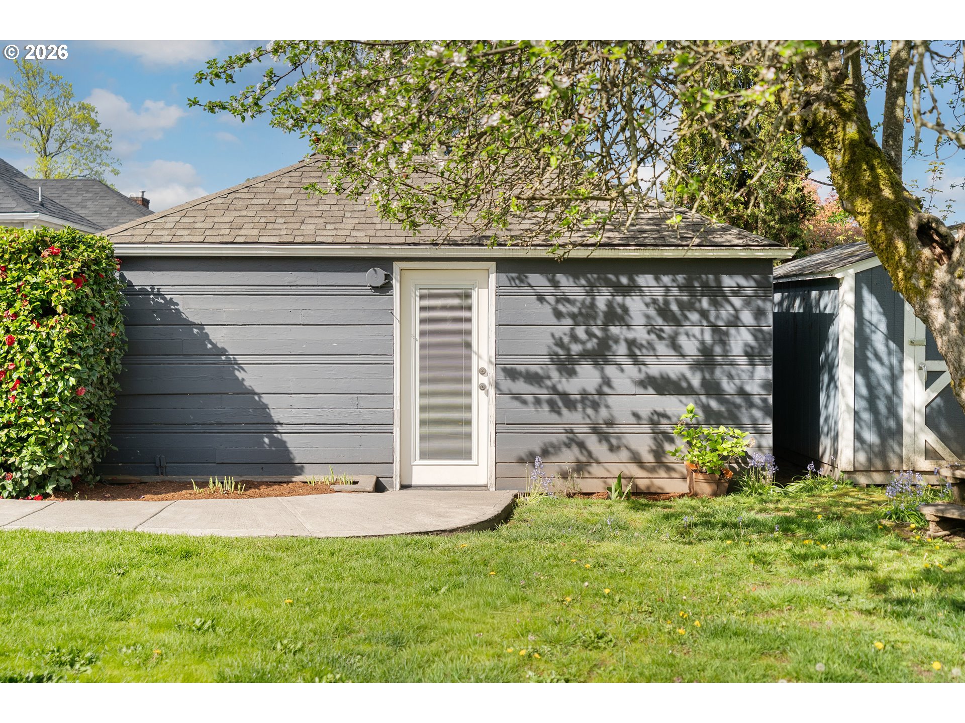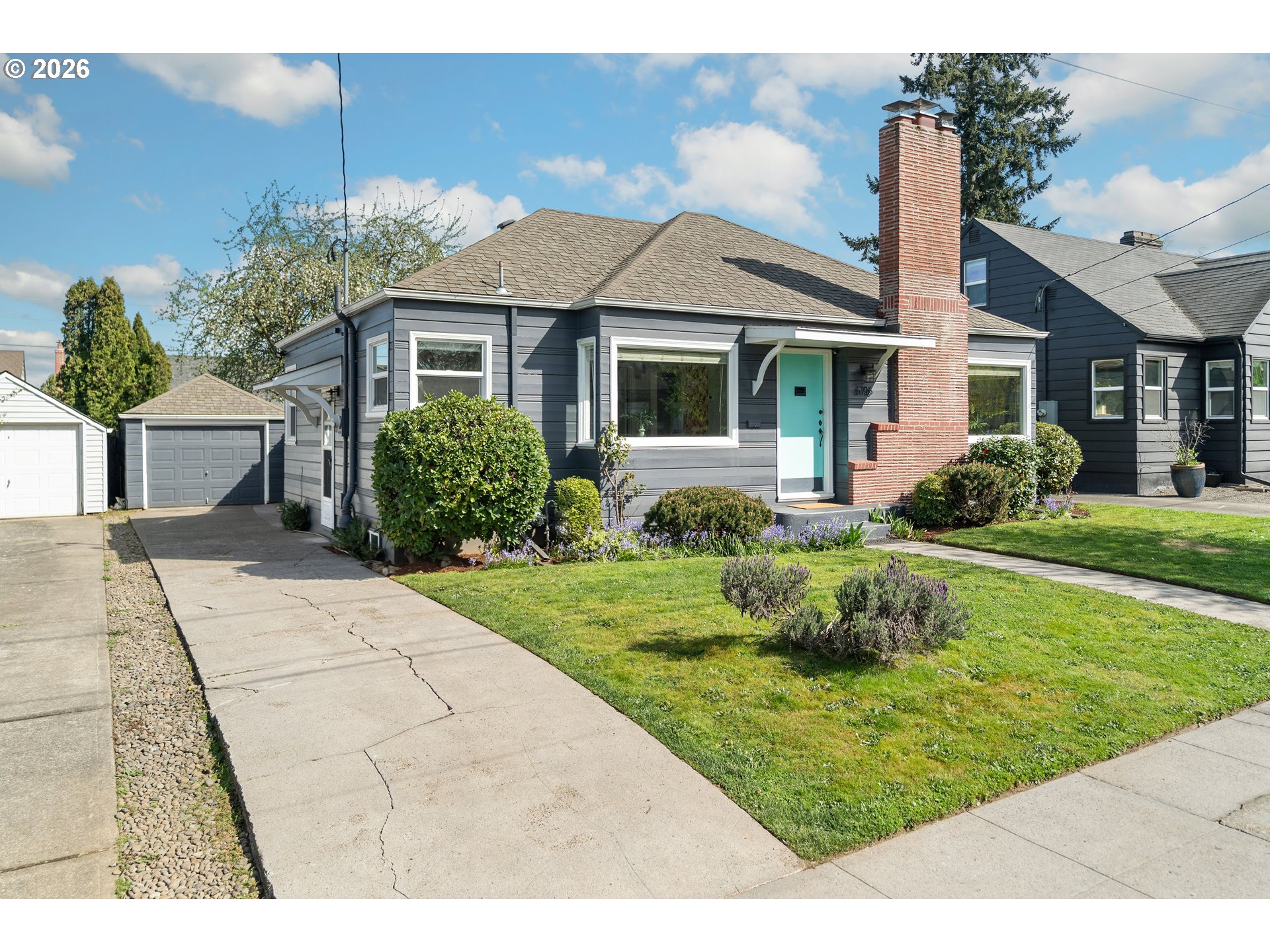 - Tucked along a quiet, tree-lined street, this 1940's Piedmont home carries the quiet confidence of its era with a grounded profile and striking brick chimney. Over time, this home has been thoughtfully refined and adapted creating a practical lifestyle. Inside, hardwood floors run across the main level, bringing continuity to the living spaces. A wood-burning fireplace brings a quiet sense of warmth while natural light moves easily from one space to the next. Two bedrooms anchor the main level—one with its own exterior access for a wonderful flow outdoors. Downstairs offers room to spread out, with an additional living area, bedroom, full bath and laundry. Out back, the covered deck extends the living space year-round outdoor enjoyment and overlooks a fenced yard with lush grass, simple and ready for slow mornings or easy evenings. The detached garage, refreshed in 2020, has been reimagined into a bright, clean-lined space sparking creativity—ideal as a home office or home gym. Piedmont is classic Portland blending neighborhood calm with access to some of city's best dining, coffee, and everyday conveniences. Blocks from Peninsula Park and moments to Mississippi Avenue and Dekum Triangle, this location known for its welcoming, community-conscious feel and dynamic energy. Excellent transit access, walkability, and bike-friendly streets. [Home Energy Score = 5. HES Report at https://rpt.greenbuildingregistry.com/hes/OR10246602]