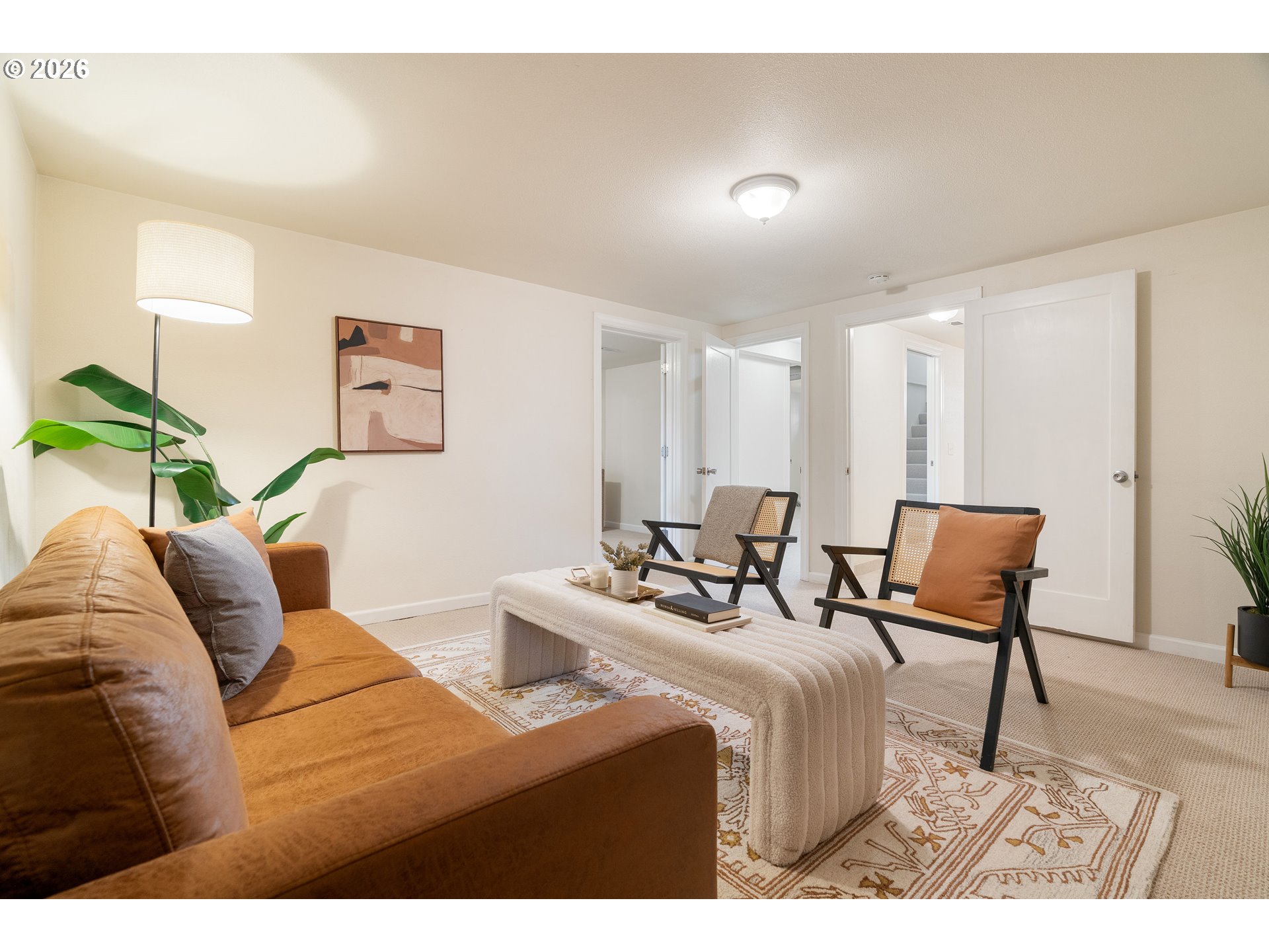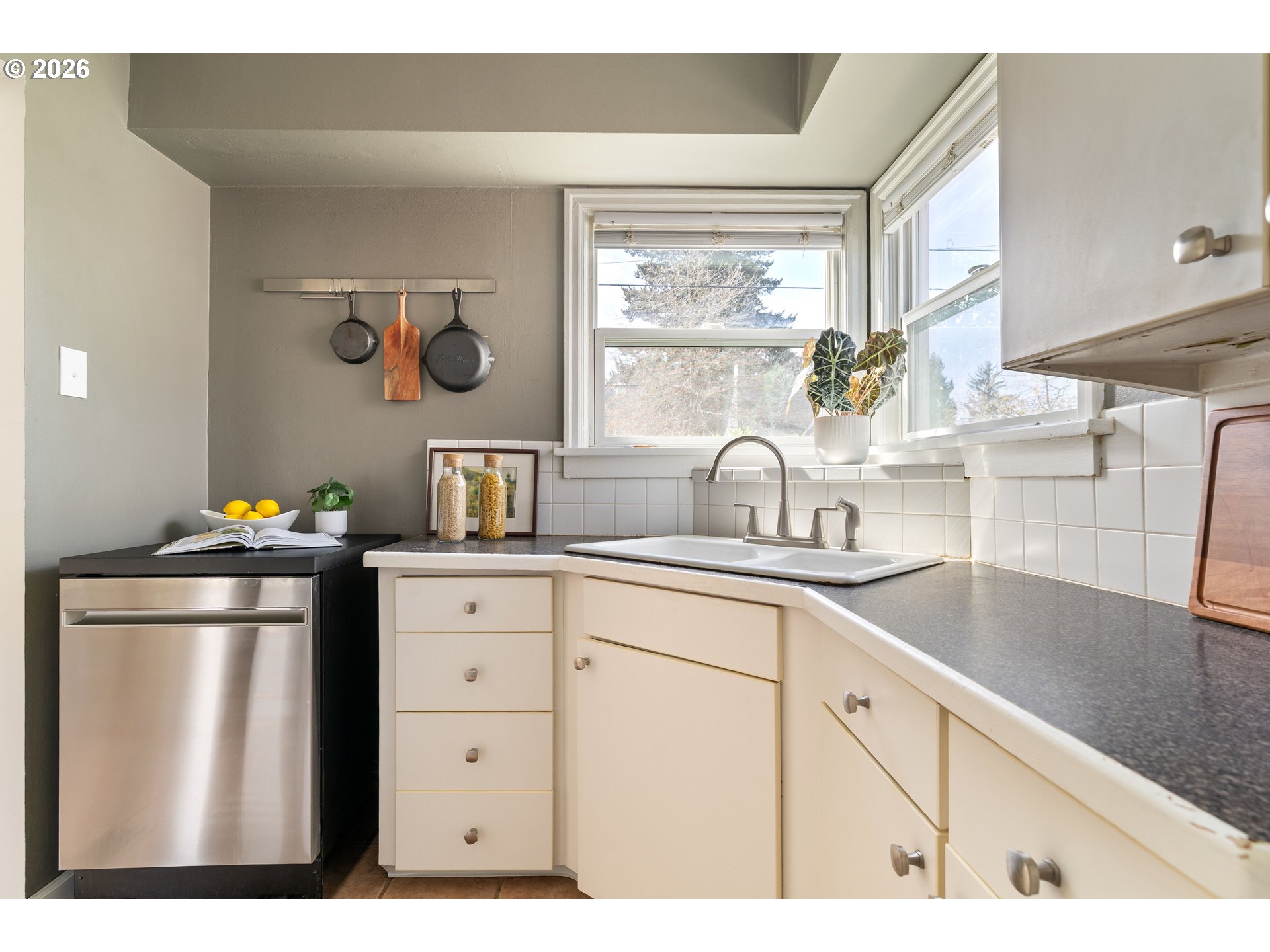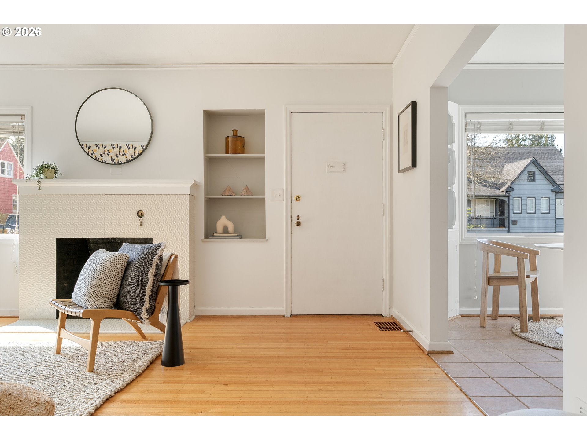 - Tucked along a quiet, tree-lined street, this 1940's Piedmont home carries the quiet confidence of its era with a grounded profile and striking brick chimney. Over time, this home has been thoughtfully refined and adapted creating a practical lifestyle. Inside, hardwood floors run across the main level, bringing continuity to the living spaces. A wood-burning fireplace brings a quiet sense of warmth while natural light moves easily from one space to the next. Two bedrooms anchor the main level—one with its own exterior access for a wonderful flow outdoors. Downstairs offers room to spread out, with an additional living area, bedroom, full bath and laundry. Out back, the covered deck extends the living space year-round outdoor enjoyment and overlooks a fenced yard with lush grass, simple and ready for slow mornings or easy evenings. The detached garage, refreshed in 2020, has been reimagined into a bright, clean-lined space sparking creativity—ideal as a home office or home gym. Piedmont is classic Portland blending neighborhood calm with access to some of city's best dining, coffee, and everyday conveniences. Blocks from Peninsula Park and moments to Mississippi Avenue and Dekum Triangle, this location known for its welcoming, community-conscious feel and dynamic energy. Excellent transit access, walkability, and bike-friendly streets. [Home Energy Score = 5. HES Report at https://rpt.greenbuildingregistry.com/hes/OR10246602]