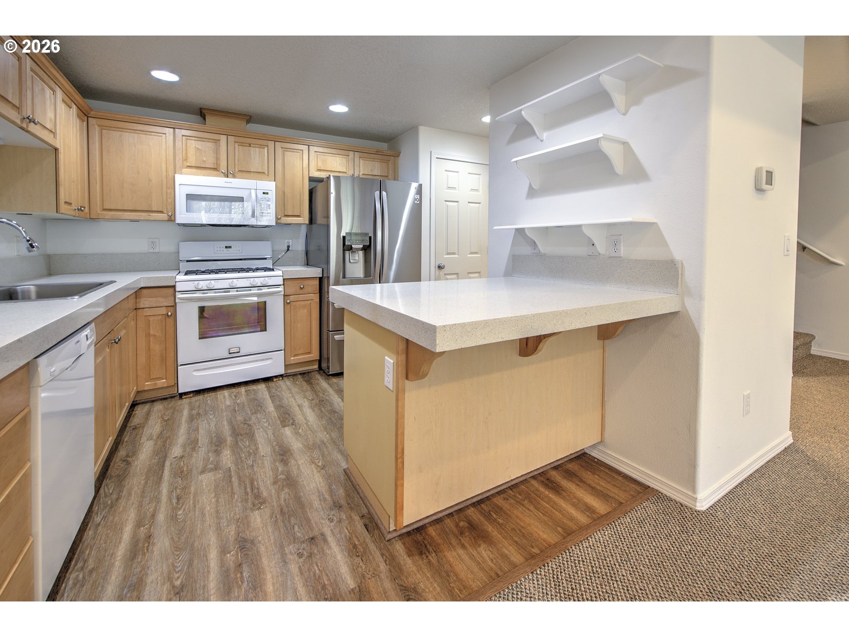 - Spacious and well designed 3 bedroom, 2.1 bath Townhouse offering comfort and privacy, backing to a peaceful green space. The vaulted ceiling living room features a sliding glass door that opens to a private deck. The kitchen includes an eating bar, pantry, gas stove, and a brand new stainless steel refrigerator. The primary bedroom boasts vaulted ceilings, two walk-in California closets, and an en-suite bathroom with double sinks and a walk-in shower. Just off the primary, you’ll find a versatile loft space, perfect for an office, reading area, or private retreat and a laundry room with a new washer & dryer. Downstairs offers a family room and a full bathroom along with two additional bedrooms, each with sliding glass doors providing direct access to the 2nd outdoor deck. All appliances are included, new interior paint, new flooring and Adjustable LED lightbulbs. A fenced side/back yard adds extra privacy and usability. HOA covers common area maintenance, exterior siding, gutter, and roof cleaning.