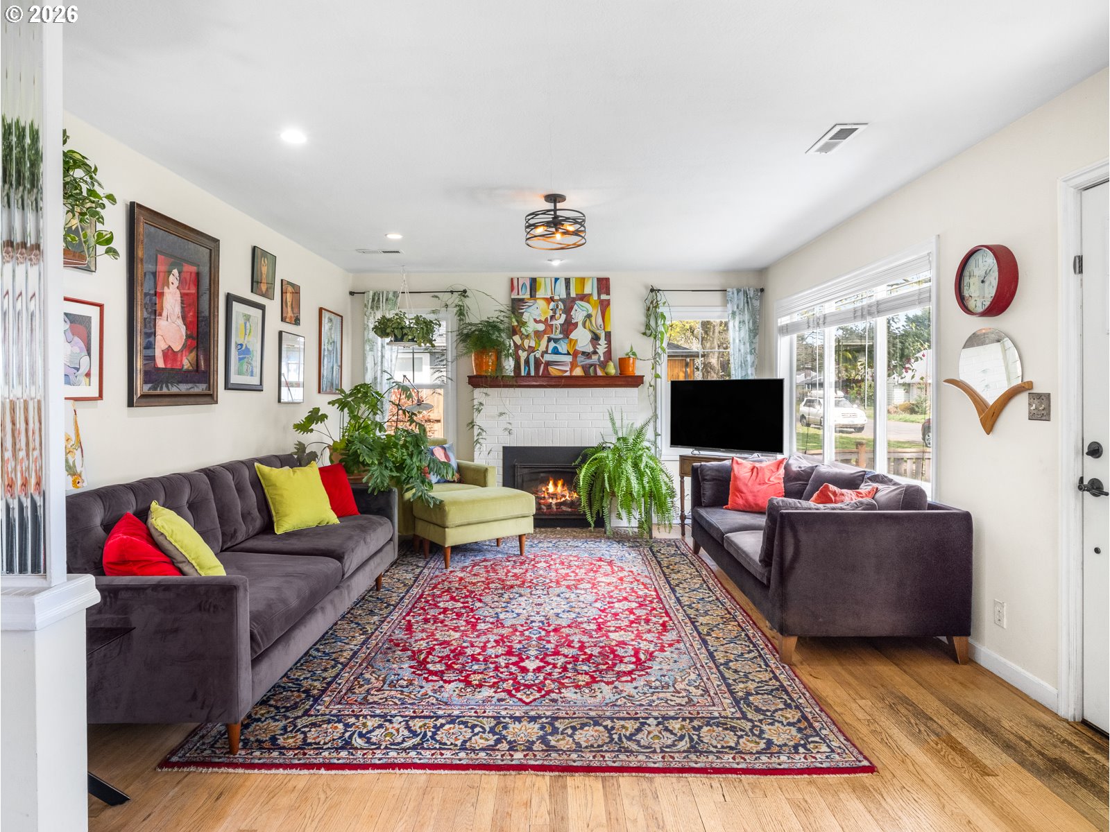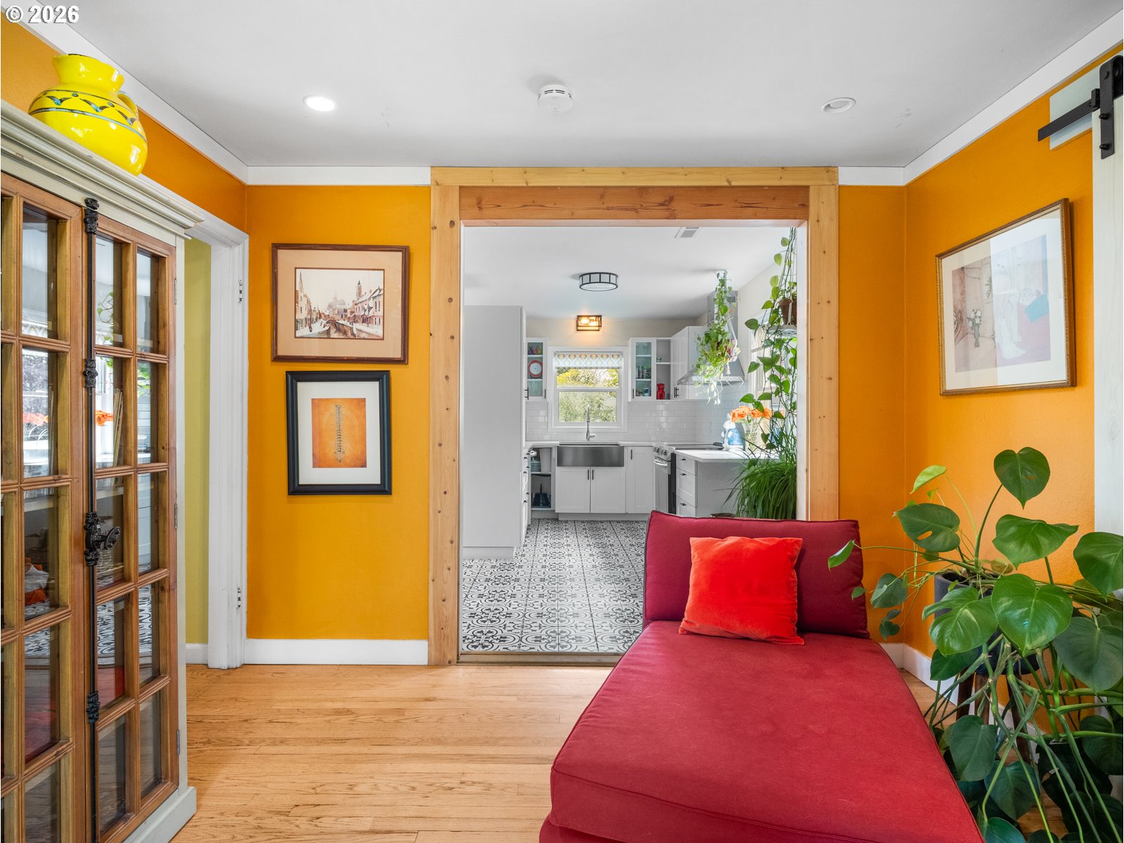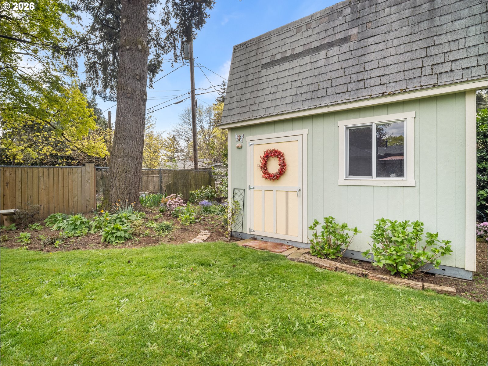 - Step into this sunny, light filled home that is move in ready. This two bedroom, one bathroom house features hardwood floors, a spacious living room, designated dining area, flex room to the out side and a large covered patio. The house boasts many updates, including a new roof in 2025, a fully remodeled kitchen in 2020 featuring quartz countertops and an open concept, an on demand hot water heater, remote controlled gas fireplace, custom blinds in kitchen and a freshly updated bathroom. The main bedroom has a large walk in closet with an oversized washer and dryer while the second has a large closet with built in storage. Enjoy the fully fenced, oversized lot with a lovely, established garden. A small two story shop out back awaits new owners to make it their own unique space. All of this is situated on a quiet, treelined street with off street parking. [Home Energy Score = 8. HES Report at https://rpt.greenbuildingregistry.com/hes/OR10181516]
