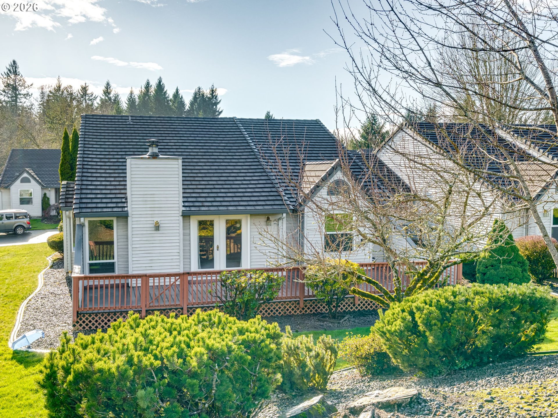 Desirable Single Level in Whipple Creek! Easy Living with low HOA fees! Tons of Natural Light. Hardwood Floor Entry and Kitchen. Upgraded Open Kitchen with Granite Countertops, Eating Island, All of the Appliances Stay! Lots of Cabinets, some with pull-outs. Plus additional Butlers Pantry with counter space. Vaulted Living Room with Wood-burning Fireplace and French Doors to the Backyard Deck. Spacious Primary Suite with 2 Sinks with Solid Surface Counters and 2 Closets! Big Spare Bedroom with Murphy Bed already installed. Laundry Room with lots of extra storage. Big Private Backyard Deck with Trex. Attached 2-Car Garage. HOA Maintains Roof, Siding, Landscaping, and more! Community Tennis Courts! Short Drive to Grocery Stores, Hospitals, Restaurants, and Freeways!