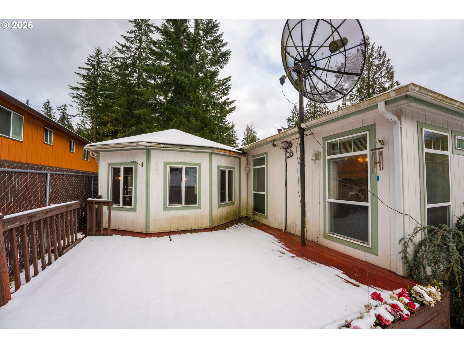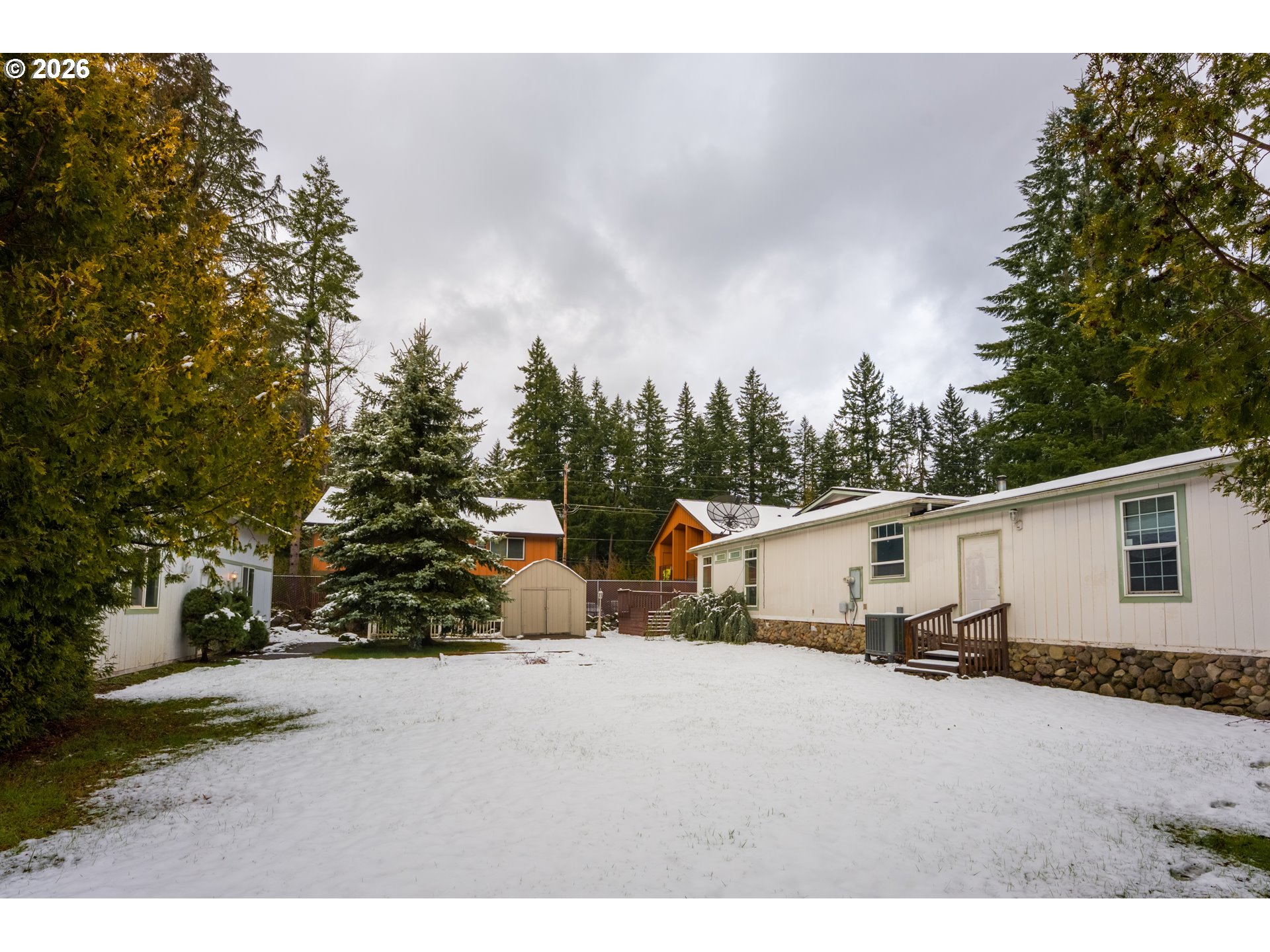 - Spacious triple-wide manufactured home situated on two tax lots (#15 & #17) with division potential. The additional lot already has power, water, and sewer available, offering outstanding flexibility for future development, investment, or multi-generational living.This well-maintained home features a thoughtful, open layout with both formal and casual living spaces. Enjoy a formal dining room with built-in hutch, formal living room, and a comfortable family room complete with pellet stove and sliding door access to the backyard deck. The expansive primary suite includes two walk-in closets, a generous ensuite bath, and a private sitting room. A utility room with sink adds convenience.Outdoor amenities are exceptional: a full-length rear deck, sprinkler system, tool shed, and a 40' x 26.5' RV garage with concrete floor. An attached gazebo with hot tub creates the perfect space for relaxing or entertaining.Major updates include a new roof (2022) and new heat pump and air handler (2023). A rare opportunity with space, versatility, and future potential in Welches.
