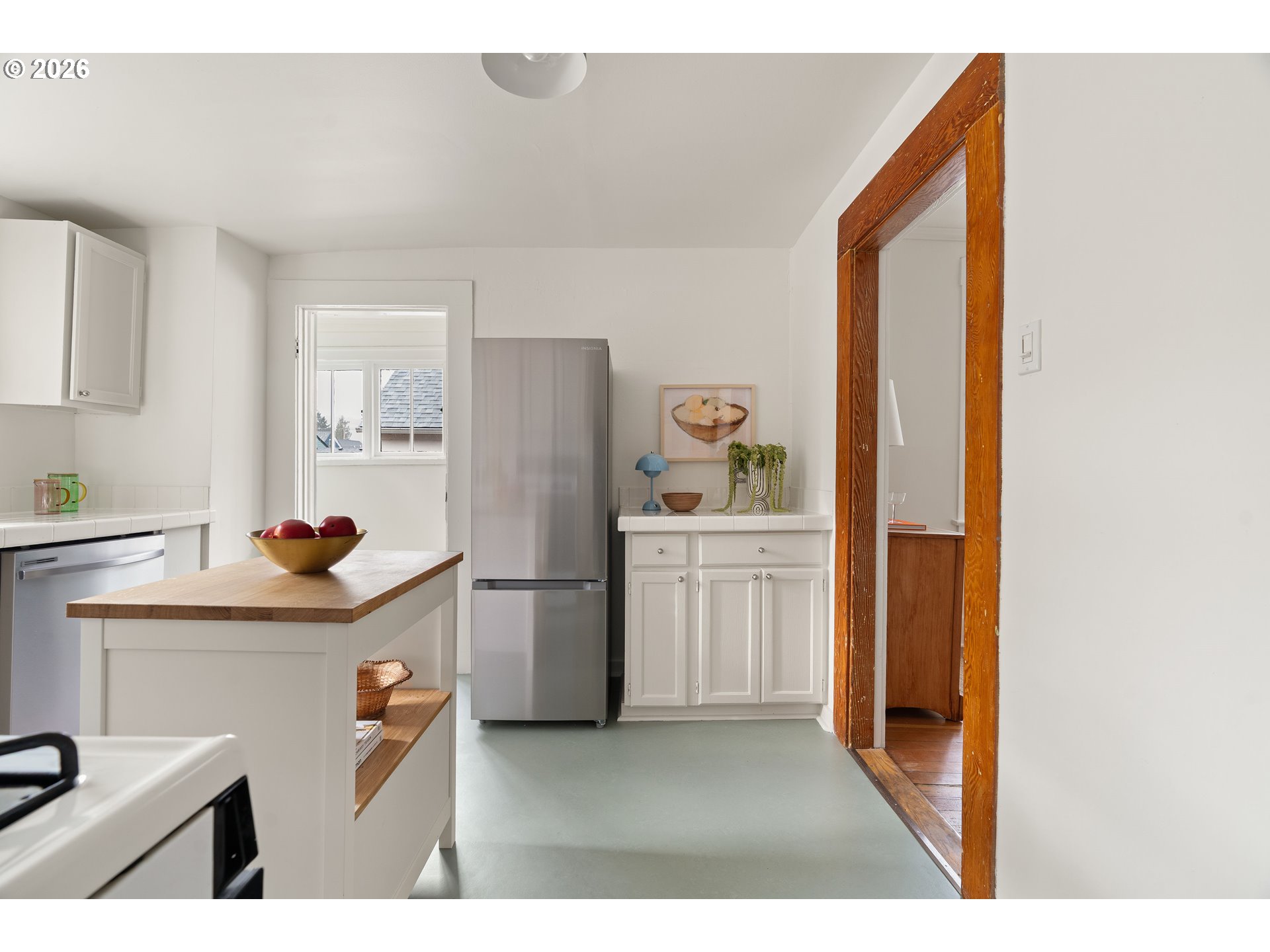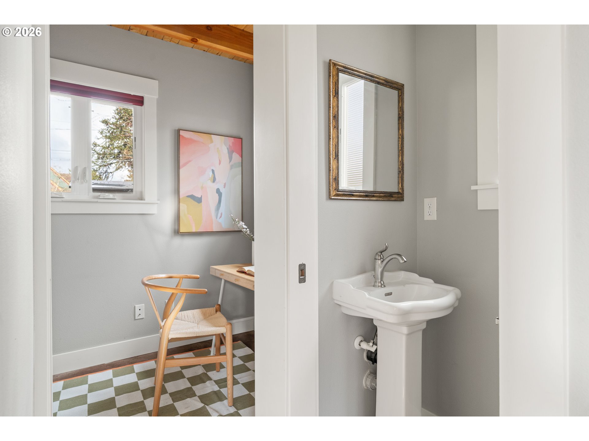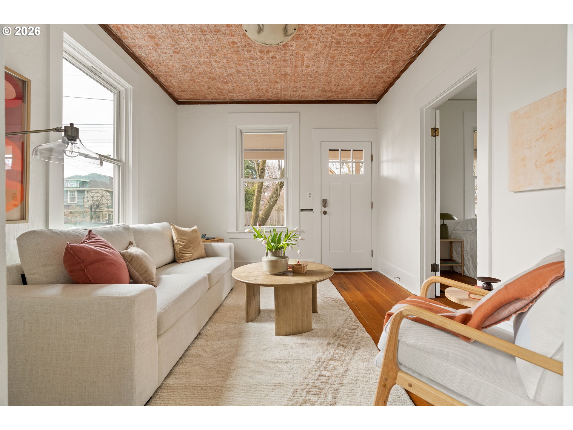 - Welcome to this classic 2 bedroom, 1 bath farmhouse with a detached 2-story permitted 800 sqft ADU with 1 bed and 1.5 baths. The front house oozes with charm featuring original fir floors, 9+ foot ceilings, a covered front porch, a generous dining space, and vintage tile countertops that nod to the home’s roots. The mudroom is an everyday bonus space for coats, bikes, and muddy paws. The sun-drenched kitchen features a garden window that fills the space with natural light and frames views of the yard. The oversized bathroom adds breathing room and everyday comfort, a rare find in a classic farmhouse layout. Upstairs, you will find a flexible area that works as a media room, office, guest space, or creative studio. Recent updates include fresh interior paint and new Marmoleum flooring that keep the main house bright and comfortable while respecting its original character. Major system updates bring peace of mind - furnace replaced in 2018 and repiping completed in 2013. * Out back, the fully permitted two-story 800 sqft ADU brings the modern energy with radiant heated floors, a heat pump for year-round comfort, cork flooring, vaulted ceilings, large windows, and french doors to the patio for easy indoor-outdoor living. The ADU includes 1.5 baths, a dedicated office space, and in-unit washer and dryer, making it a true second home rather than a simple guest space. The upstairs bedroom sits high above with views of the St. Johns Bridge and Forest Park, adding a scenic backdrop to everyday life. This second home offers flexibility for rental income, hosting guests with privacy, or creating true work-from-home separation, all while adding long-term value with a legal second dwelling on the lot. Set in the heart of Cathedral Park, this home puts daily life on foot. Coffee, groceries, food carts, local shops, and downtown St. Johns are all within easy walking distance. Ideal for besties, bonus parents, or anyone you love… in moderation. Walk Score 96. Bike Score 90.