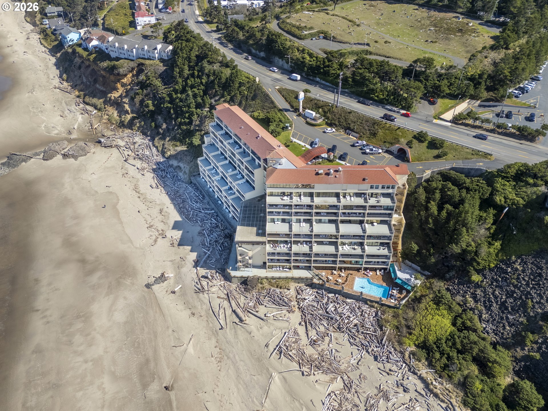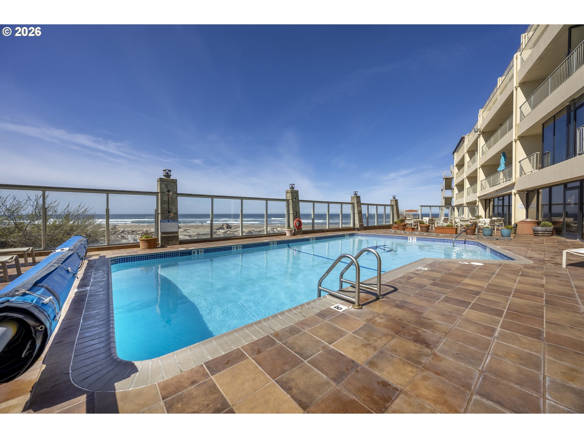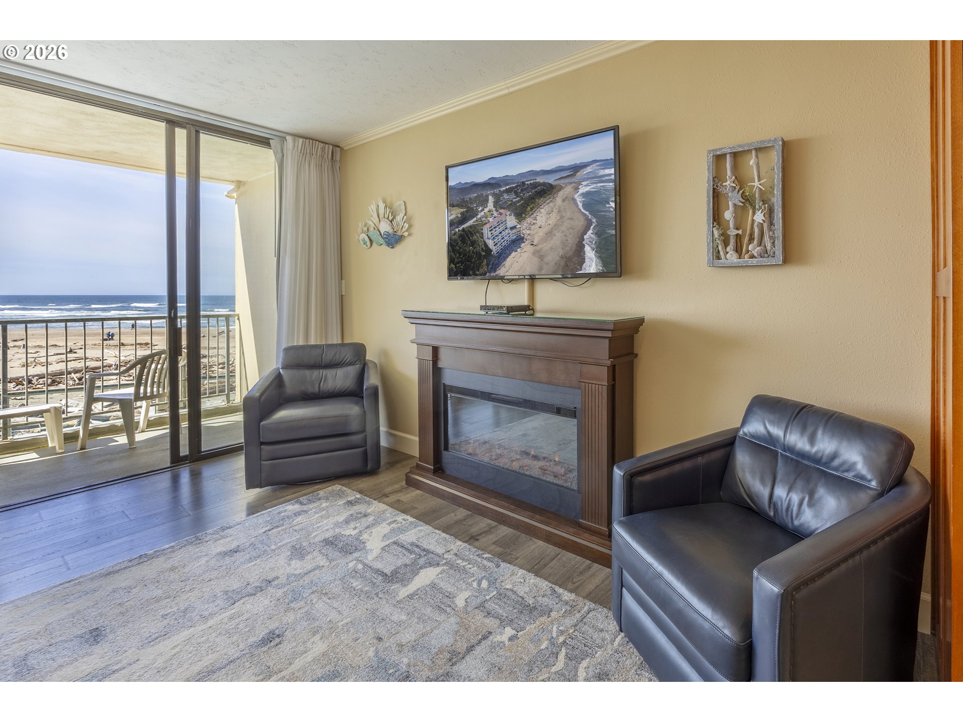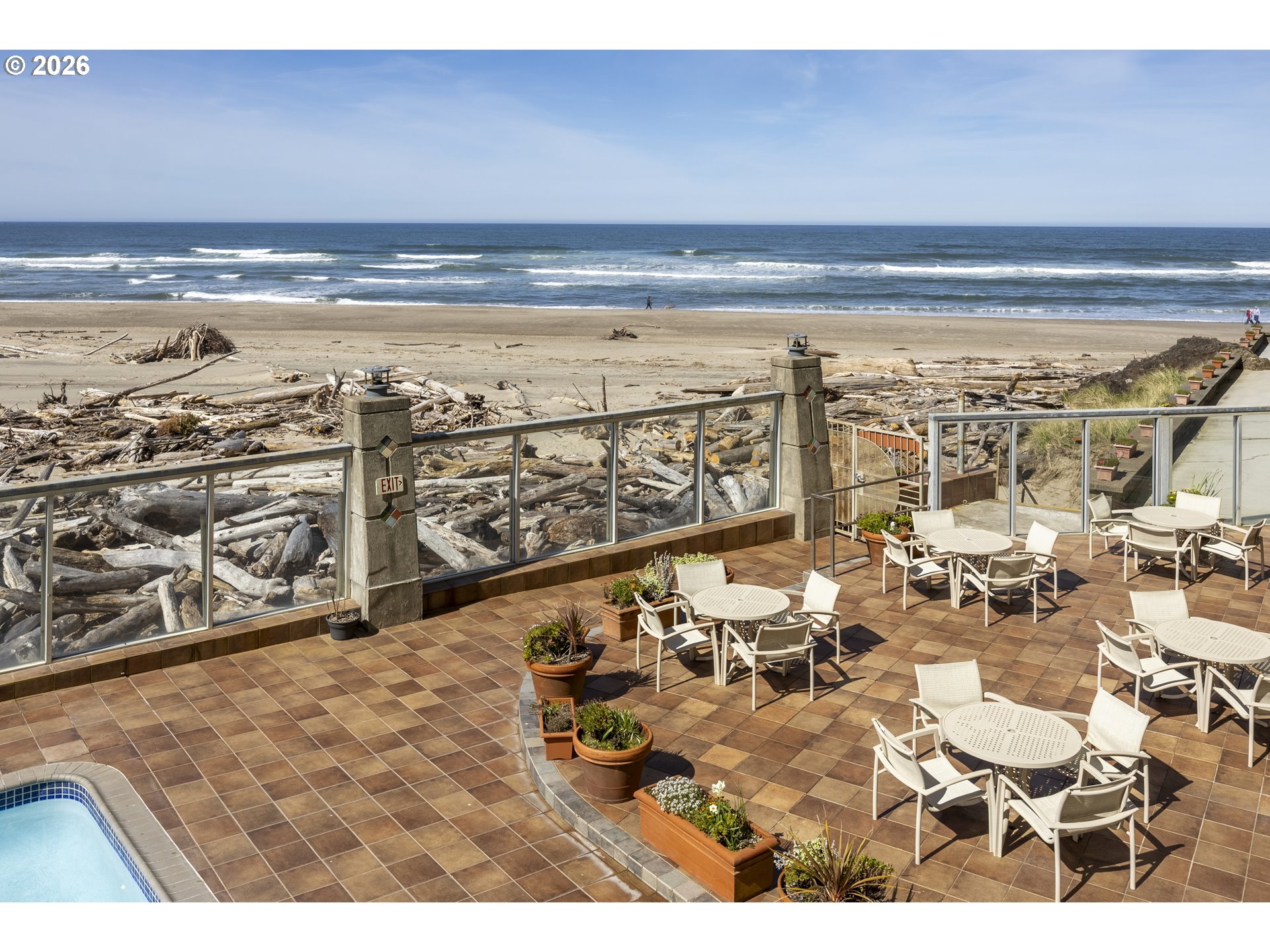- Oceanfront resort living at its finest. Wake up in this beautifully updated oceanfront 2nd-floor studio at Inn at Spanish Head, where sweeping Pacific views and a sun-filled southfacing balcony overlooking the pool create a truly exceptional coastal setting—the perfect backdrop for evening wine and unforgettable sunsets. Love storm watching? Settle in by the elegant electric fireplace with a warm drink and take in the dramatic waves from the comfort of your own private, year-round retreat. Thoughtfully designed and turnkey, this fully furnished condo showcases recent updates, a full kitchen, a king-sized bed, and a dining table with barstools ideally positioned to enjoy meals with a view. An owner's private storage closet and a bright, comfortable living space complete this refined coastal escape. Located within one of Lincoln City's premier oceanfront resorts, owners and guests enjoy an array of amenities including a heated pool, hot tub spa, fitness center, game room, laundry facilities, valet parking, room service, full-time on-site rental management, and the renowned Fathoms Restaurant & Lounge. Just moments from miles of sandy beach, this location embodies the very best of Oregon Coast living. Currently operating as a nightly vacation rental and owner's vacation getaway. Schedule your private showing and begin experiencing oceanfront living at its finest!