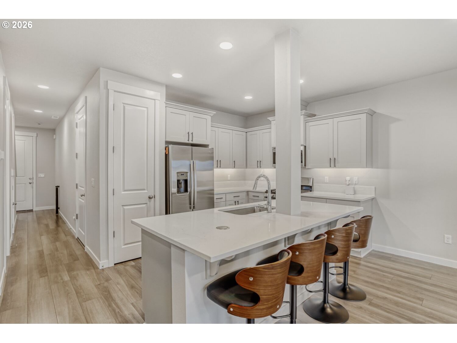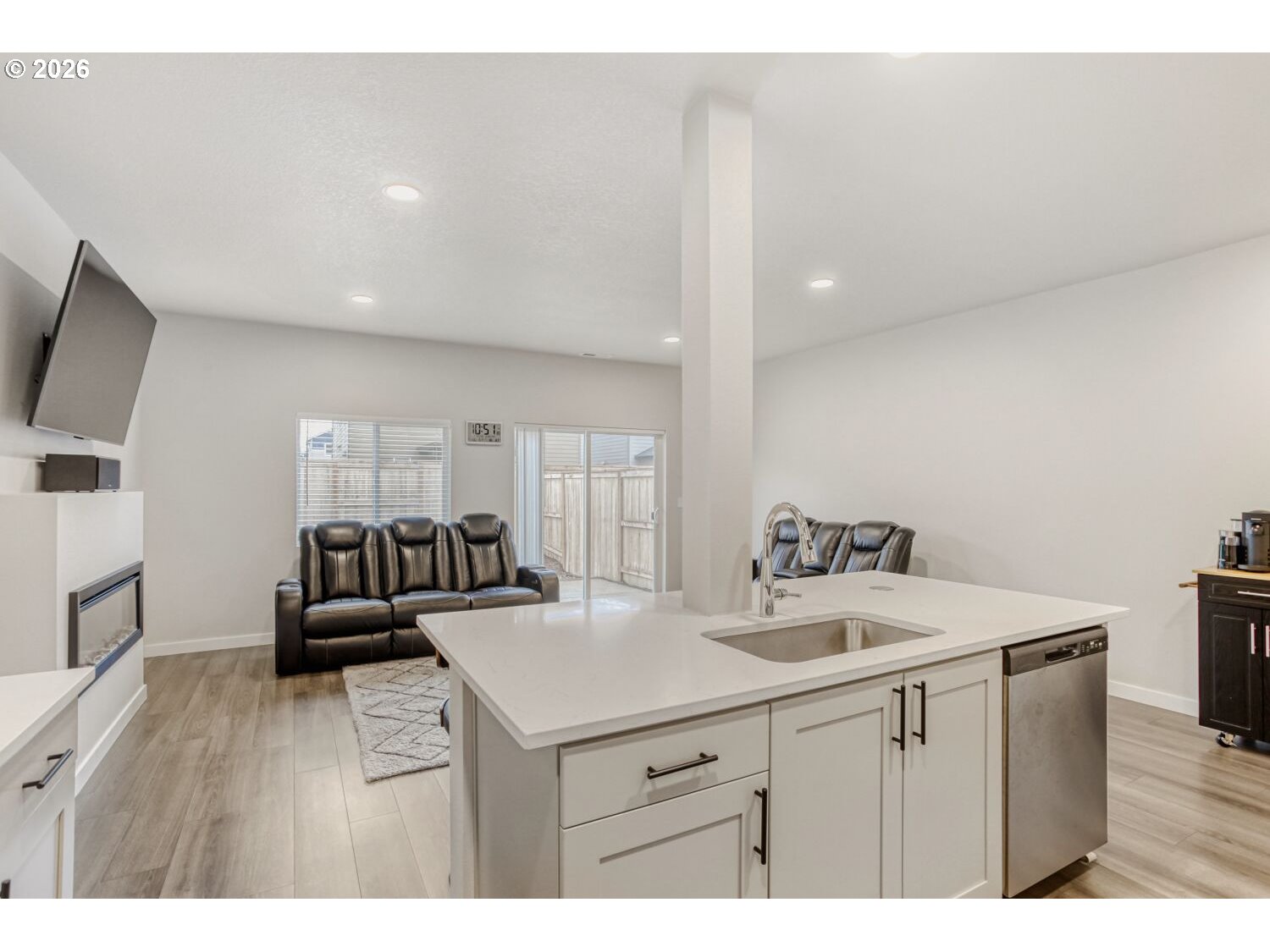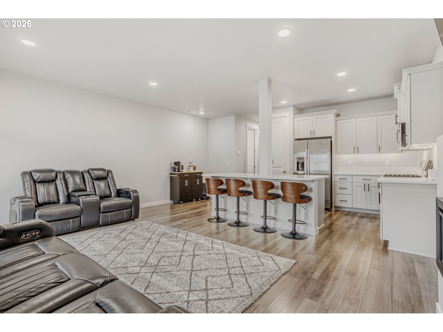 - Our loss your gain, fantastic new construction home purchased new 06/2025. Seller's work is relocating them. You will enjoy the 14k in upgrades: Starting at the large and impressive executive front door, high ceilings, stainless steel refrigerator and gas oven, washer and dryer, smart lights: front porch, great room and primary bedroom, lights under kitchen cabinets, smart thermostat and an extended concrete patio for an extra large outdoor entertaining patio. Plus, this home has a fenced backyard for a little bit of your own space. Garage has add 50-amp 240V Dedicated Circuit for future car charger. Home is very clean, light and bright. The great room has an electric fireplace and sliding glass door and a nice size kitchen with pantry. Located in fantastic new construction neighborhood with several wonderful parks to chose from. Sofas, bar stools, tv are negotiable ask for list of negotiable personal items.