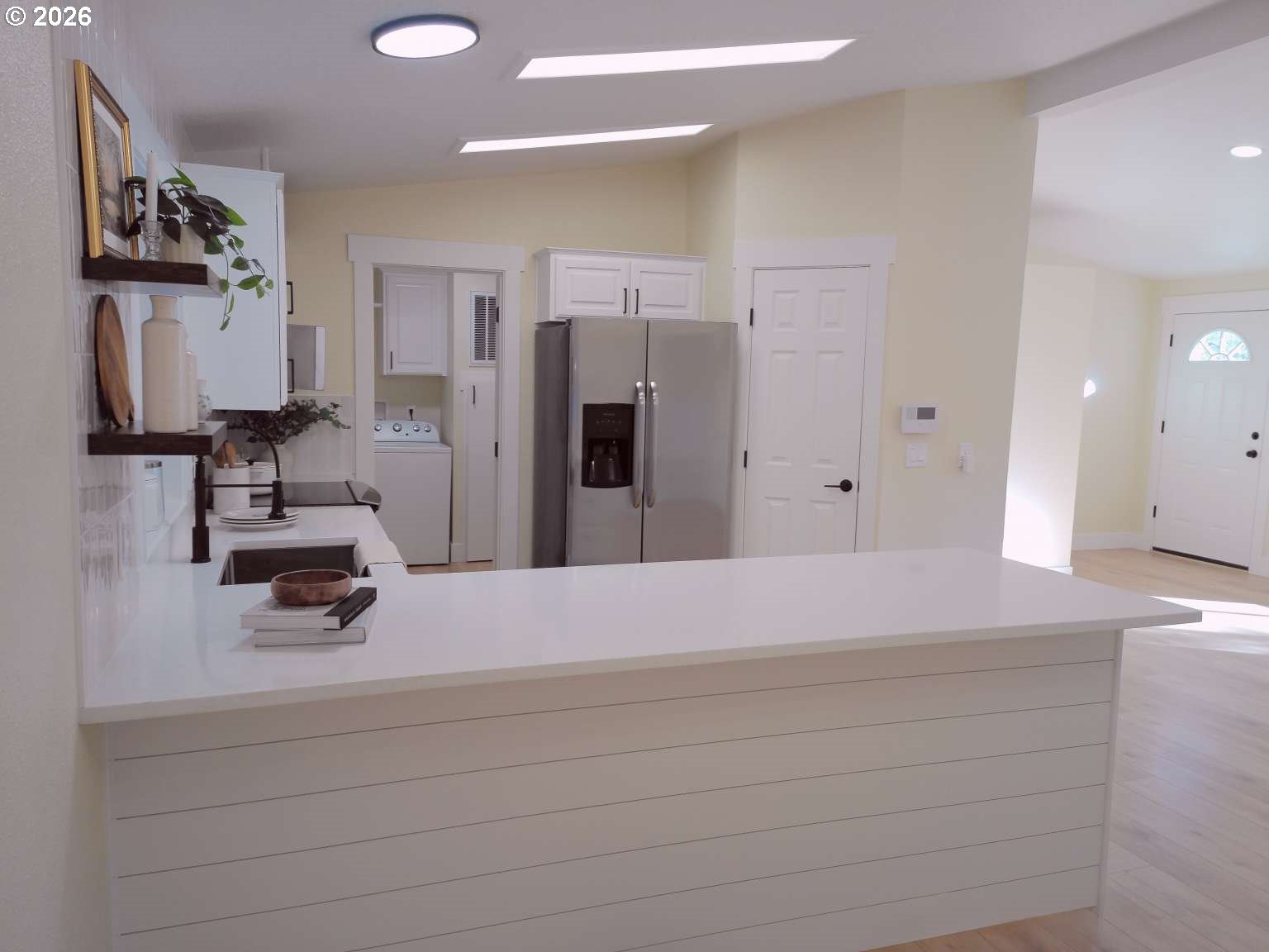 - Stunning three bedroom two bathroom home that is move in ready and very affordable. Completely redone from inside and out offering you that peace of mind. On the outside you'll find a newer roof, fresh paint, new fully enclosed fence, tasteful landscaping with a stamped concrete patio and more. The deep driveway, oversized carport, and storage shed provide great convenience. The interior showcases new flooring, trim, paint, and a modern kitchen with quartz countertops, full wall tile backsplash, stainless steel appliances, and tasteful finishes. Open floor plan with vaulted ceilings, large bedrooms and a walk in pantry. Primary bedroom has a built in desk and a very large walk in closet. And then you have the awesome location- Very quiet and peaceful neighborhood with Blue Lake down the street. Perfect for outdoor activities and scenic views. Don’t miss out on this amazing opportunity, schedule your showing today! Monthly space rent is $1,225. Buyer must obtain park approval.