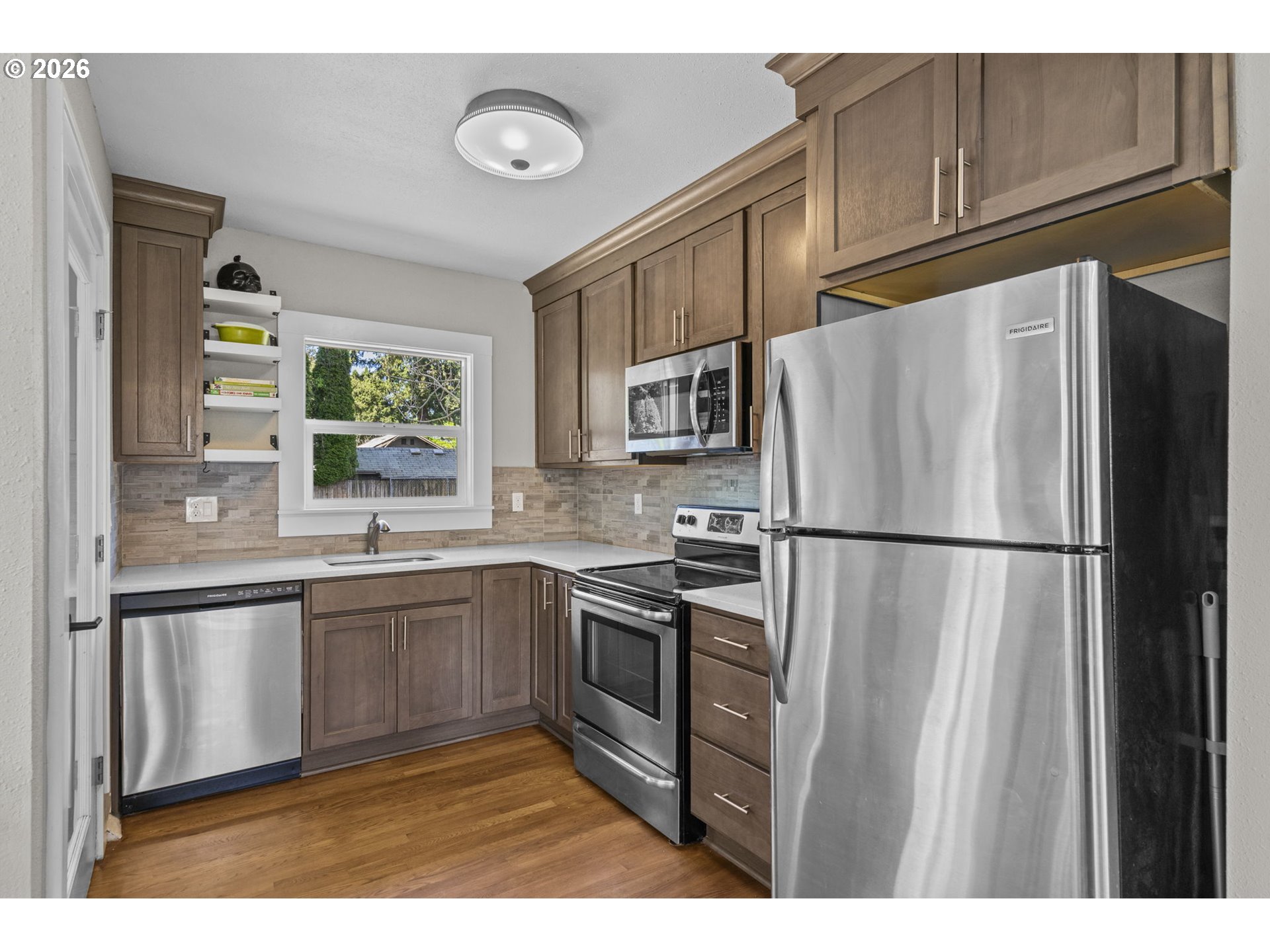 - This 2 bedroom, 1 bath classic bungalow offers a well laid out, comfortable layout with top nail oak hardwood floors and fresh interior paint throughout. The main living spaces feel open and bright. The kitchen features quartz countertops, stainless steel appliances, and updated cabinetry in a clean, functional design that connects naturally to the living area for an easy daily flow. Newer vinyl windows and thoughtful improvements throughout add to the home’s overall livability, while a full unfinished basement provides ample storage and future flexibility. Outside, the yard has been refreshed with new sod, and a large concrete pad offers flexible space for parking, projects, or outdoor use. Located in Parkrose with quick access to I-205,I-84, and a 5 minute walk to the MAX light rail. Close to Parkrose Hardware, Sandy O’s, Parkrose Coffee, O’ Dear, My-O-My, and more. [Home Energy Score = 4. HES Report at https://rpt.greenbuildingregistry.com/hes/OR10246640]
