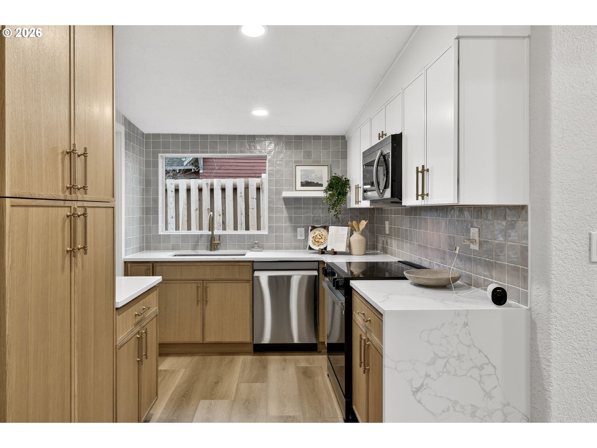 - Beautifully remodeled 3-bedroom, 1-bath home on a desirable corner lot in a peaceful, established Portland neighborhood. This move-in-ready property has been completely updated with high-end modern finishes throughout, blending fresh style with everyday comfort. The renovation includes a brand-new kitchen featuring warm wood cabinetry, updated countertops, and modern fixtures, along with a fully remodeled bathroom with sleek tilework and contemporary design. Additional upgrades include all-new siding, new flooring, fresh interior paint, and thoughtful updates throughout the home that create a clean, cohesive feel. With its quiet setting, attractive curb appeal, and extensive remodel, this home is a standout opportunity for buyers looking for turnkey quality in a great location. Open Houses this Weekend. Listing Agent is Seller.