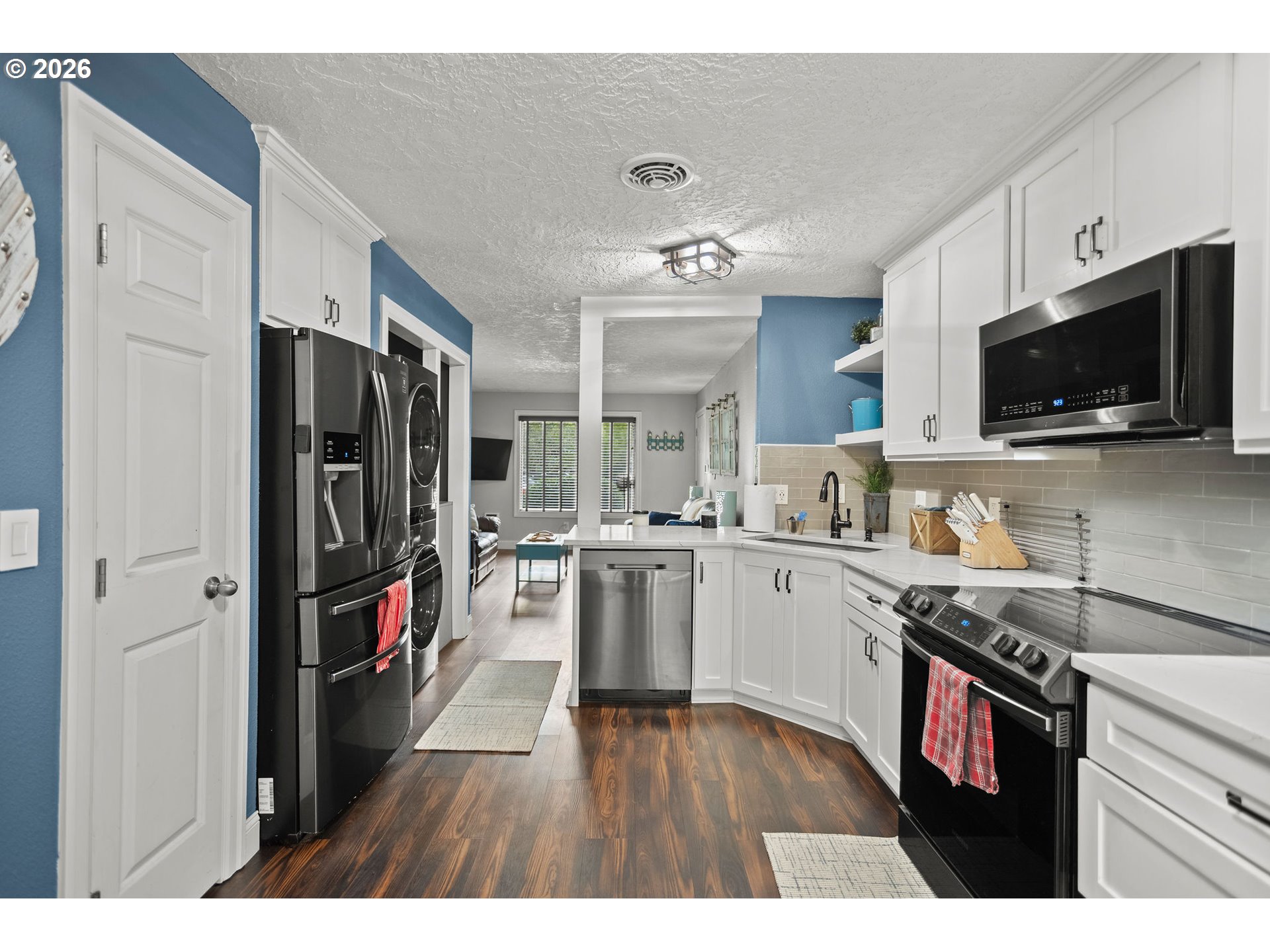 - This stylish, renovated, ground-floor condo blends modern convenience with private outdoor living in the heart of one of Portland’s most vibrant neighborhoods. Boasting an impressive 93 Walkscore, this home puts the best of St. Johns right at your doorstep; you are just steps away from a movie or a pint at McMenamins St. Johns Theater & Pub and within easy walking distance to local coffee shops, eclectic restaurants, and daily grocery needs.The interior was thoughtfully renovated within the last four years and features luxury vinyl plank flooring, updated lighting, and custom blinds throughout the 771-square-foot layout. The kitchen is a standout with its quartz countertops, custom cabinetry, and high-end appliances, while the bathroom offers a complete overhaul including a new tub/shower, vanity, and charming shiplap accents. Practicality is built-in with an in-unit washer and dryer and a dedicated storage unit in the basement. Perhaps the rarest feature for condo living is the private, fenced backyard with a patio, providing a secluded outdoor oasis. With a low $330 monthly HOA that covers water, sewer, and garbage, this 2-bedroom gem offers an incredible value in a premier North Portland location.